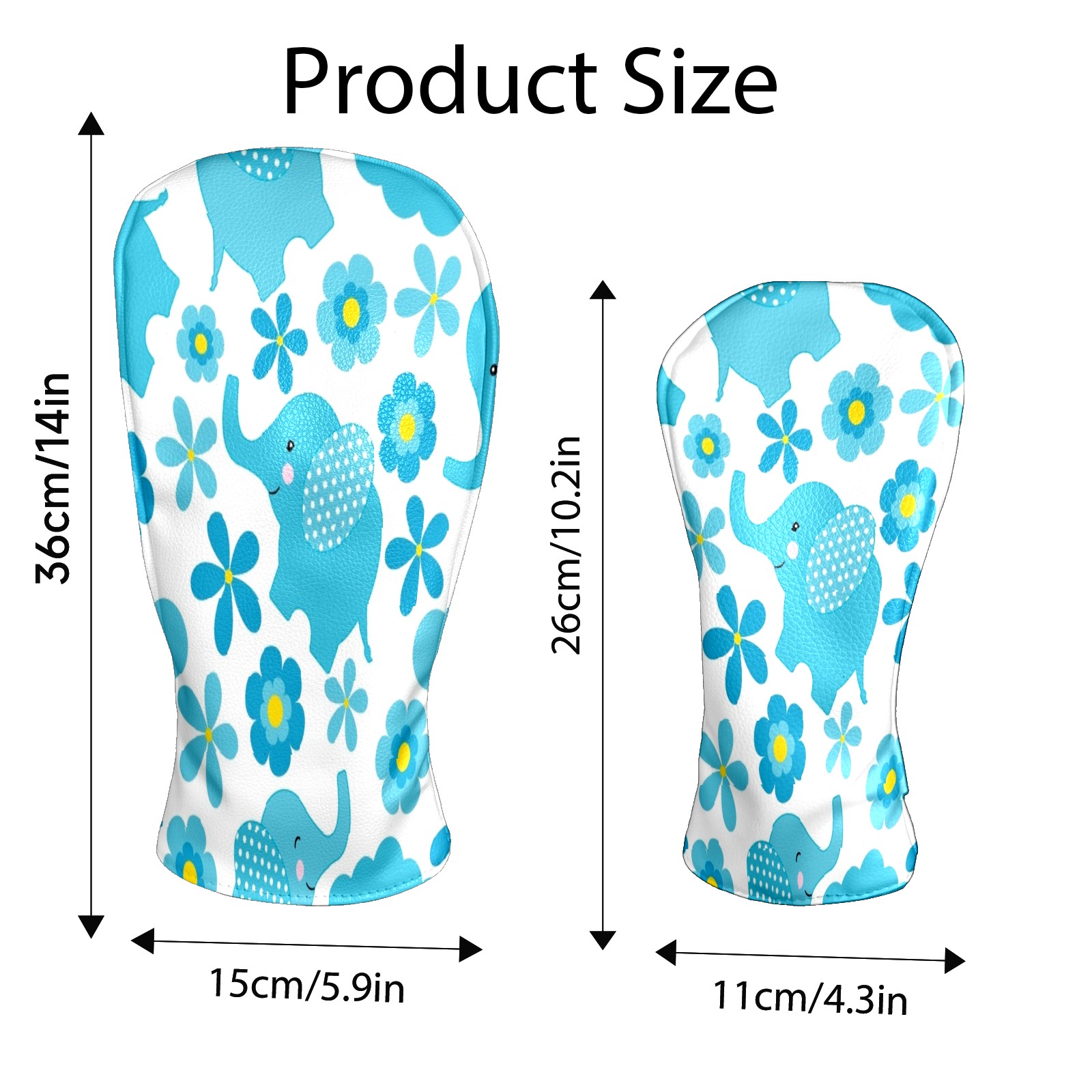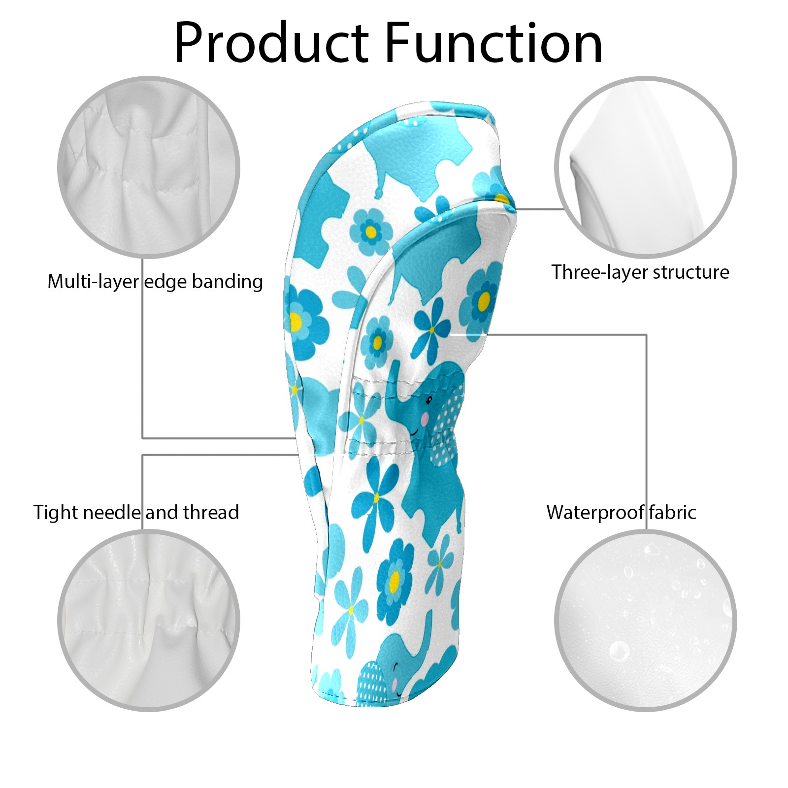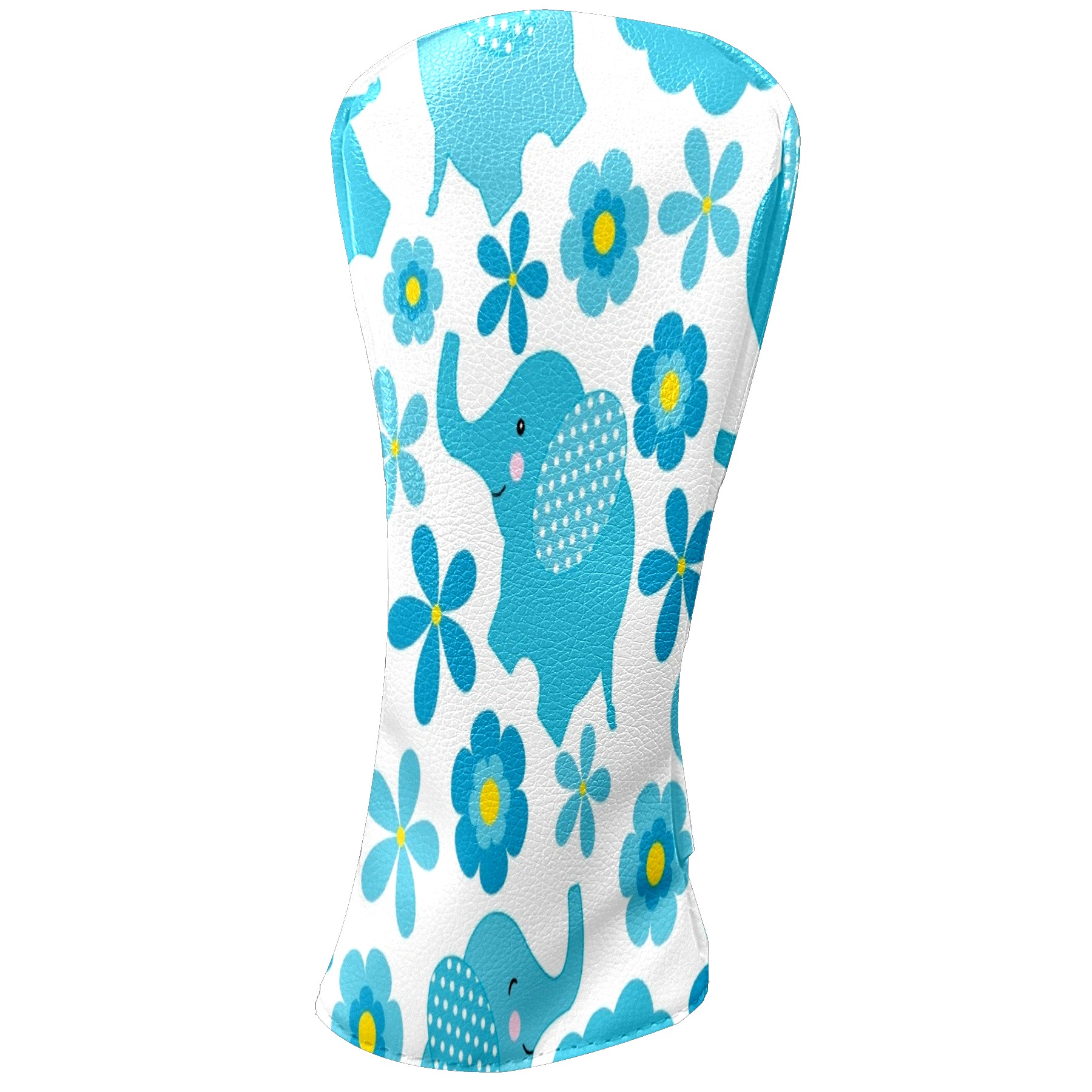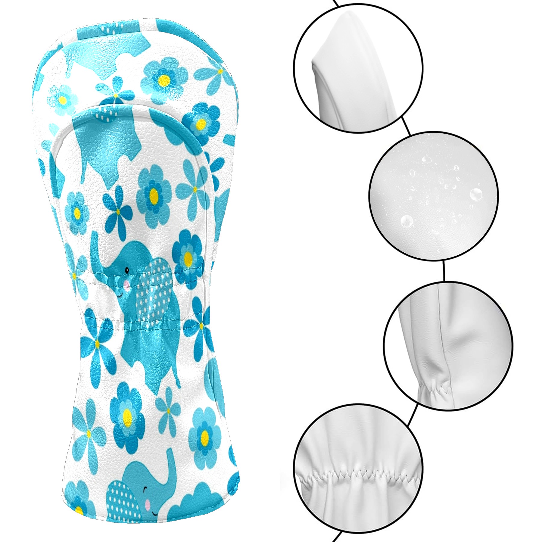Golf Head Covers Driver Club Head Cover for Drivers Fairway Woods and Hybrid Clubs, PU Leather Golf Club Head Covers for Men and Women Elephant Blue Pattern