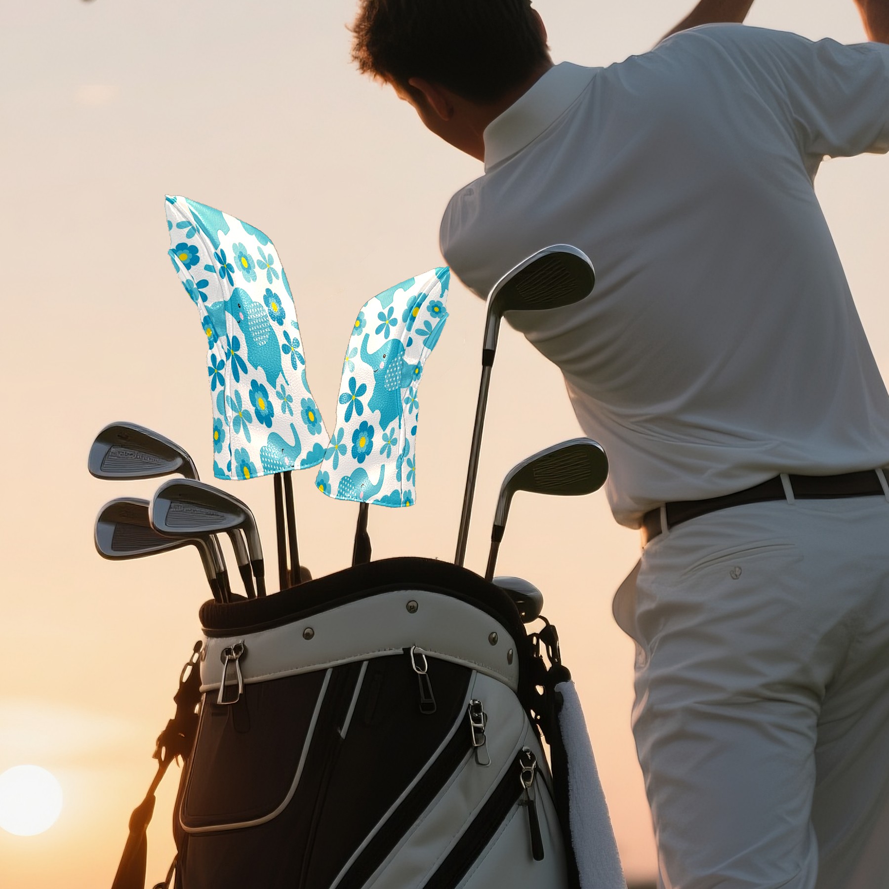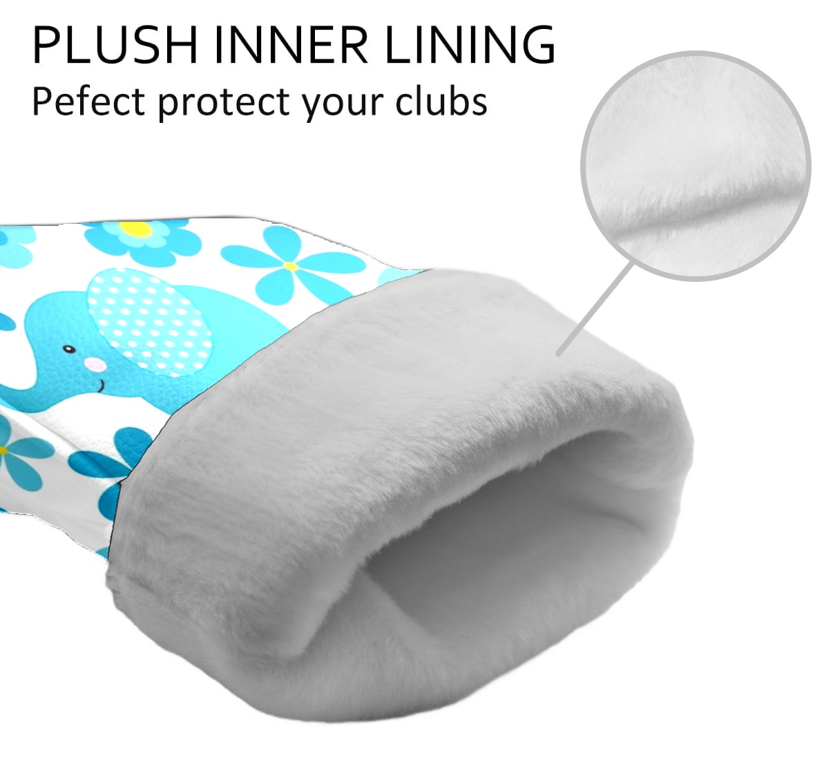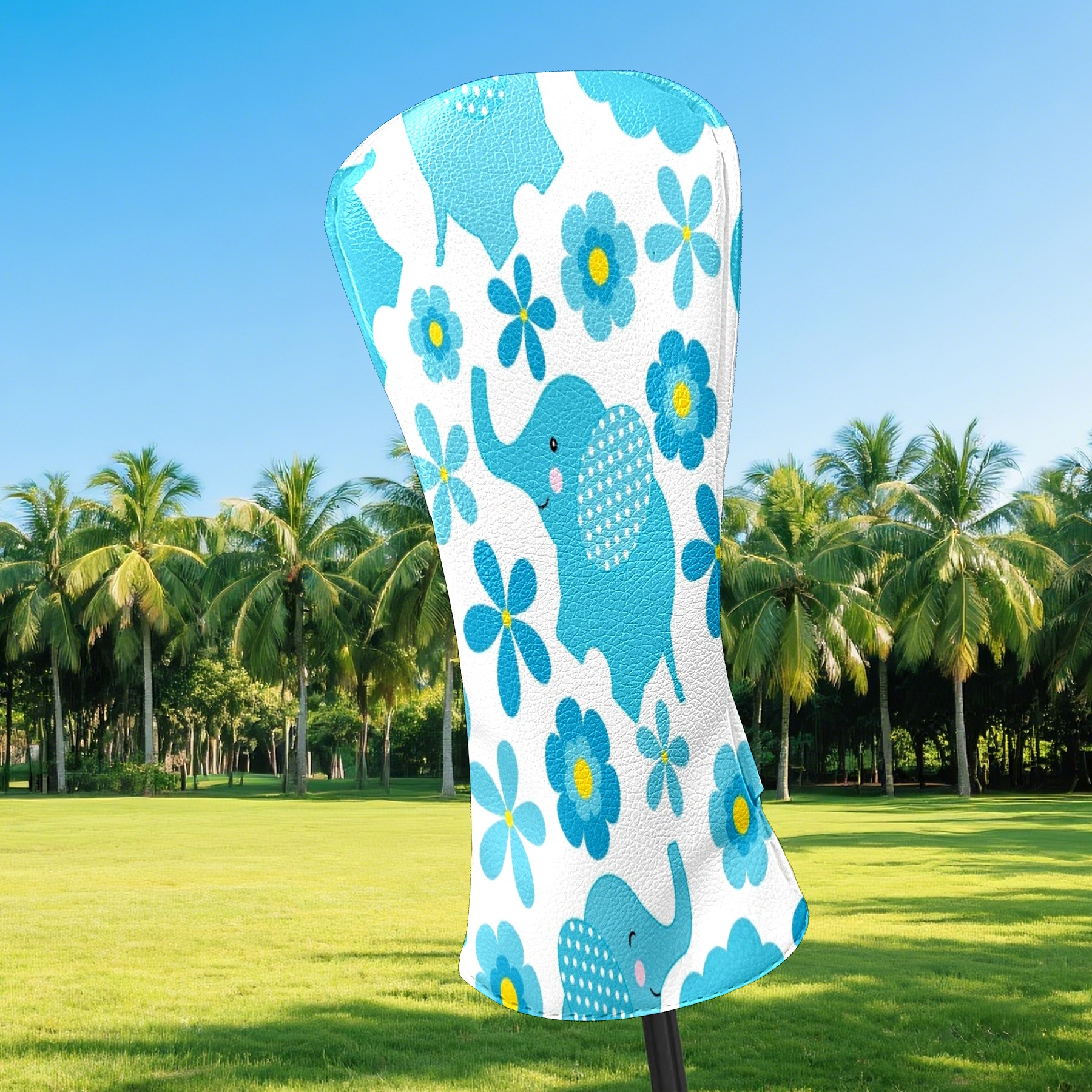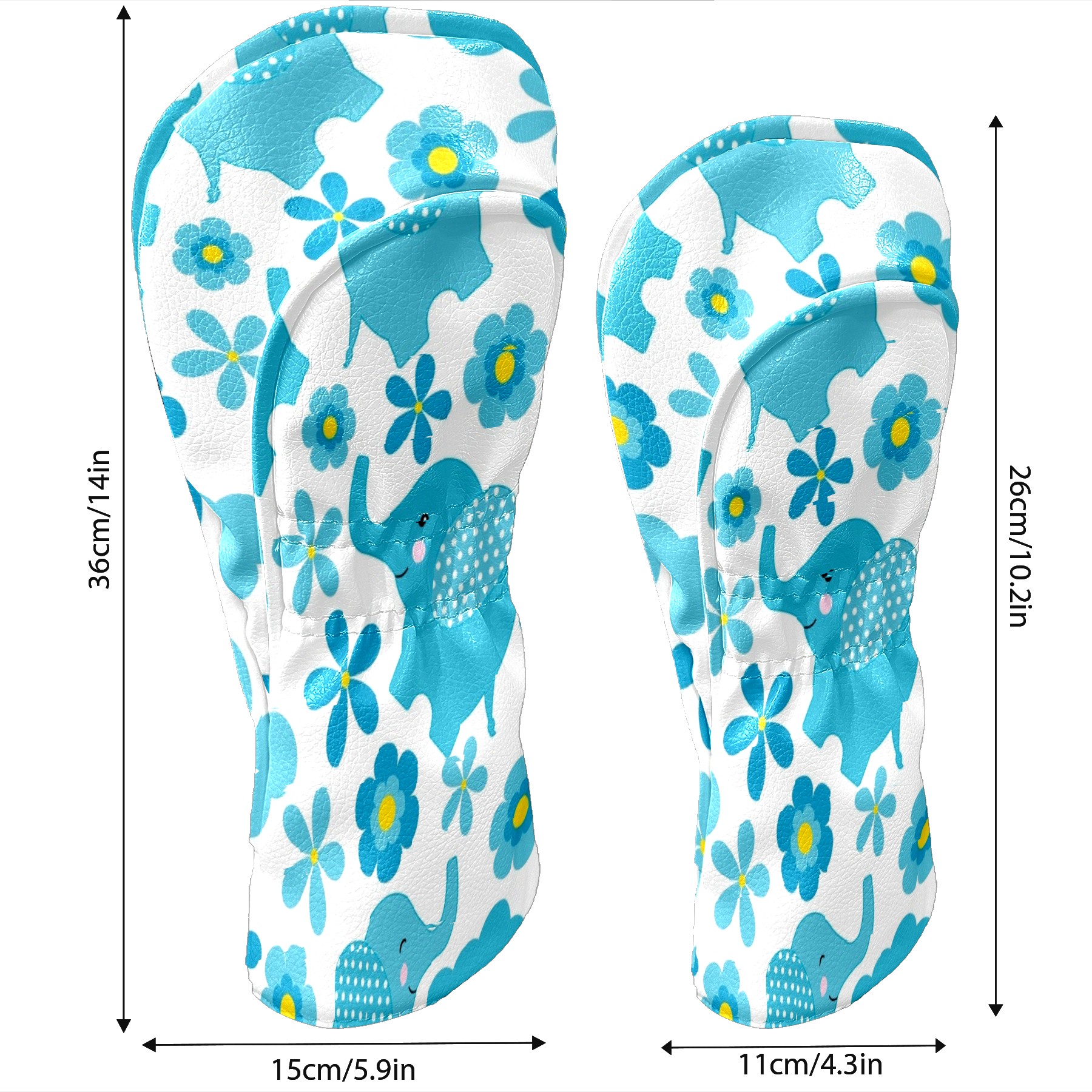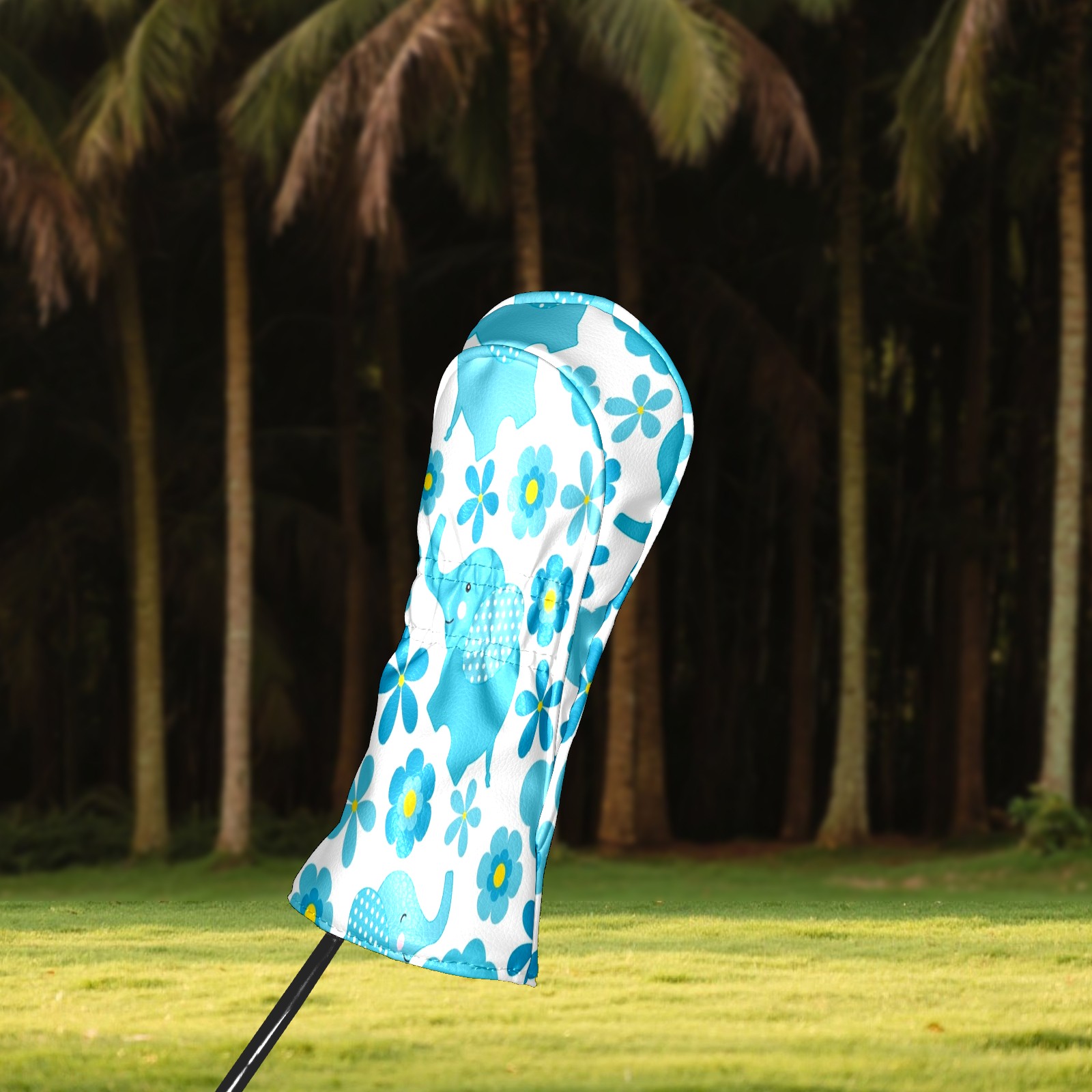 Golf Head Covers Driver Club Head Cover for Drivers Fairway Woods and Hybrid Clubs, PU Leather Golf Club Head Covers for Men and Women Elephant Blue Pattern