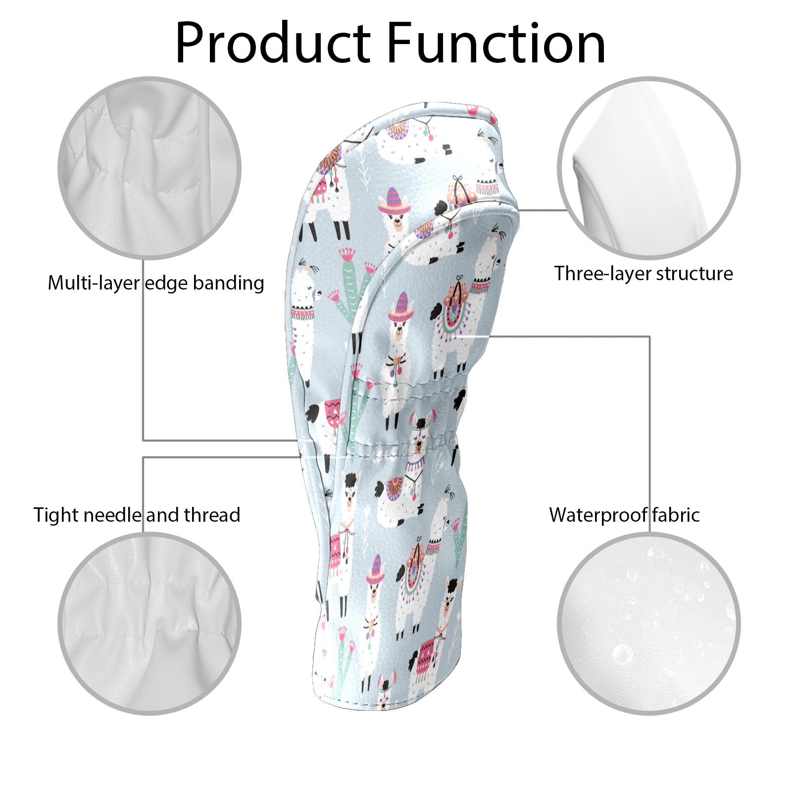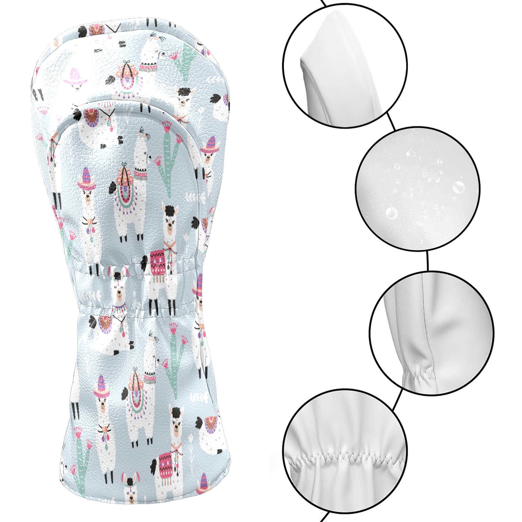 Golf Head Covers Driver Club Head Cover for Drivers Fairway Woods and Hybrid Clubs, PU Leather Golf Club Head Covers for Men and Women Cute Llama Alpaca Cactus Cacti Cactus Pattern