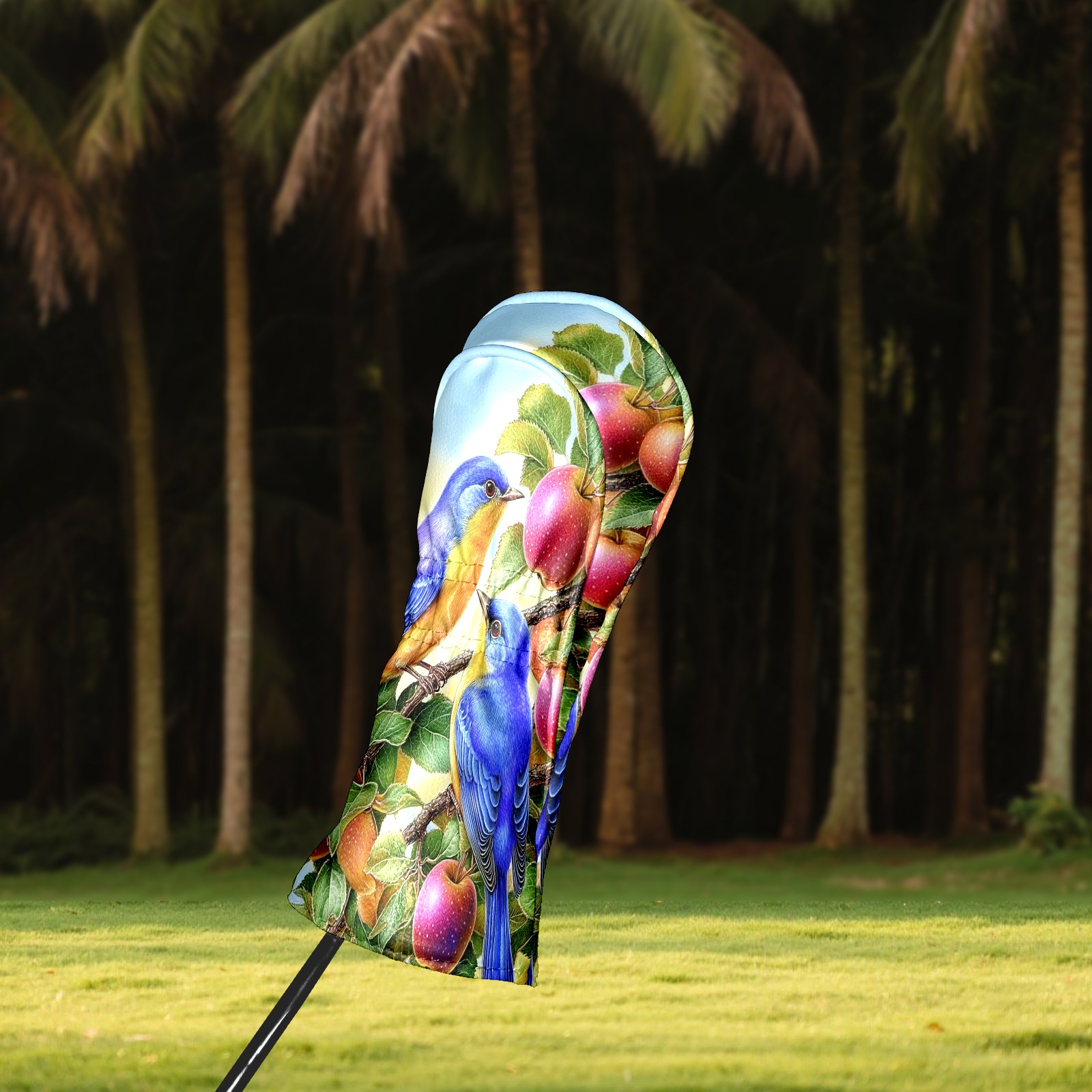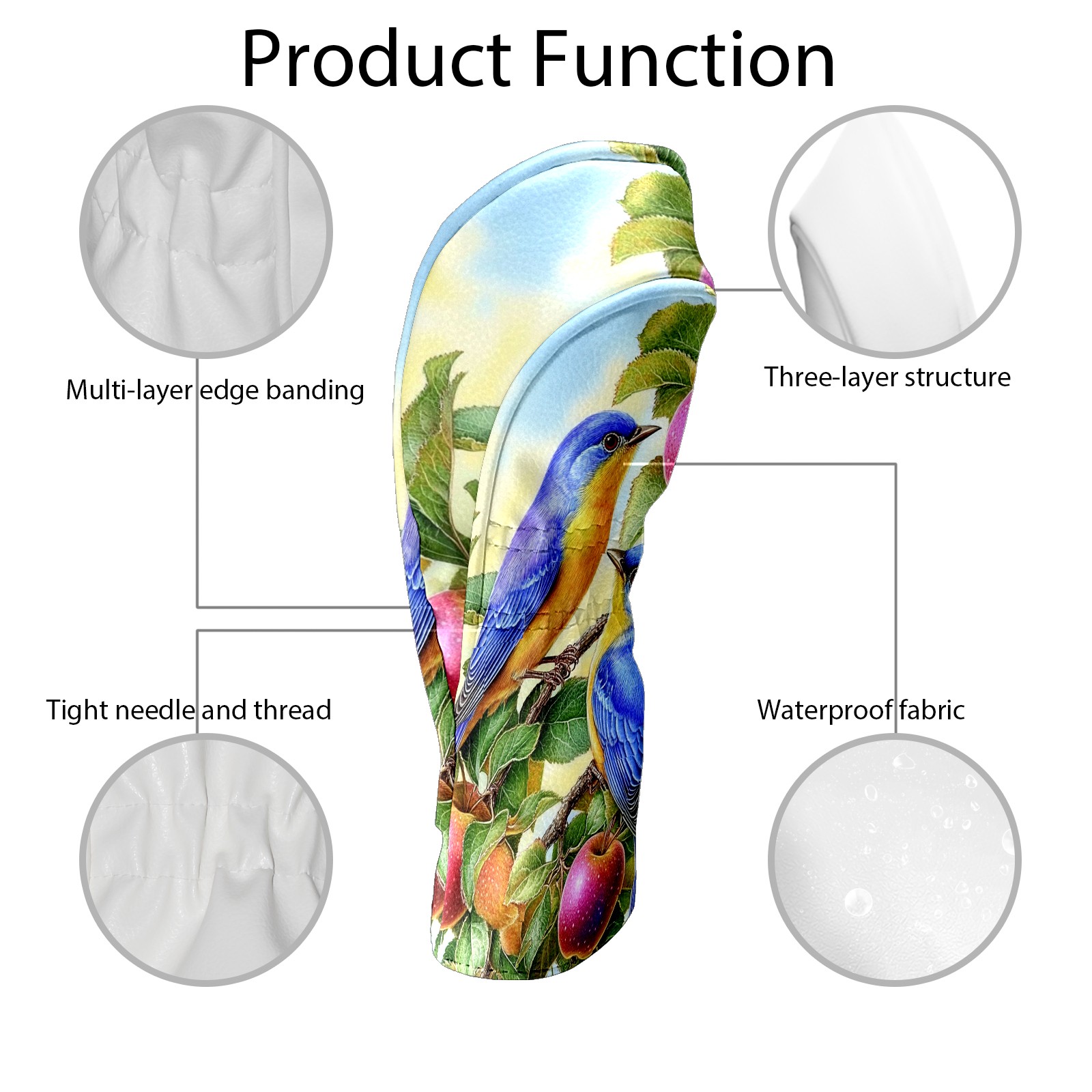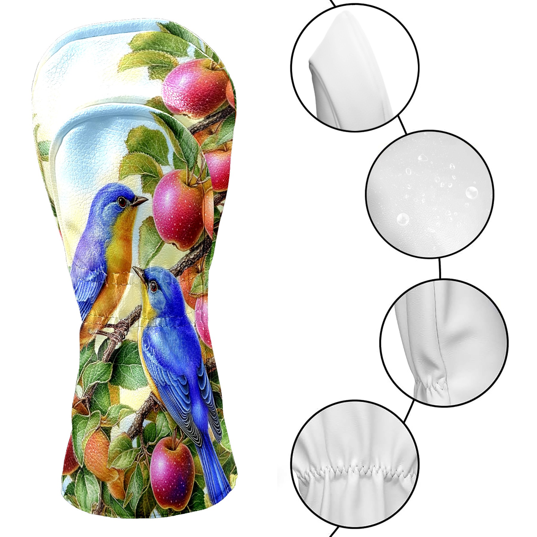 Golf Club Head Cover Premium Leather Driver Headcover, Golf Head Covers for Woods and Driver Waterproof Golf Headcovers with Anti-Scratch Lining for Men Women (Bluebirds Perched)