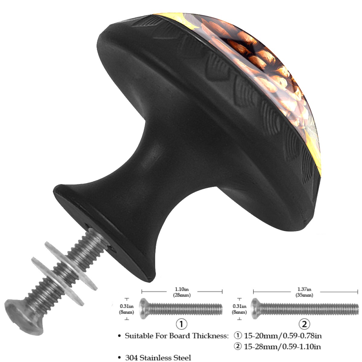 <p><b>Package includes:</b></p> <p>4 x cabinet knobs</p> <p>4 x screws 1.1'' (28 mm) </p> <p>4 x screws 1.37'' (35 mm)</p> <p><b>How to Install?</b></p> <p>1. Drill a hole in the drawer panel.</p> <p>2. Pass the screw through from the backside of the drawer.</p> <p>3. Tighten the knob onto the screw.</p> <p>ABS + Glass: The combination of sturdy ABS with high-transparency glass offers a long-lasting shine that enhances the quality of your home. Suitable for cabinets, drawers, dressers, wardrobes, office furniture, etc.</p> <p>Easy Maintenance: The smooth glass surface wipes clean easily, making it ideal for long-term use in kitchens and bathrooms.</p>