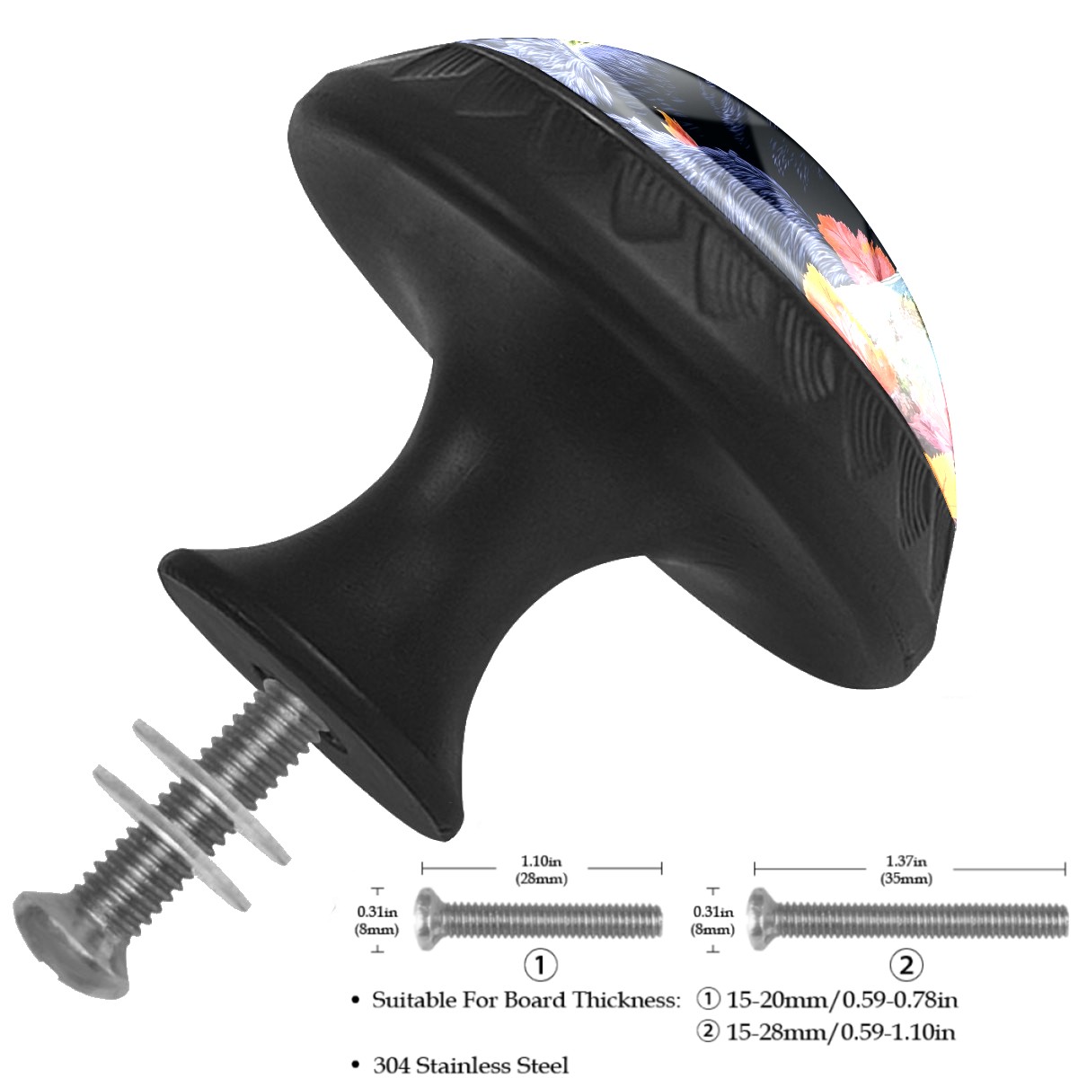 <p><b>Package includes:</b></p> <p>4 x cabinet knobs</p> <p>4 x screws 1.1'' (28 mm) </p> <p>4 x screws 1.37'' (35 mm)</p> <p><b>How to Install?</b></p> <p>1. Drill a hole in the drawer panel.</p> <p>2. Pass the screw through from the backside of the drawer.</p> <p>3. Tighten the knob onto the screw.</p> <p>ABS + Glass: The combination of sturdy ABS with high-transparency glass offers a long-lasting shine that enhances the quality of your home. Suitable for cabinets, drawers, dressers, wardrobes, office furniture, etc.</p> <p>Easy Maintenance: The smooth glass surface wipes clean easily, making it ideal for long-term use in kitchens and bathrooms.</p>