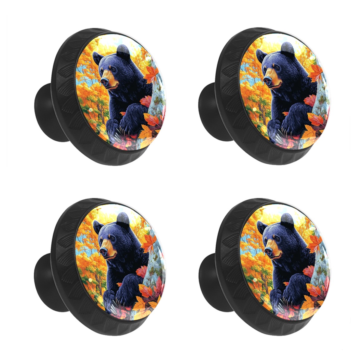 4 Pcs Drawer Knobs Bear Fall Trees Round Crystal Glass Knobs Pulls for Dressers Kitchen Cabinets Drawers Wardrobe Cupboard Furniture Hardware Handles