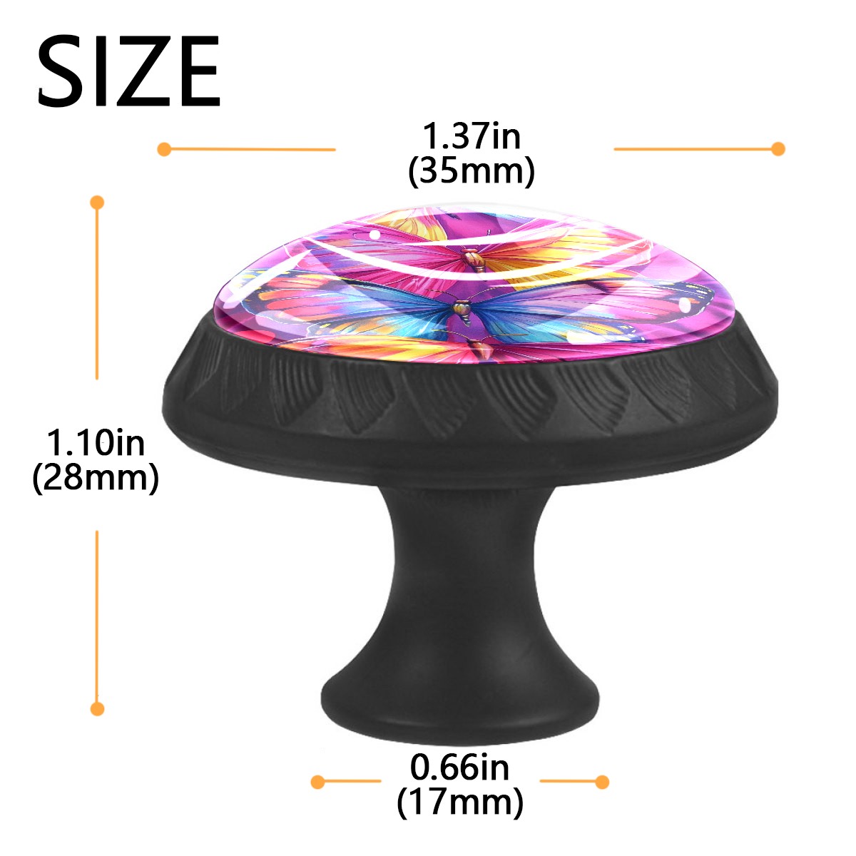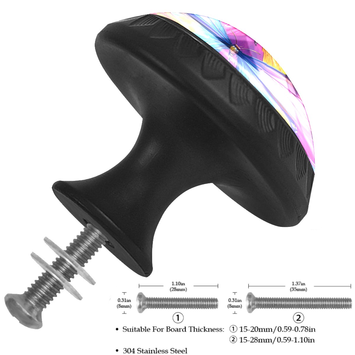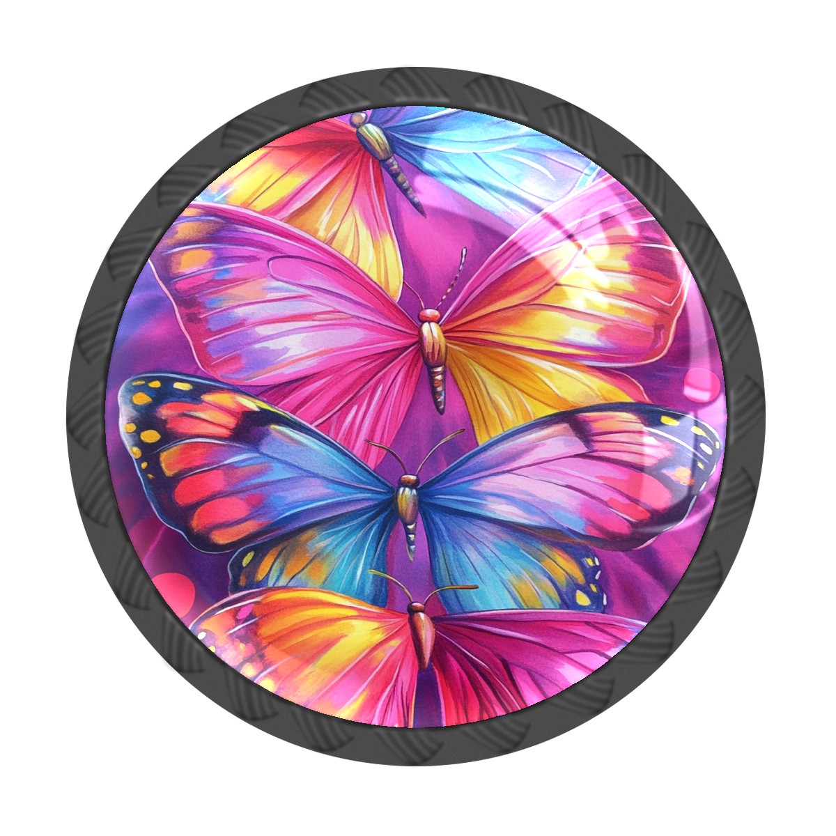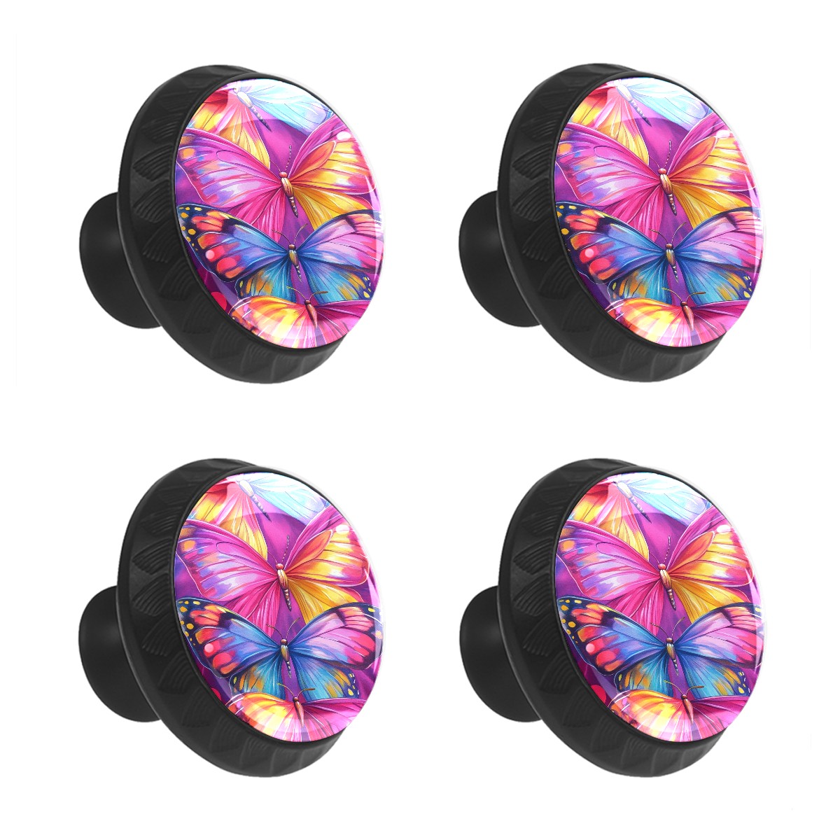 4 Pack Cabinet Knobs Watercolor Colorful Butterflies Drawer Pulls Crystal Glass Round Knobs Handles for Dressers Drawer Bathroom Kitchen Cupboards Wardrobes Hardware Furniture Knobs