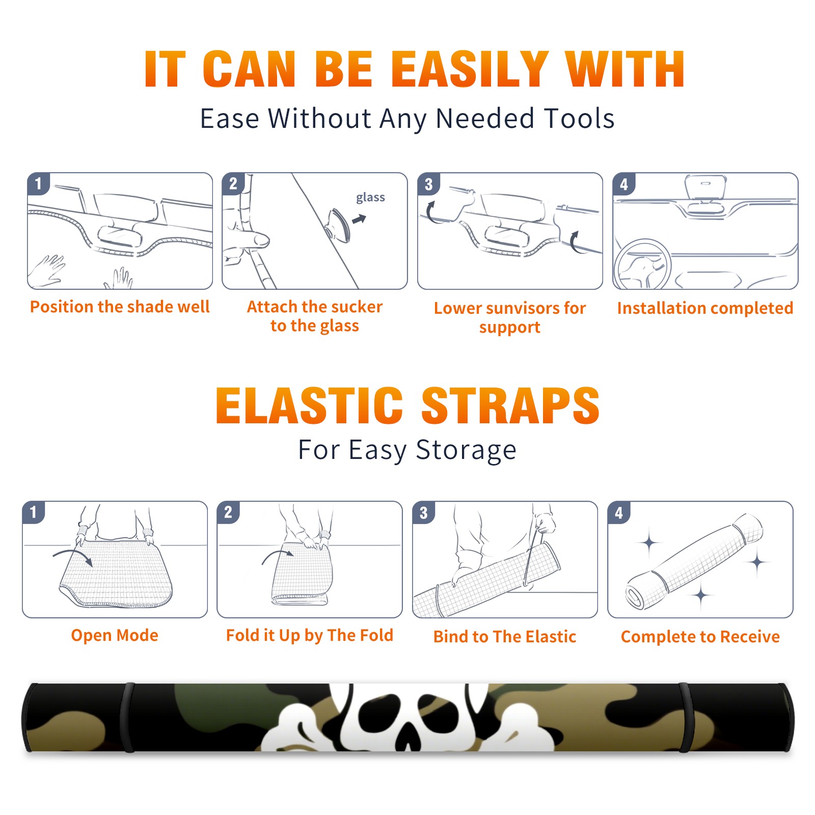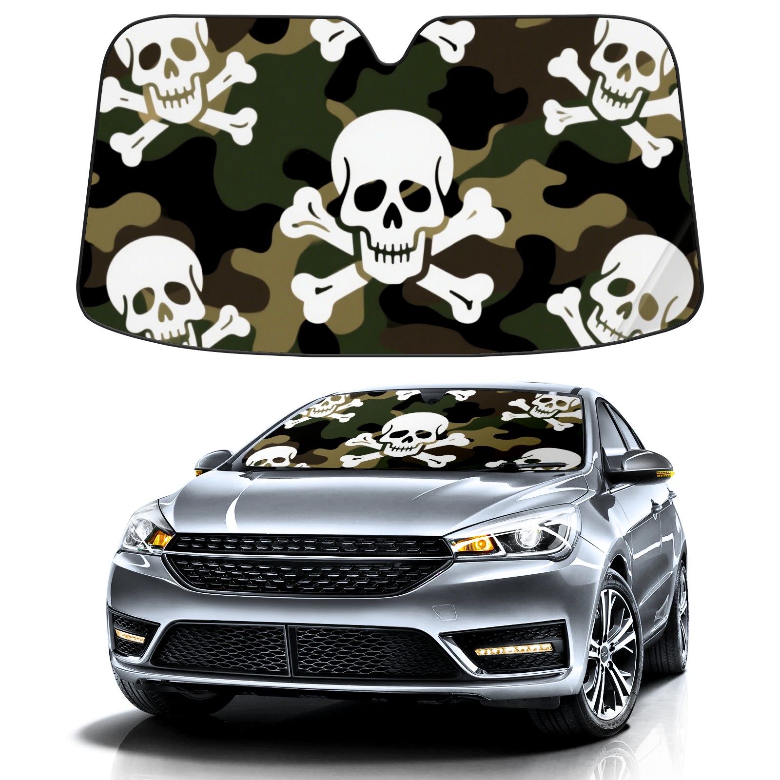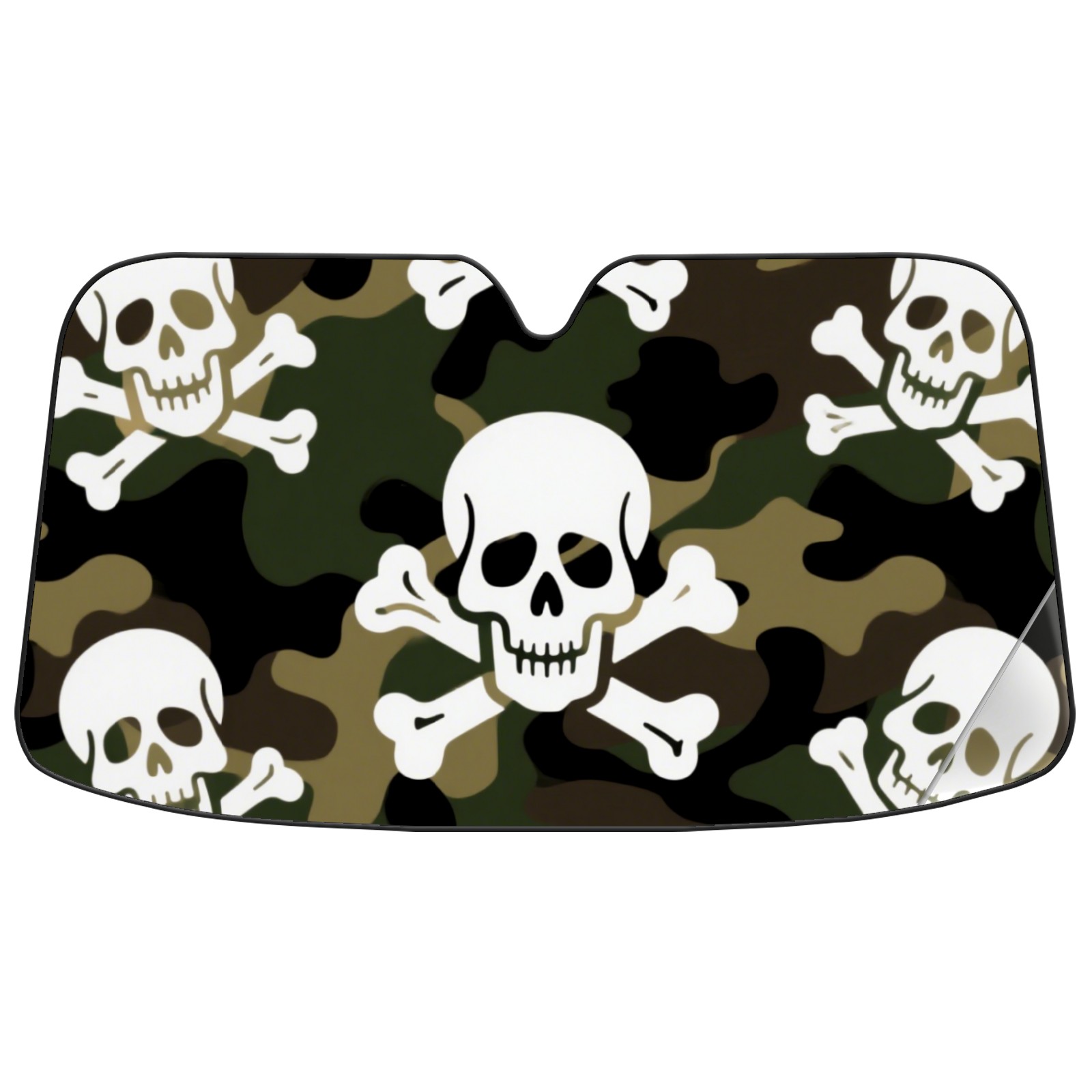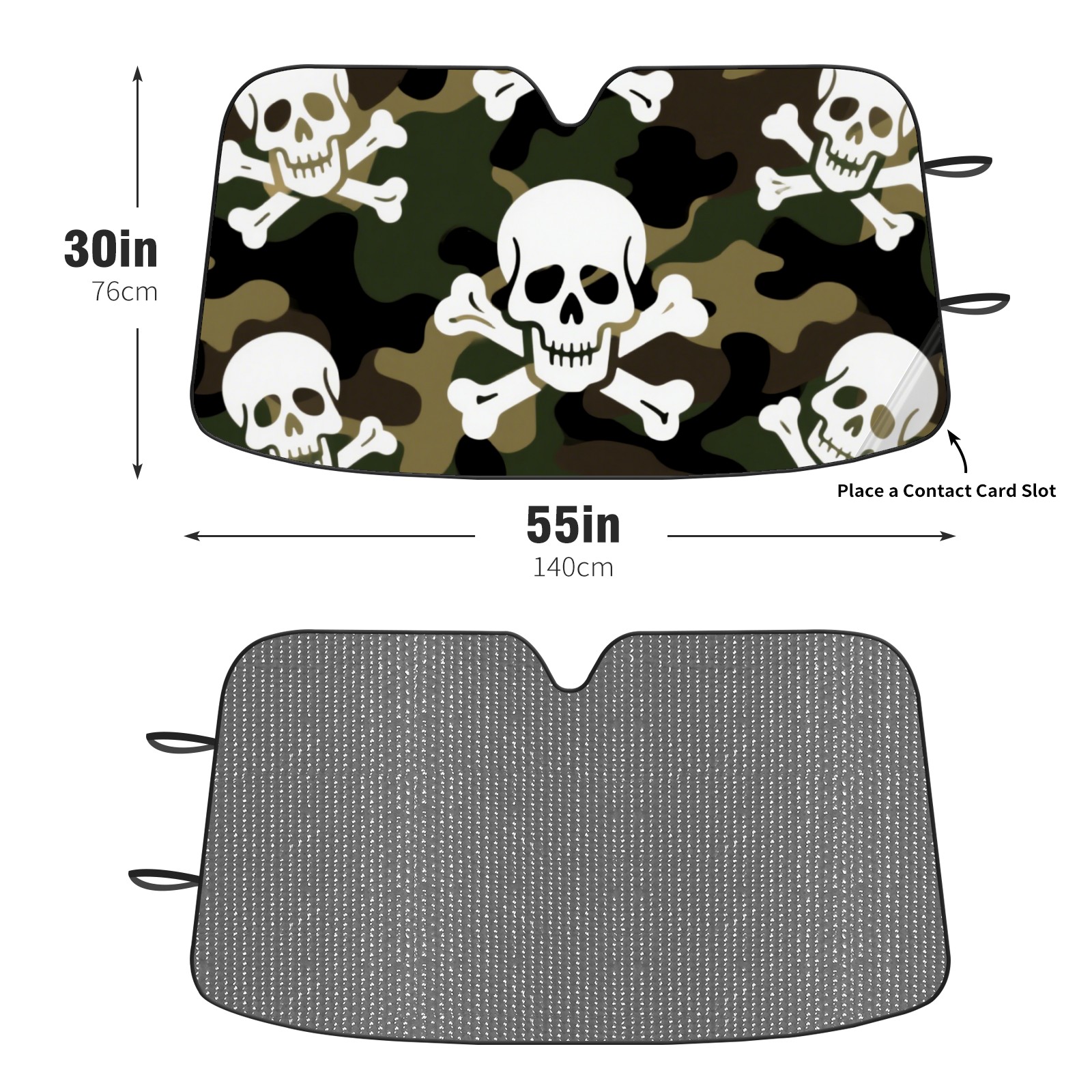 Aluminum Foil Polyester Car Sunshade Pad, Efficient Heat Insulation And Sun Protection ArtifactMilitary Green Skull