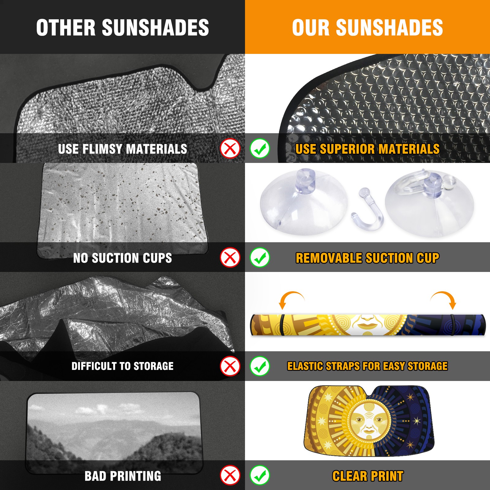 • <p>This car sunshade pad is made of a high-quality combination of aluminum foil and polyester, reinforced with transparent adhesive. It measures 140x76cm (55inx30in) and is a practical choice for protecting your car. Its powerful UV protection function can effectively block harmful light, prevent the car interior from aging due to exposure to sunlight, and maintain the dashboard, steering wheel, and seats in a brand new state.<br></p>