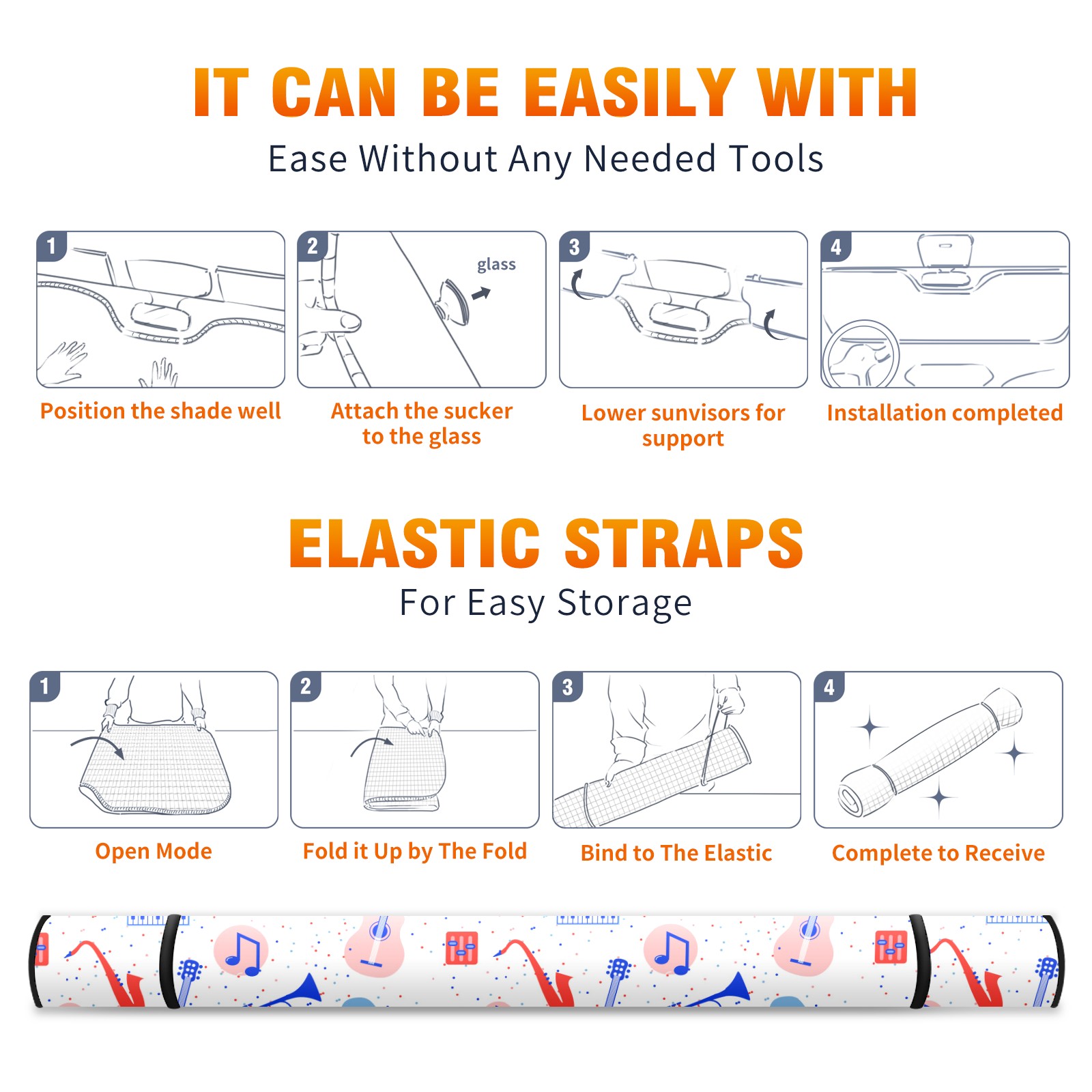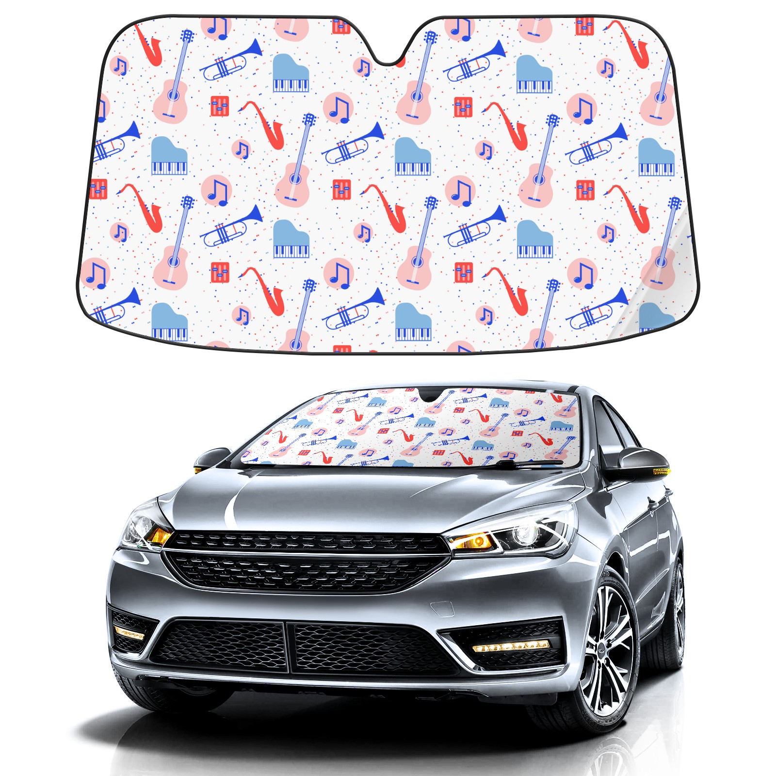 Car Windshield Sun Shade Polyester Car Sunshade Pad, Heat Insulation And Sun Protection guitar music piano