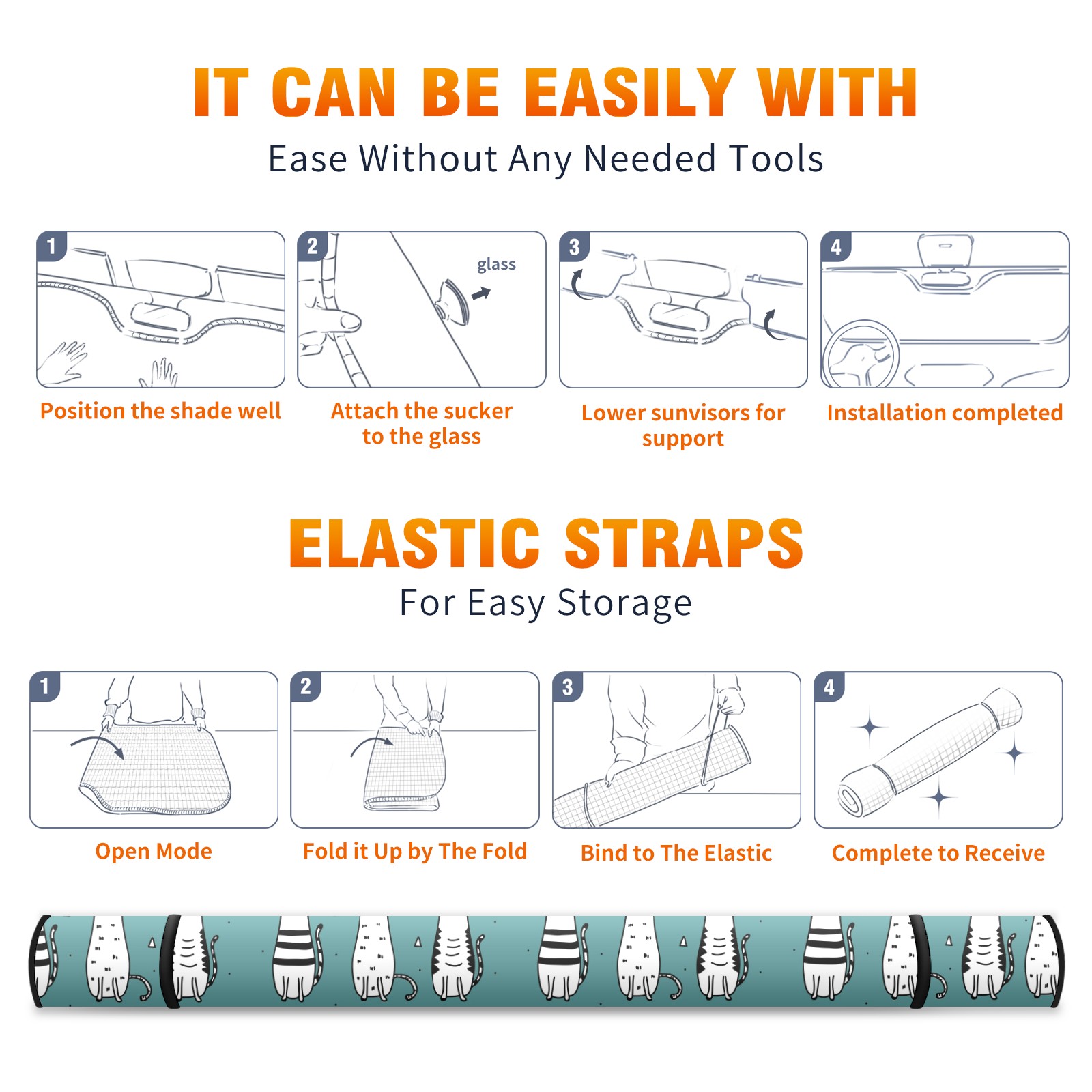 Car Windshield Sun Shade Polyester Car Sunshade Pad, Heat Insulation And Sun Protection 猫 かわいい