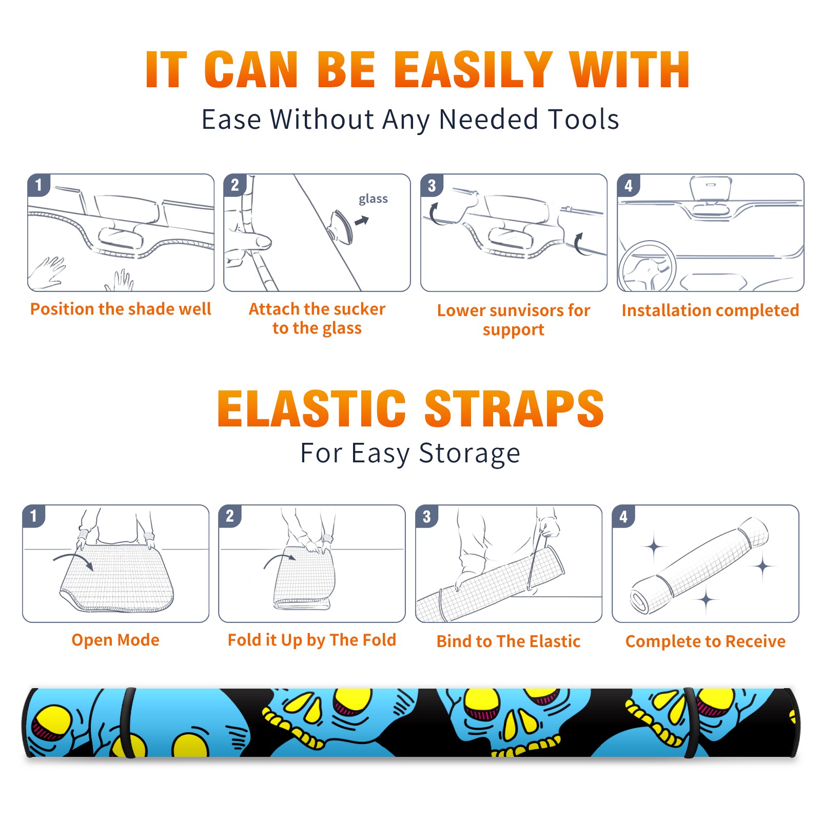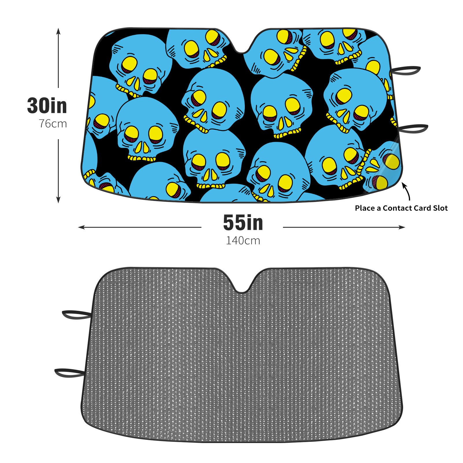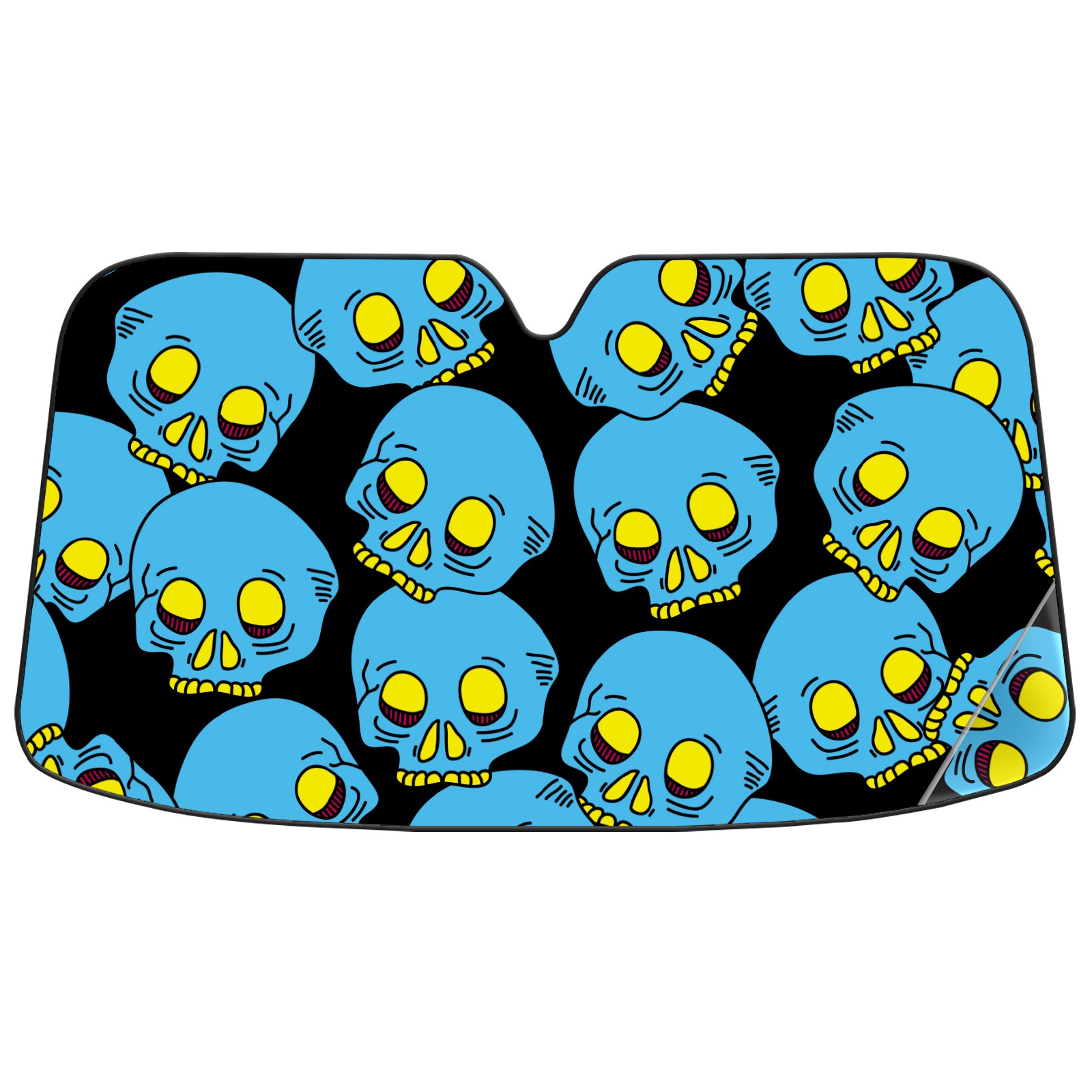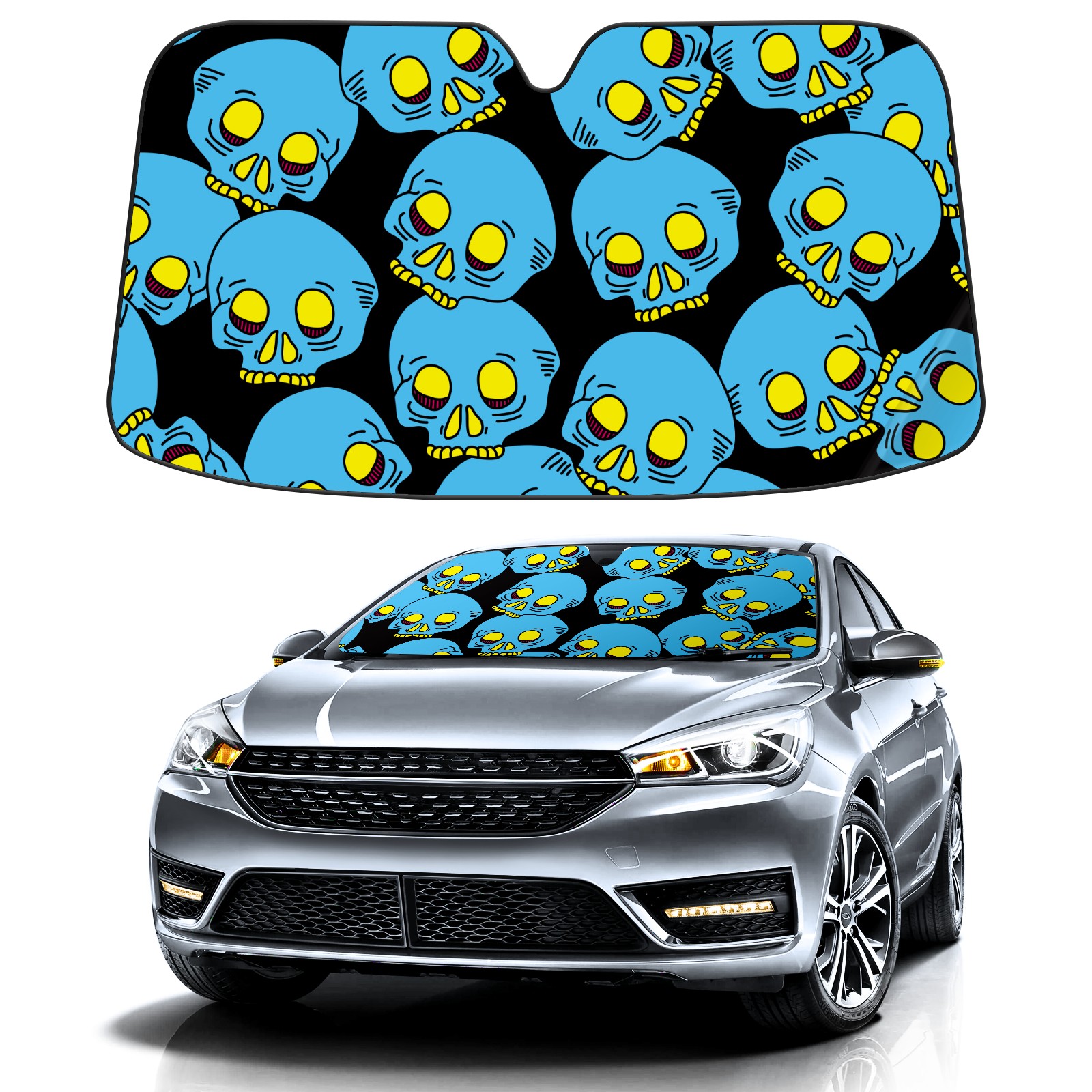 Car Windshield Sun Shade Polyester Car Sunshade Pad, Heat Insulation And Sun Protection Funny Blue Skull