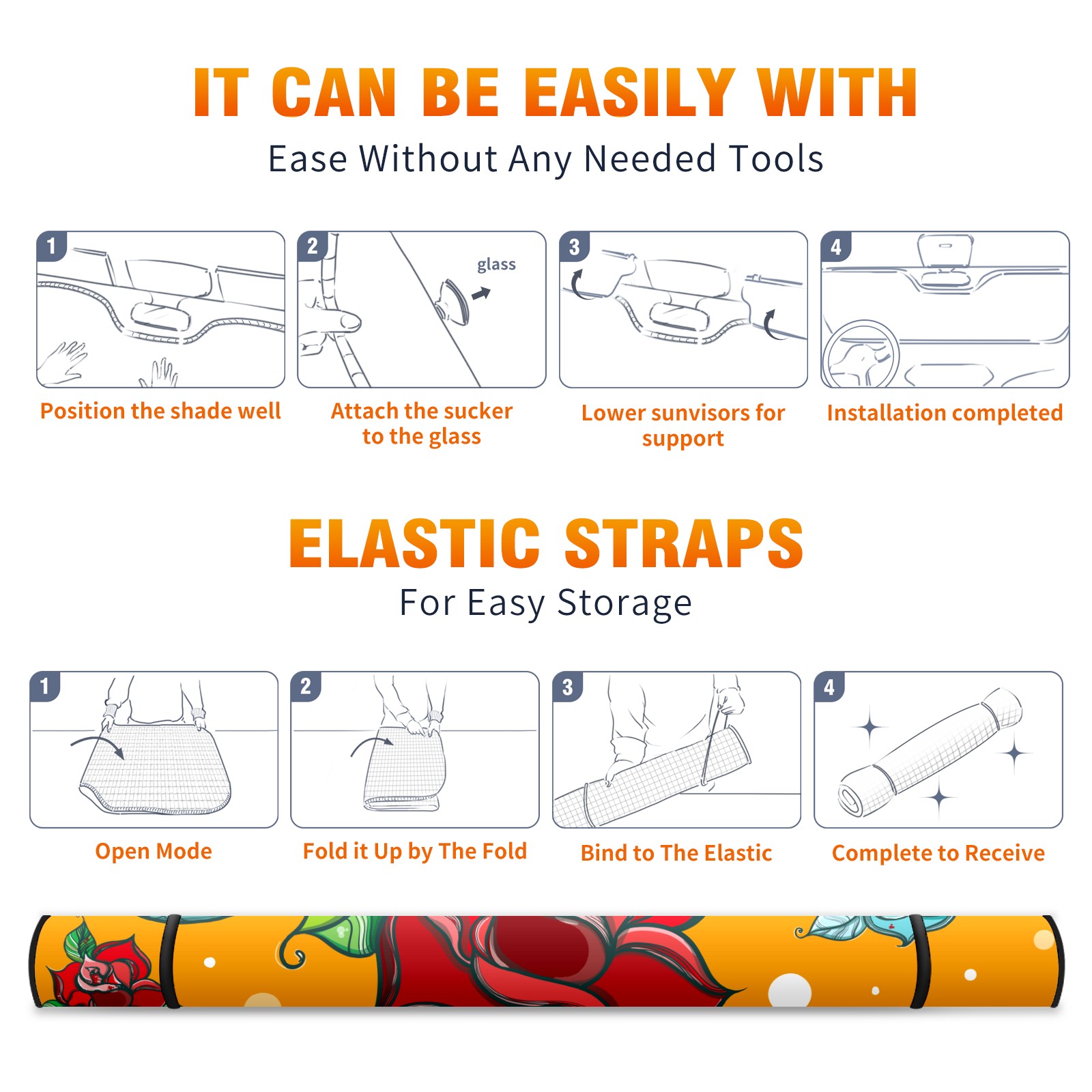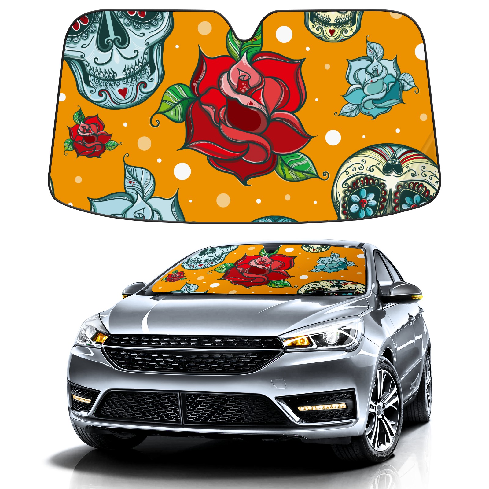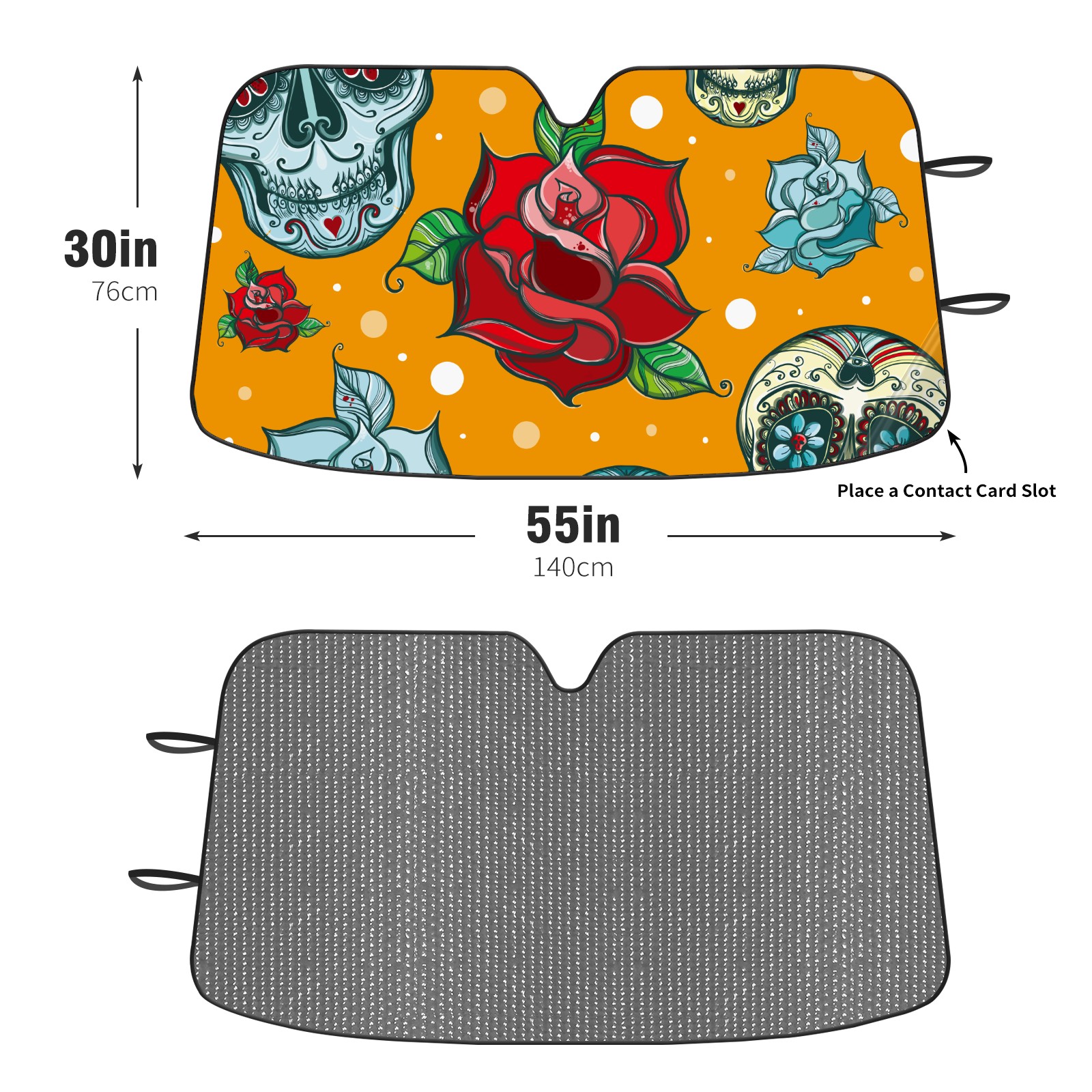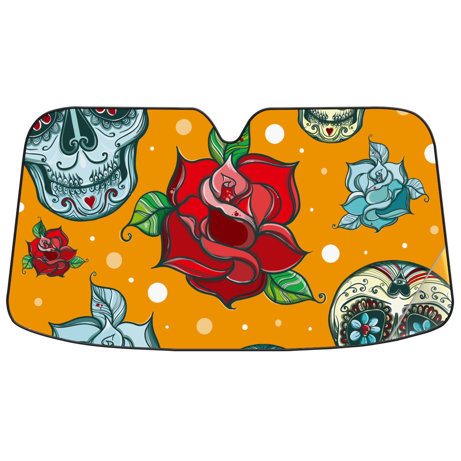 Car Windshield Sun Shade Polyester Car Sunshade Pad, Heat Insulation And Sun Protection Floral Skulls Pattern