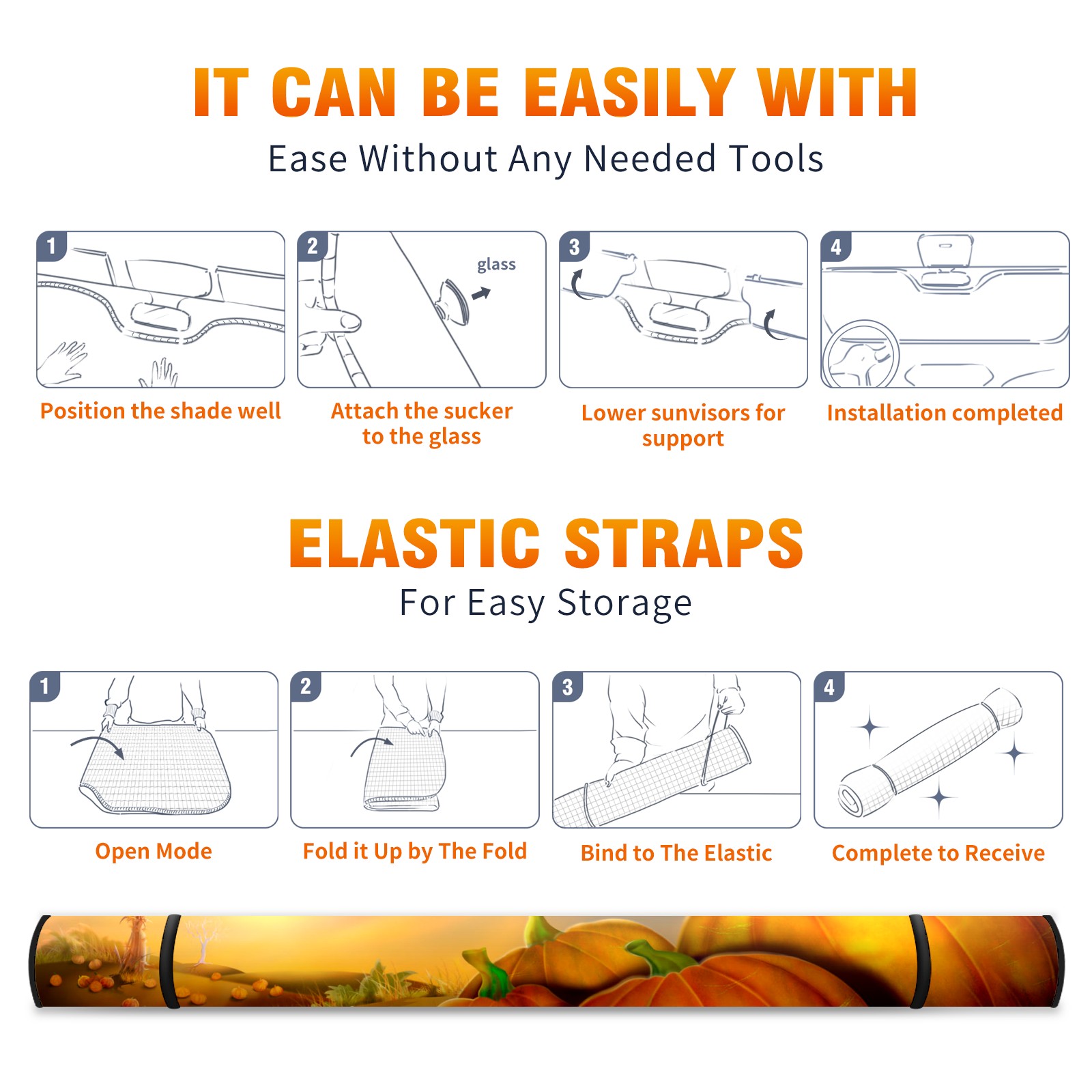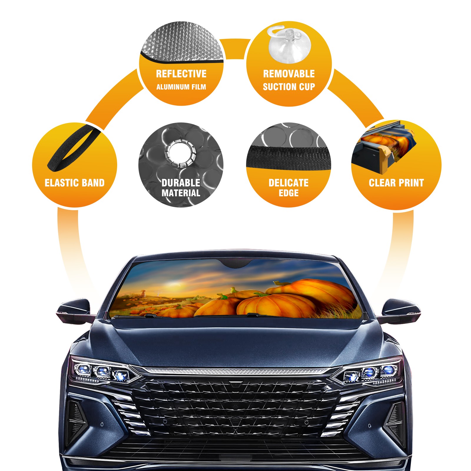 Car Windshield Sun Shade Polyester Car Sunshade Pad, Heat Insulation And Sun Protection Thanksgiving pumpkin