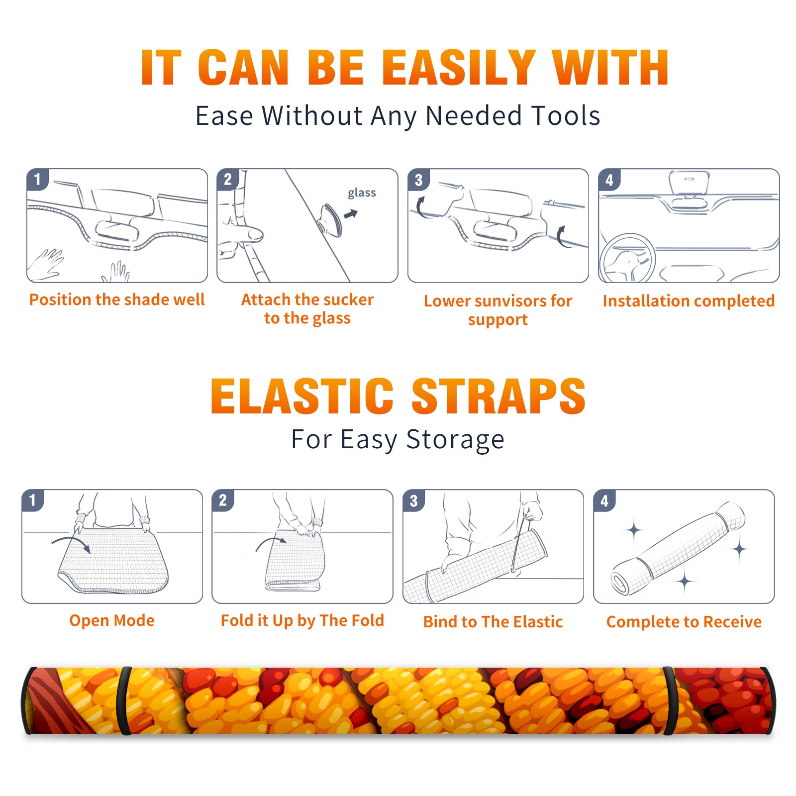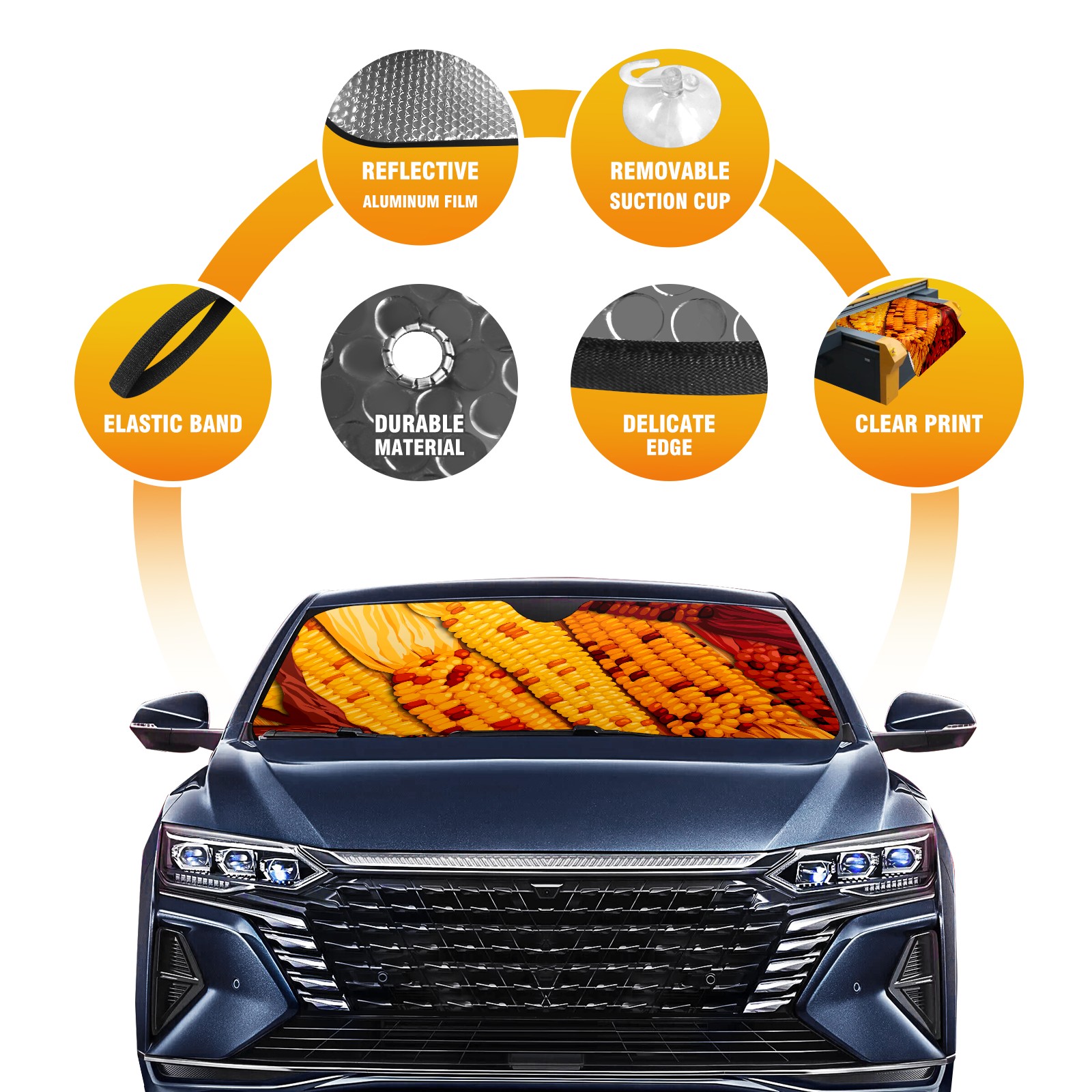 Car Windshield Sun Shade Polyester Car Sunshade Pad, Heat Insulation And Sun Protection Thanksgiving corn harvest