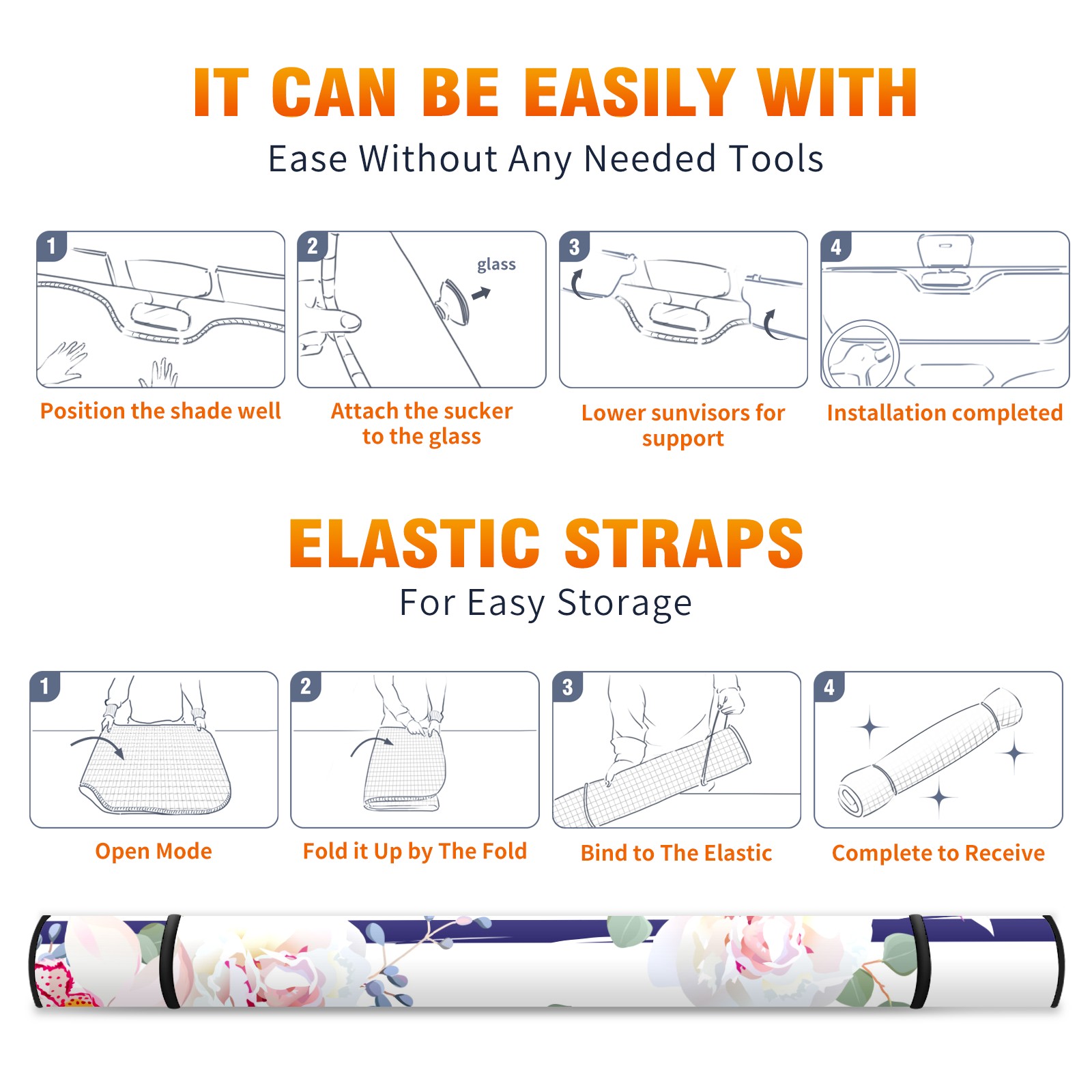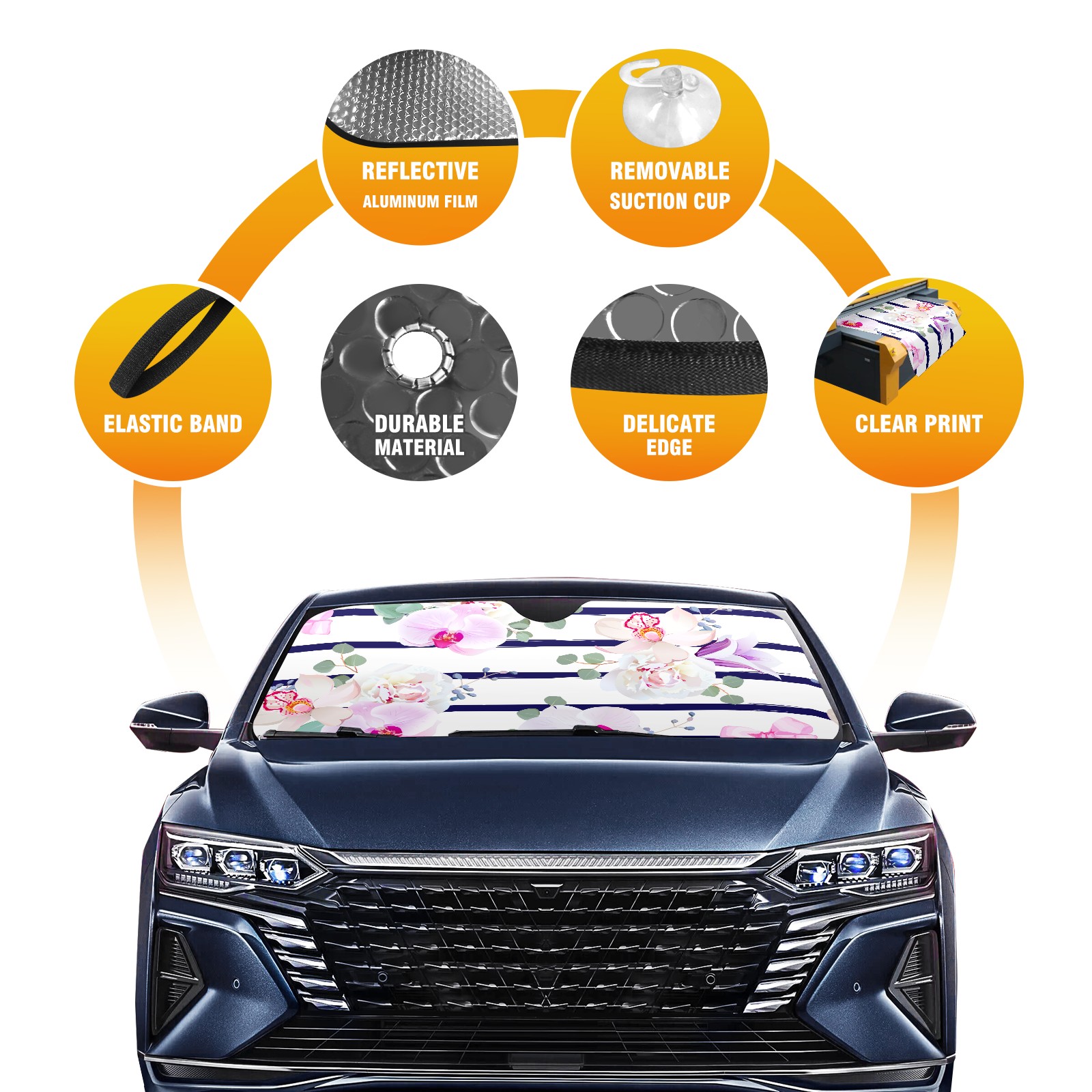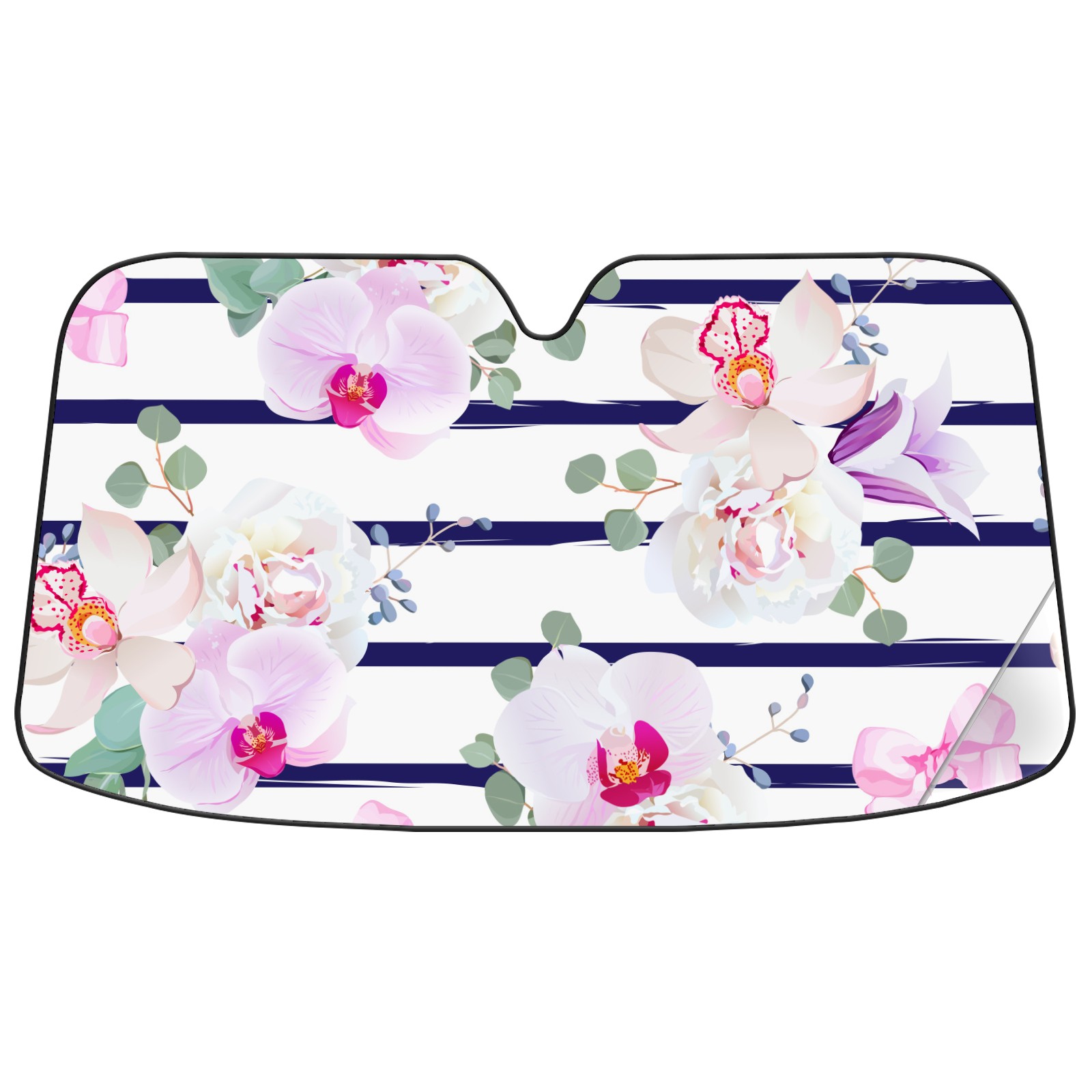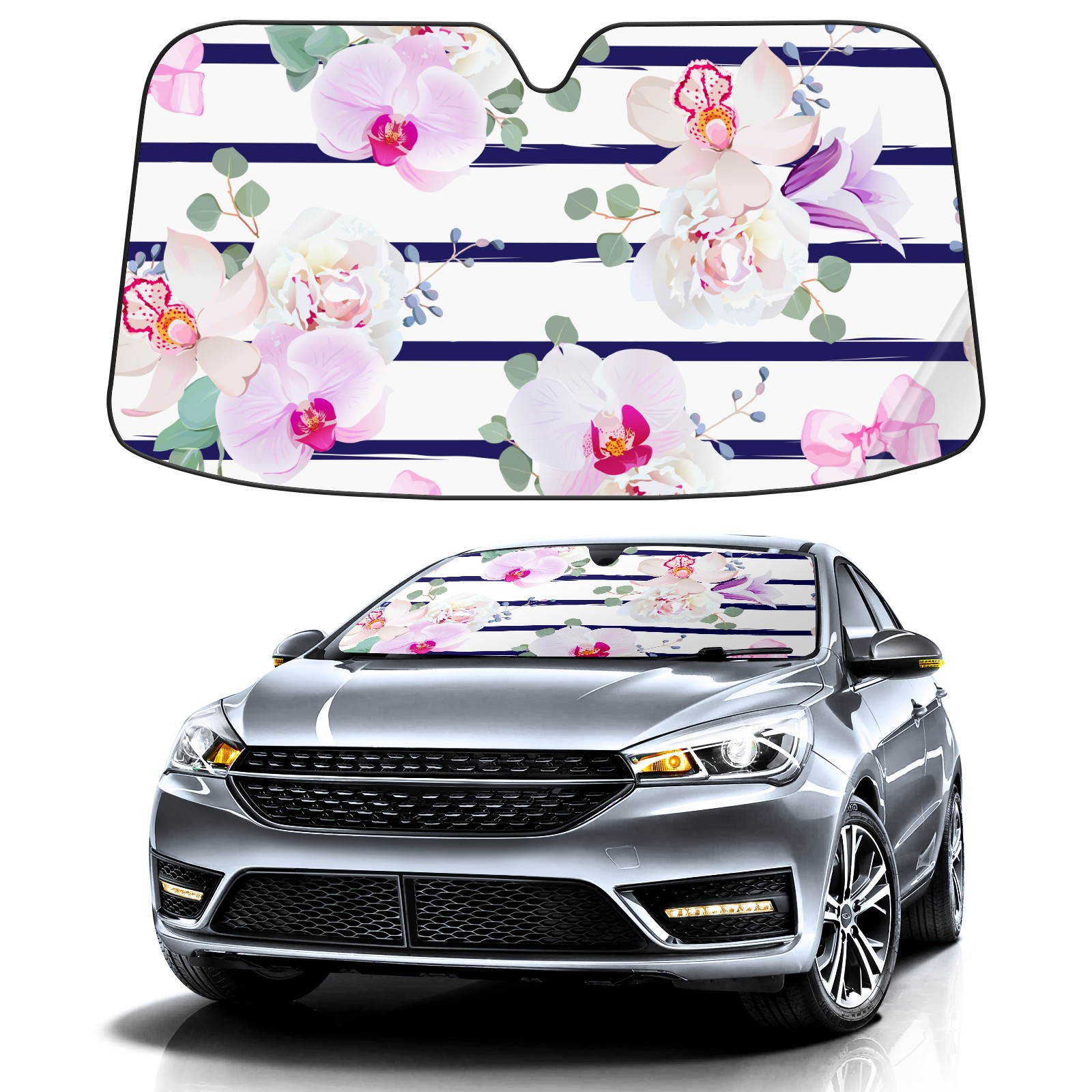 Car Windshield Sun Shade Polyester Car Sunshade Pad, Heat Insulation And Sun Protection stripe pink flower