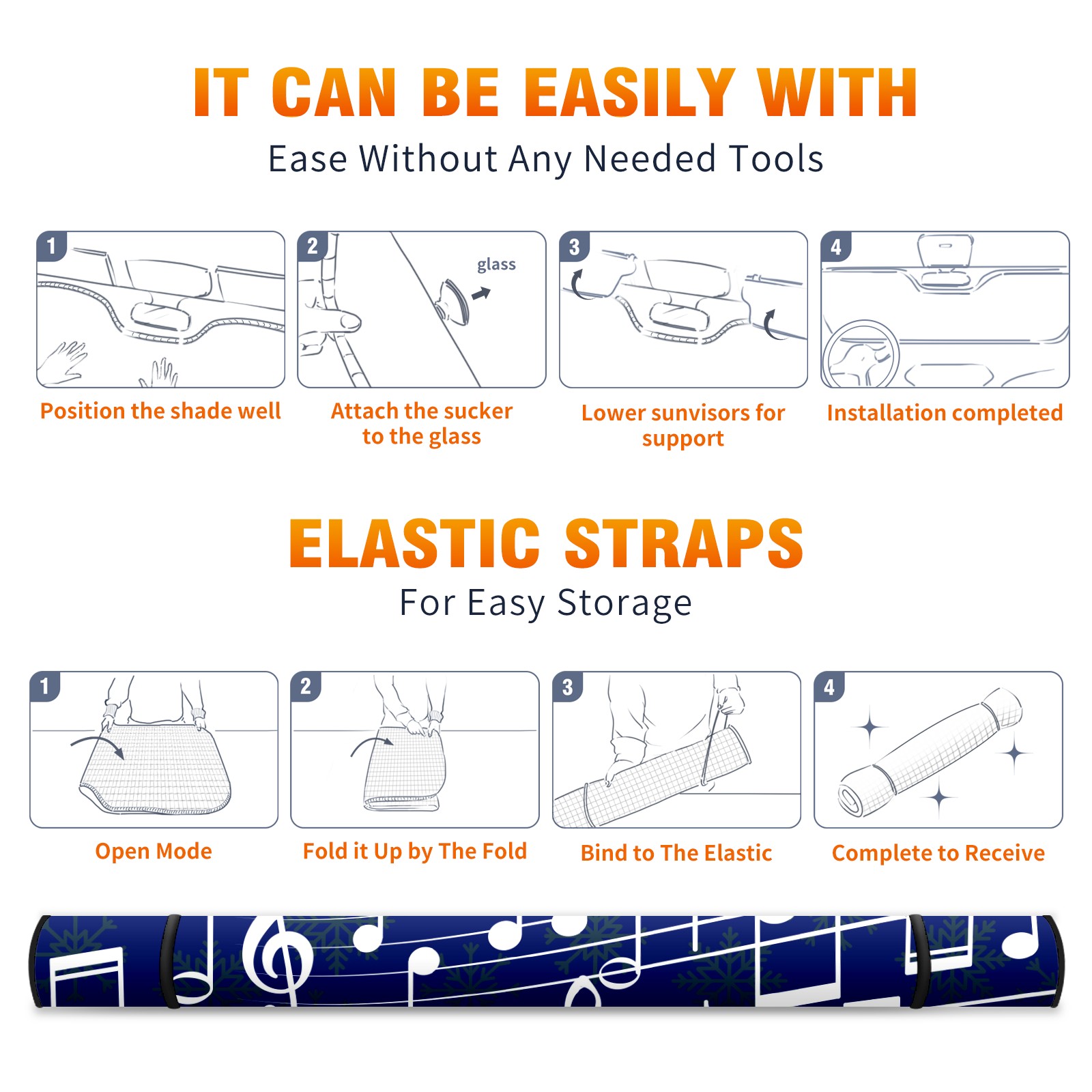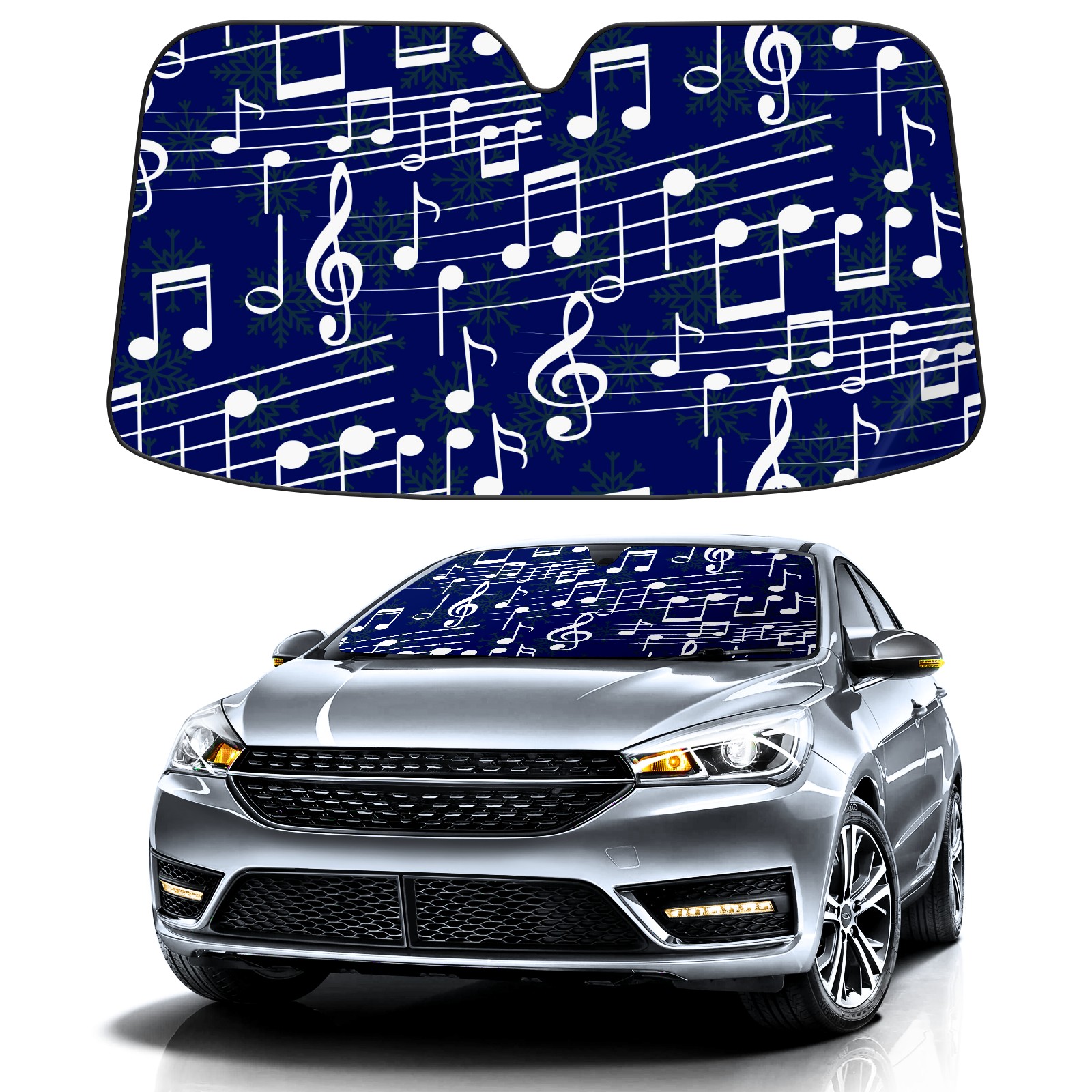 Car Windshield Sun Shade Polyester Car Sunshade Pad, Heat Insulation And Sun Protection Music Note Pattern