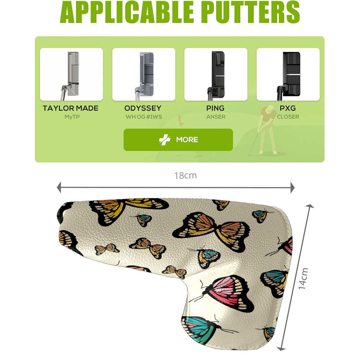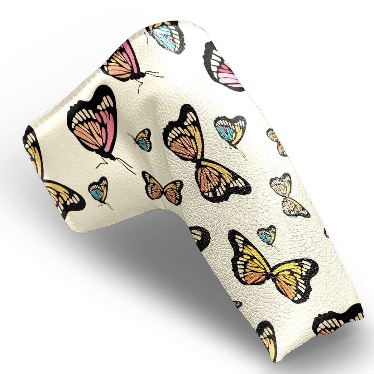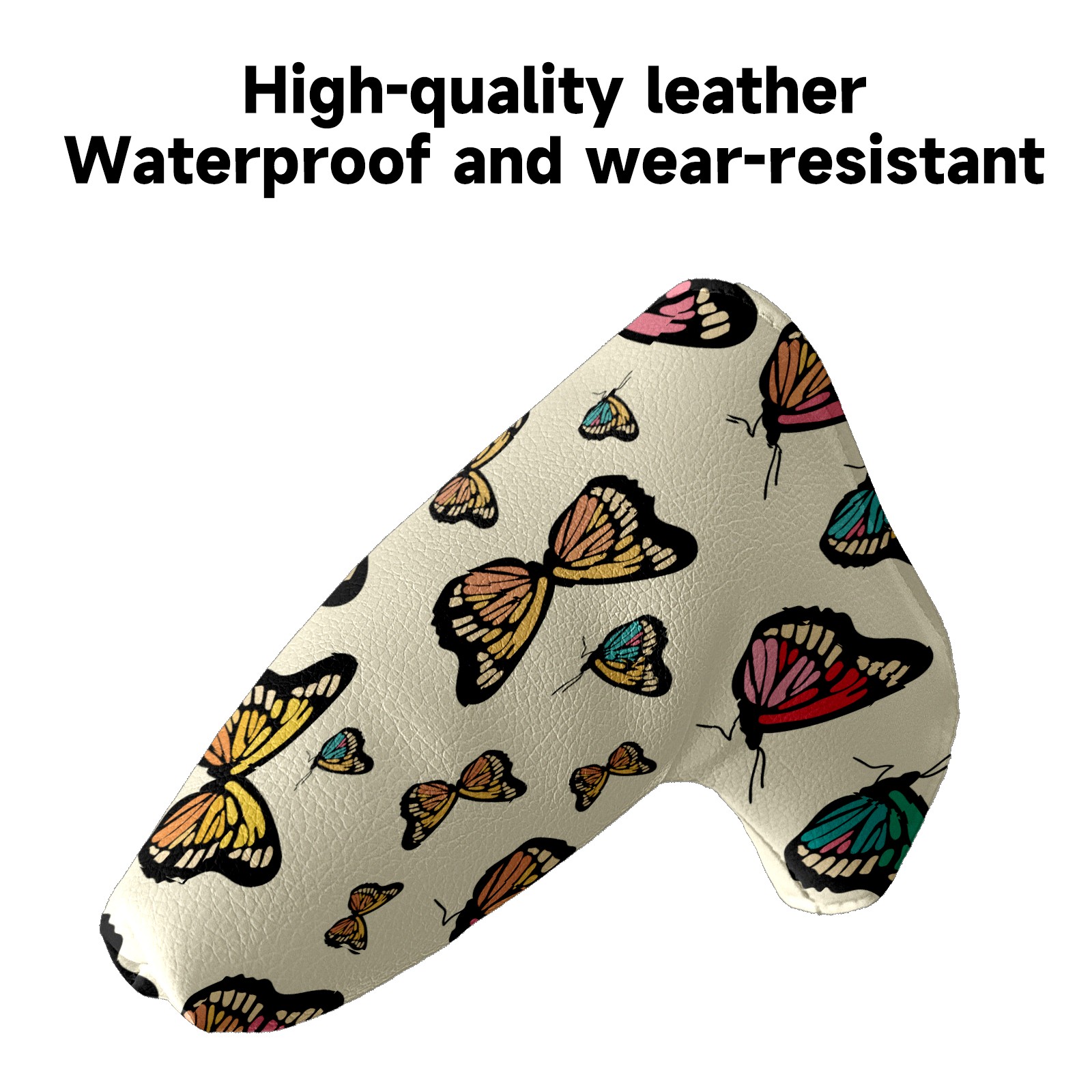 Golf Club Cover, Fleece Lined & Water Resistant Golf Club Cover, Creative & Unique Head Cover Designs, PU Leather and Velcro Closure Design, Golf Accessories for Golfers Hand Drawn Kinds Of Butterflies Pattern