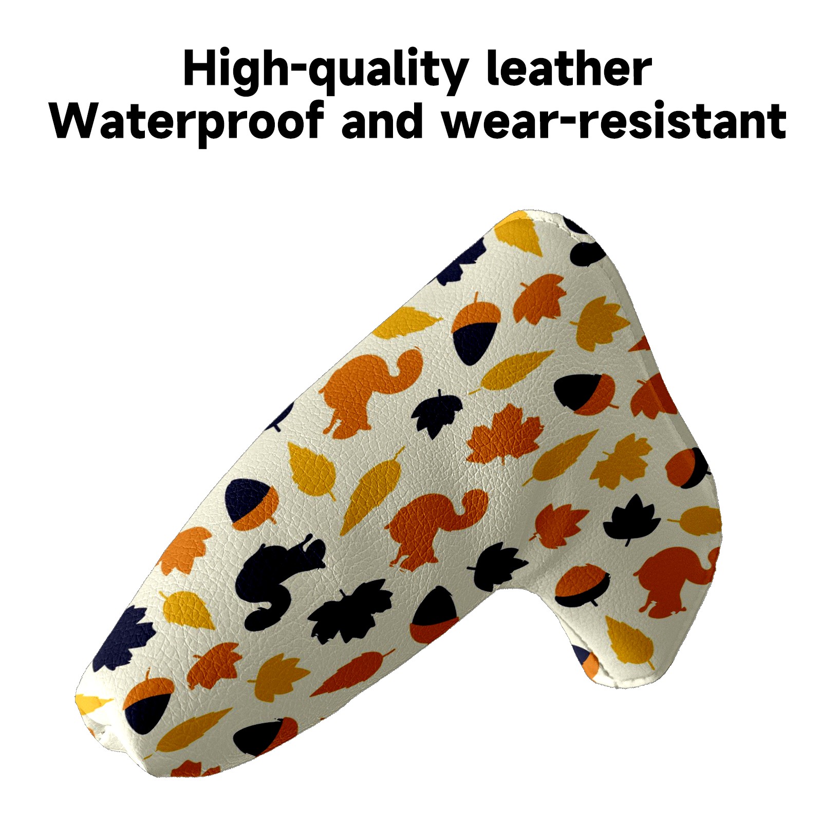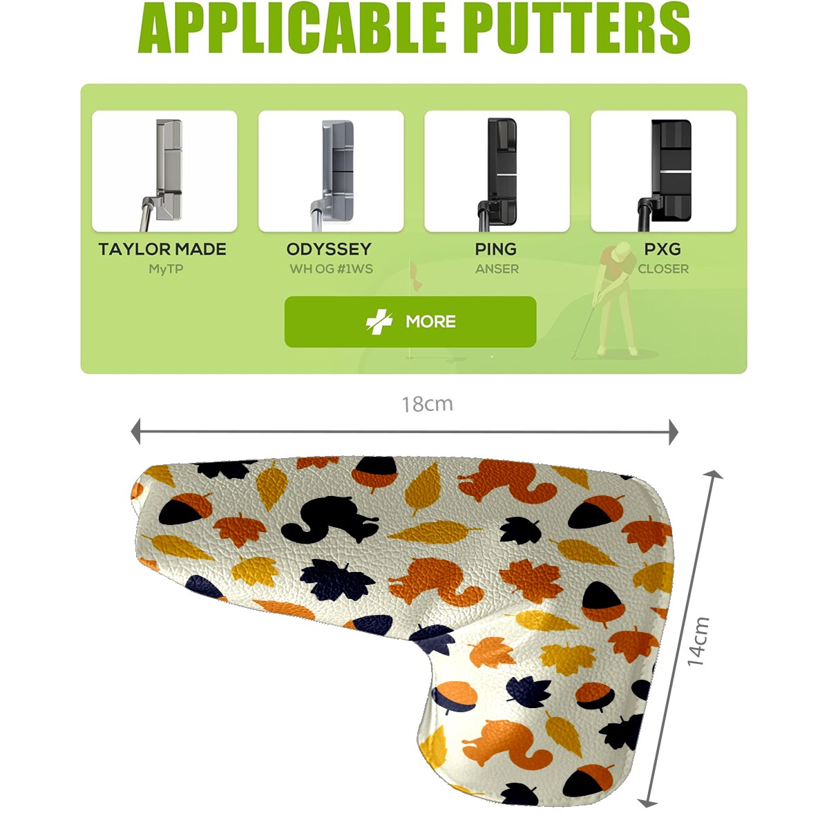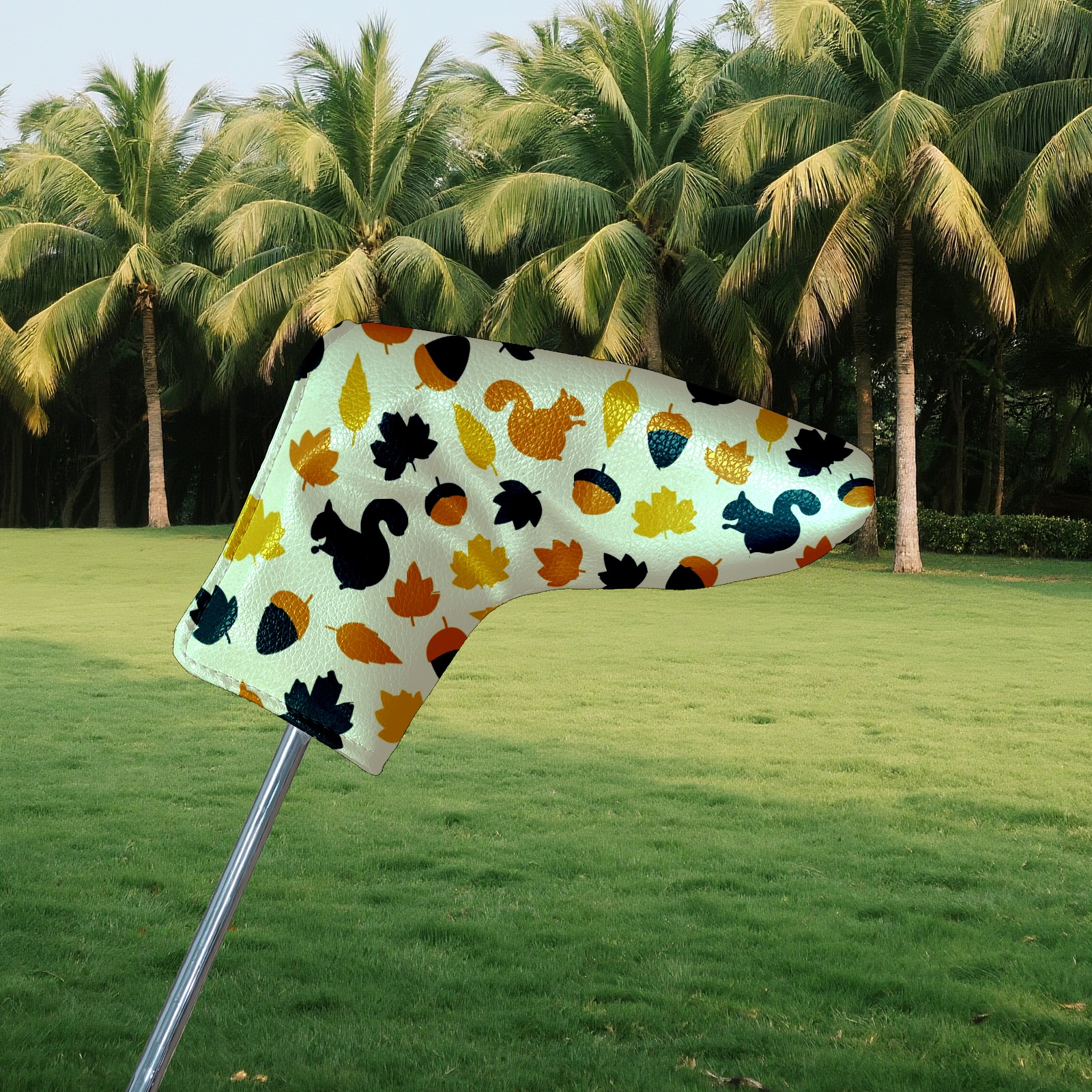 Golf Club Cover, Fleece Lined & Water Resistant Golf Club Cover, Creative & Unique Head Cover Designs, PU Leather and Velcro Closure Design, Golf Accessories for Golfers Autumnal Pattern Maple Squirrel Orange Dark Yellow Pinecone