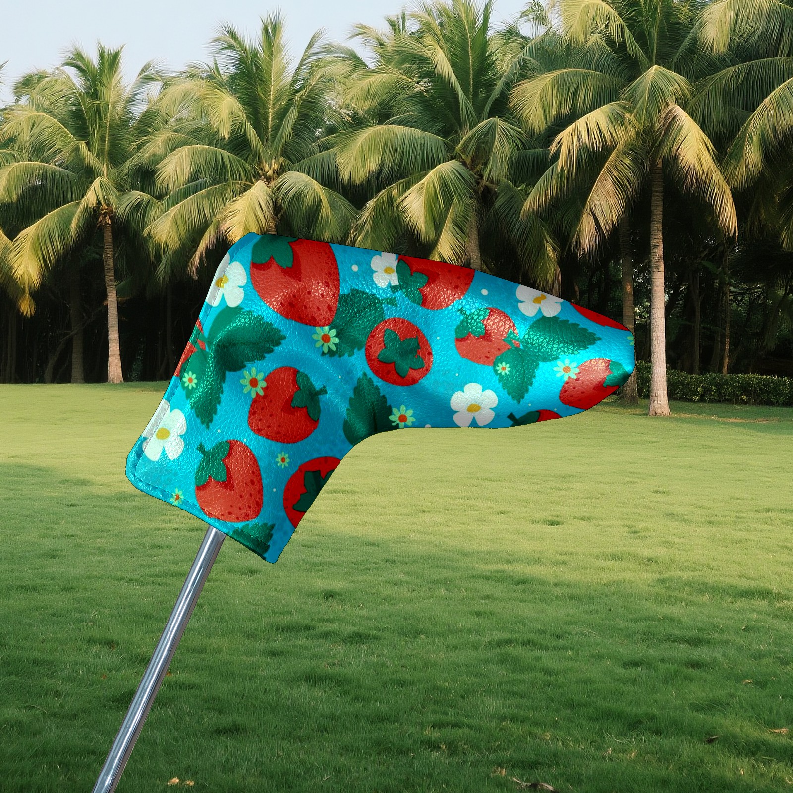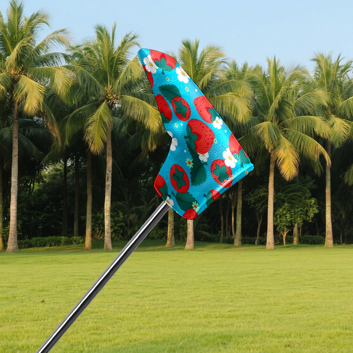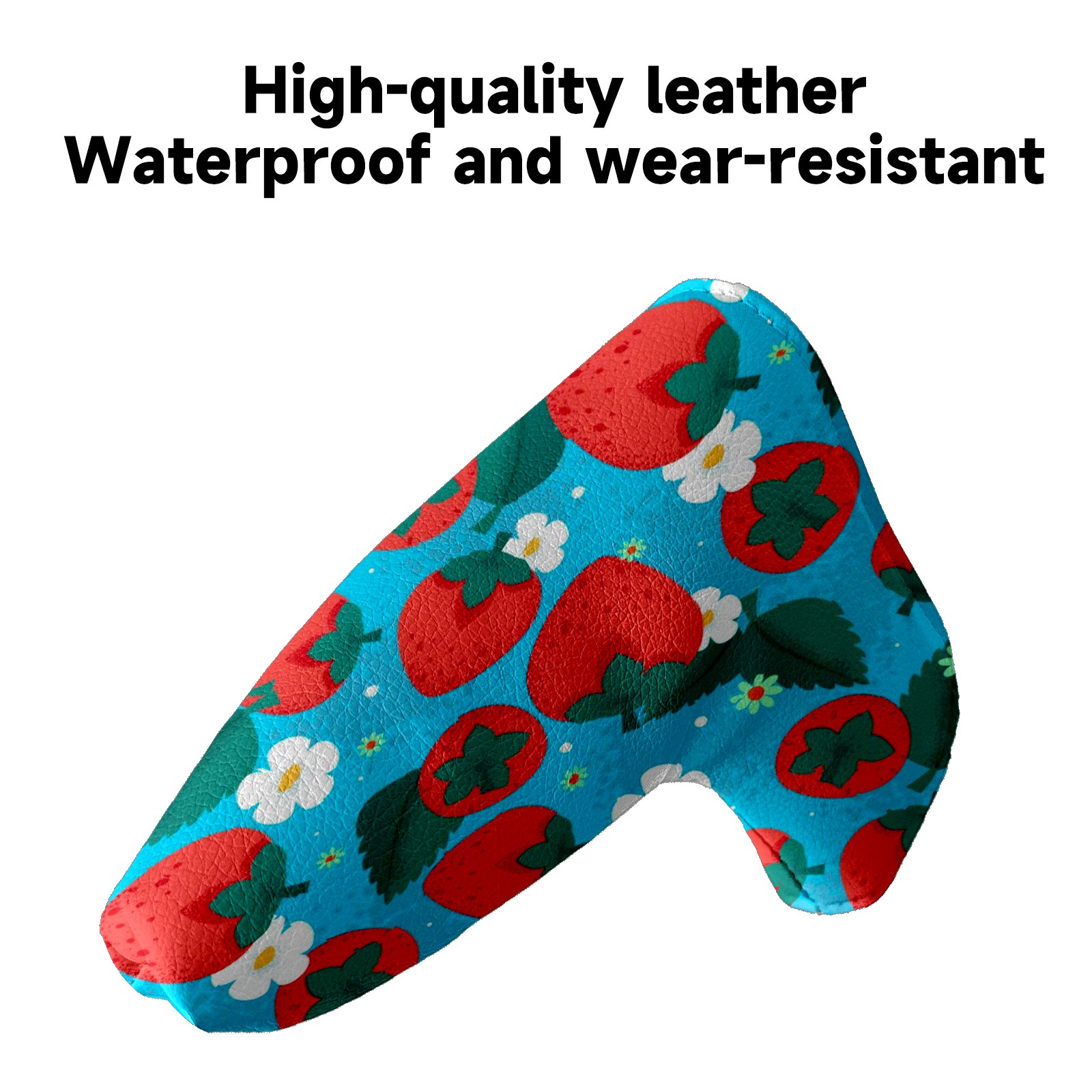 Golf Club Cover, Fleece Lined & Water Resistant Golf Club Cover, Creative & Unique Head Cover Designs, PU Leather and Velcro Closure Design, Golf Accessories for Golfers Red Strawberry Flower On Blue