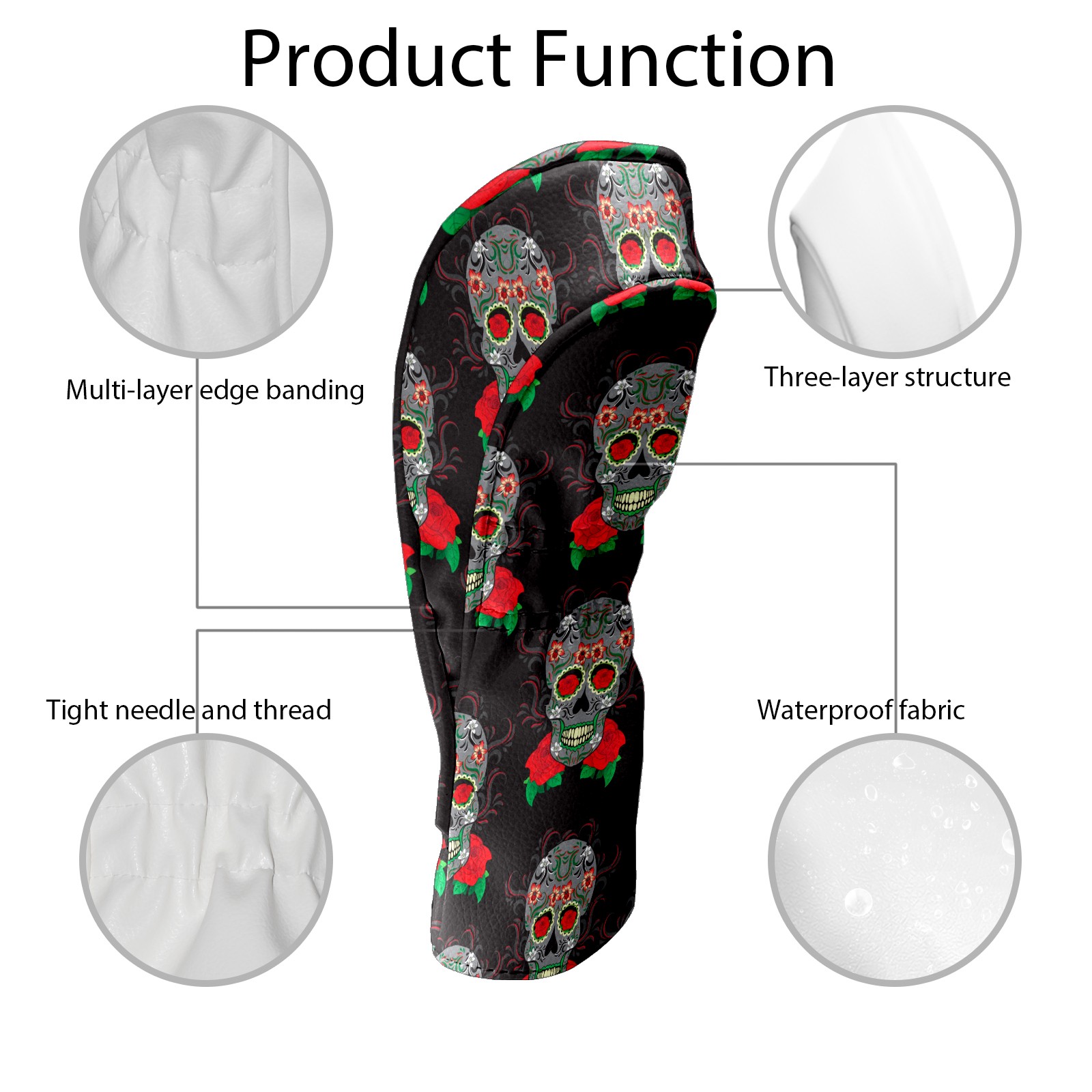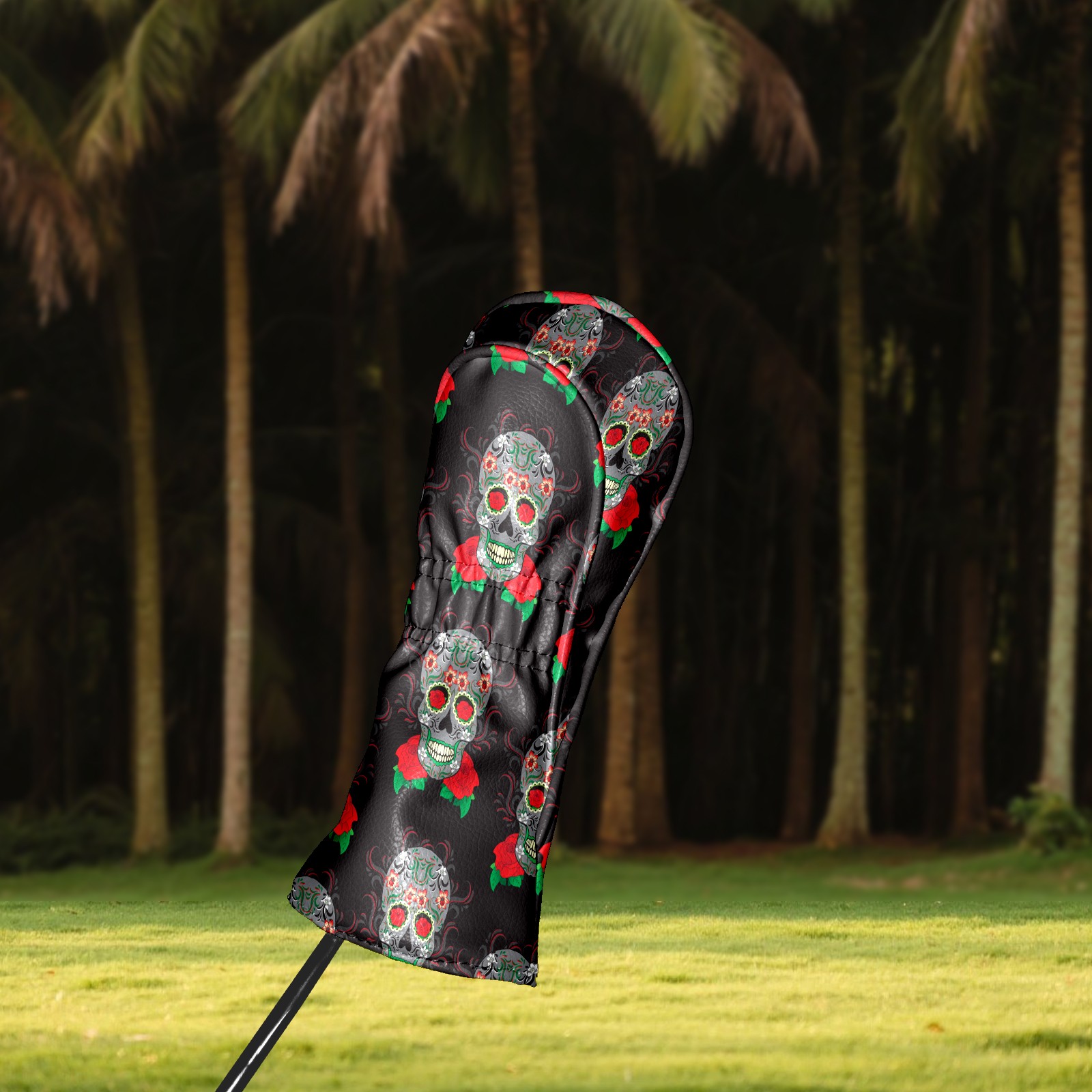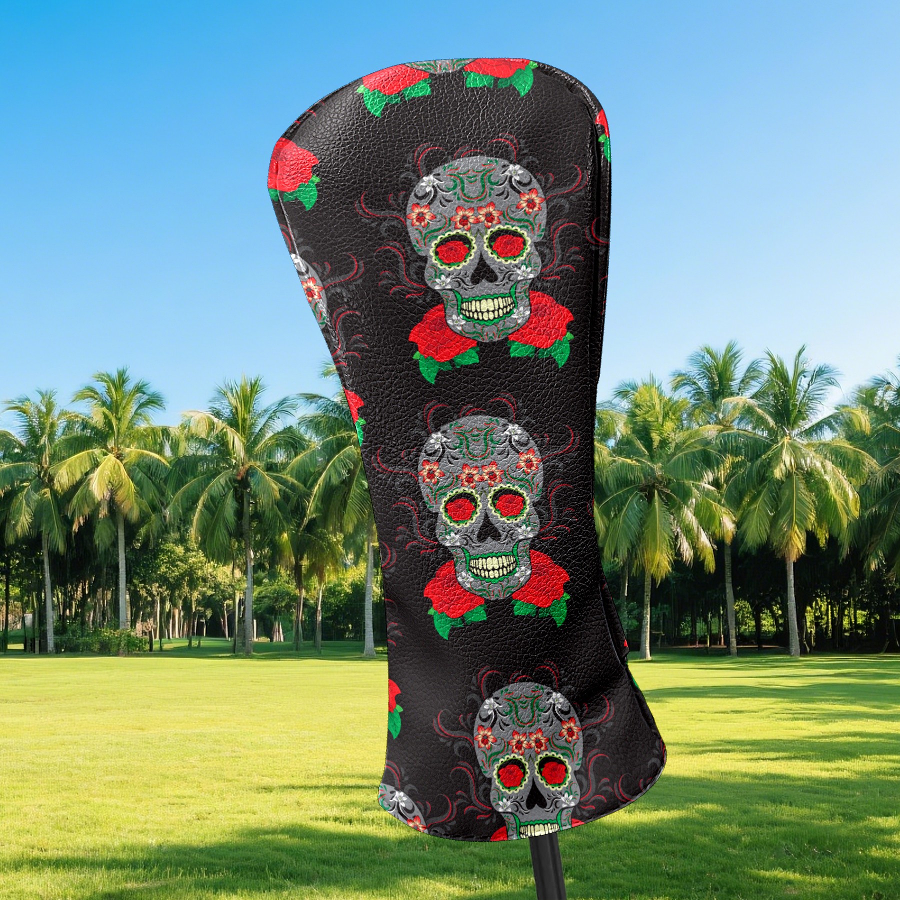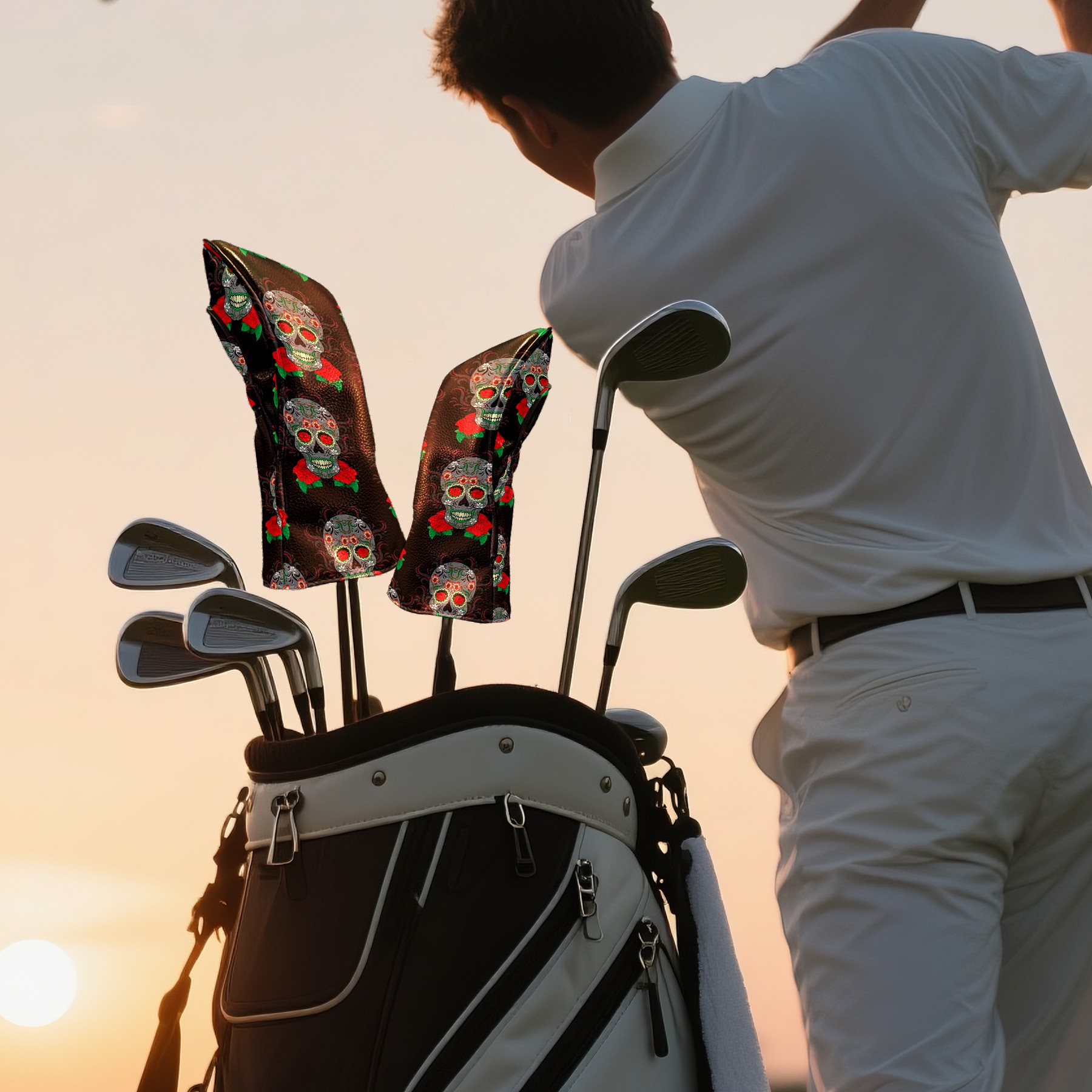 Black Golf Club Head Cover Golf Accessories Head Covers Set For Driver & Fairway Woods Vintage Florals Skull Pattern