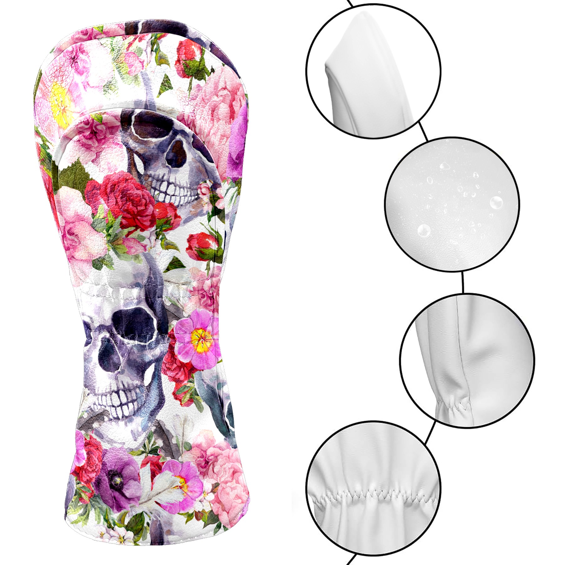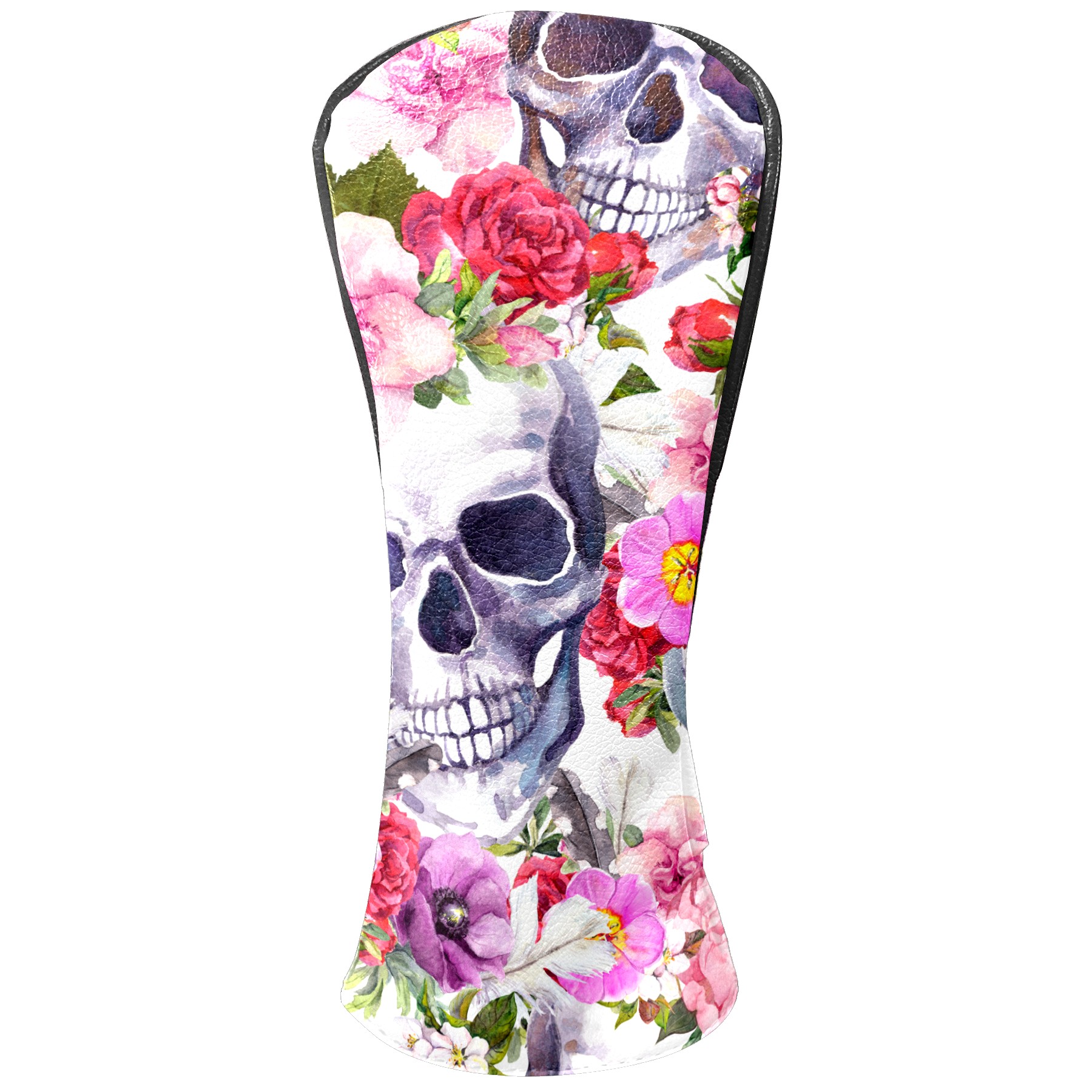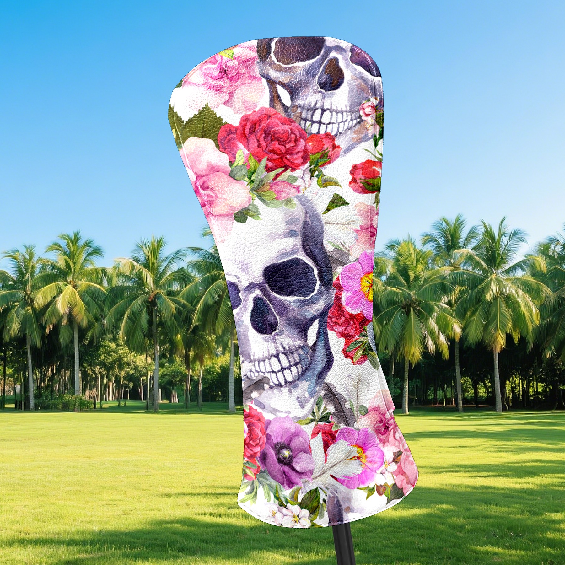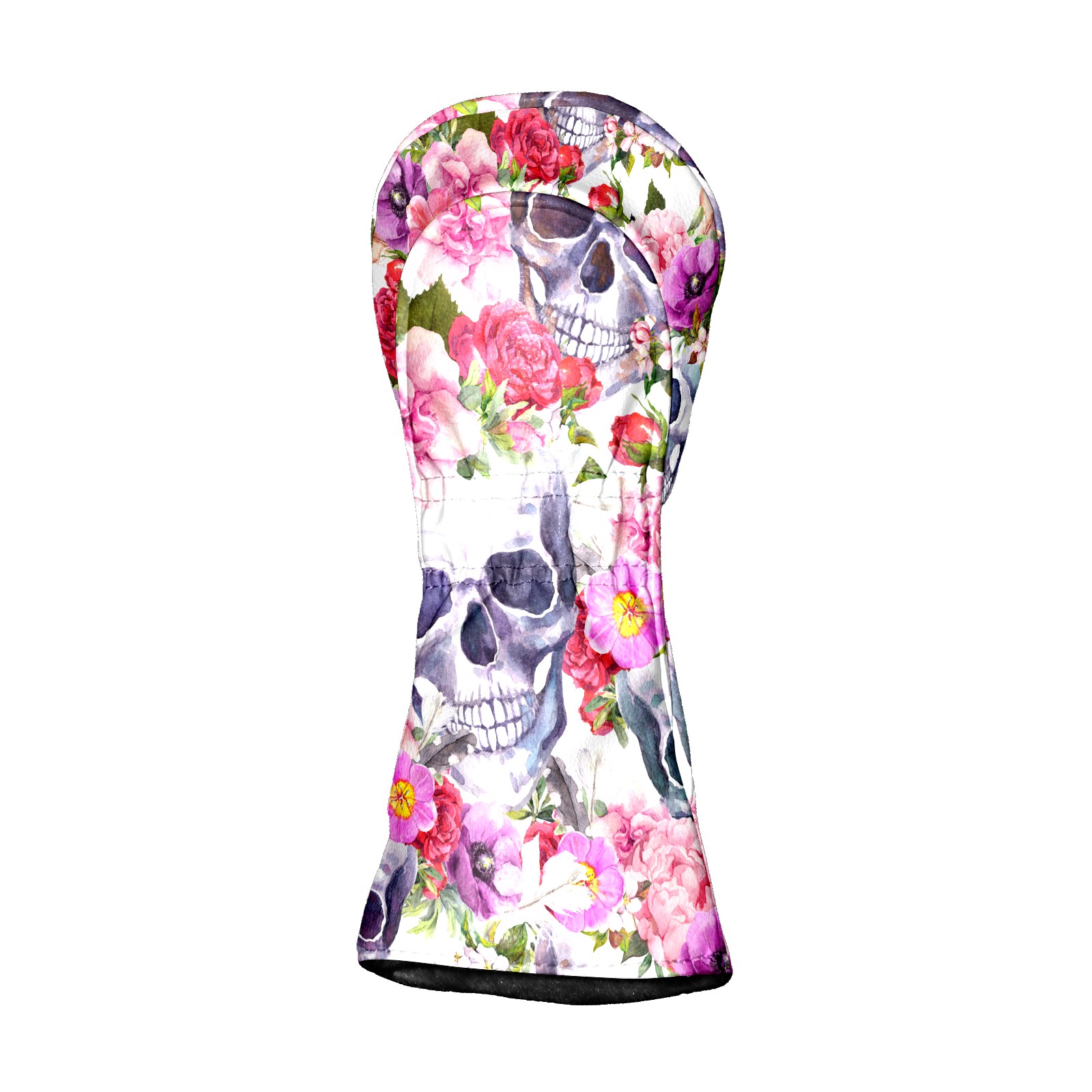 Black Golf Club Head Cover Golf Accessories Head Covers Set For Driver & Fairway Woods Skull With Pink Flower Pattern