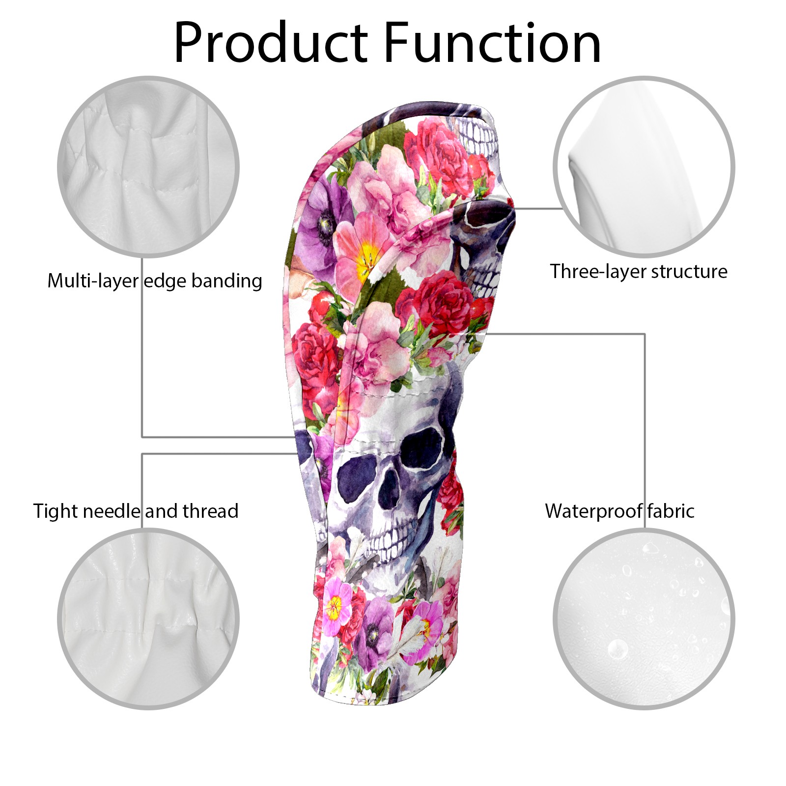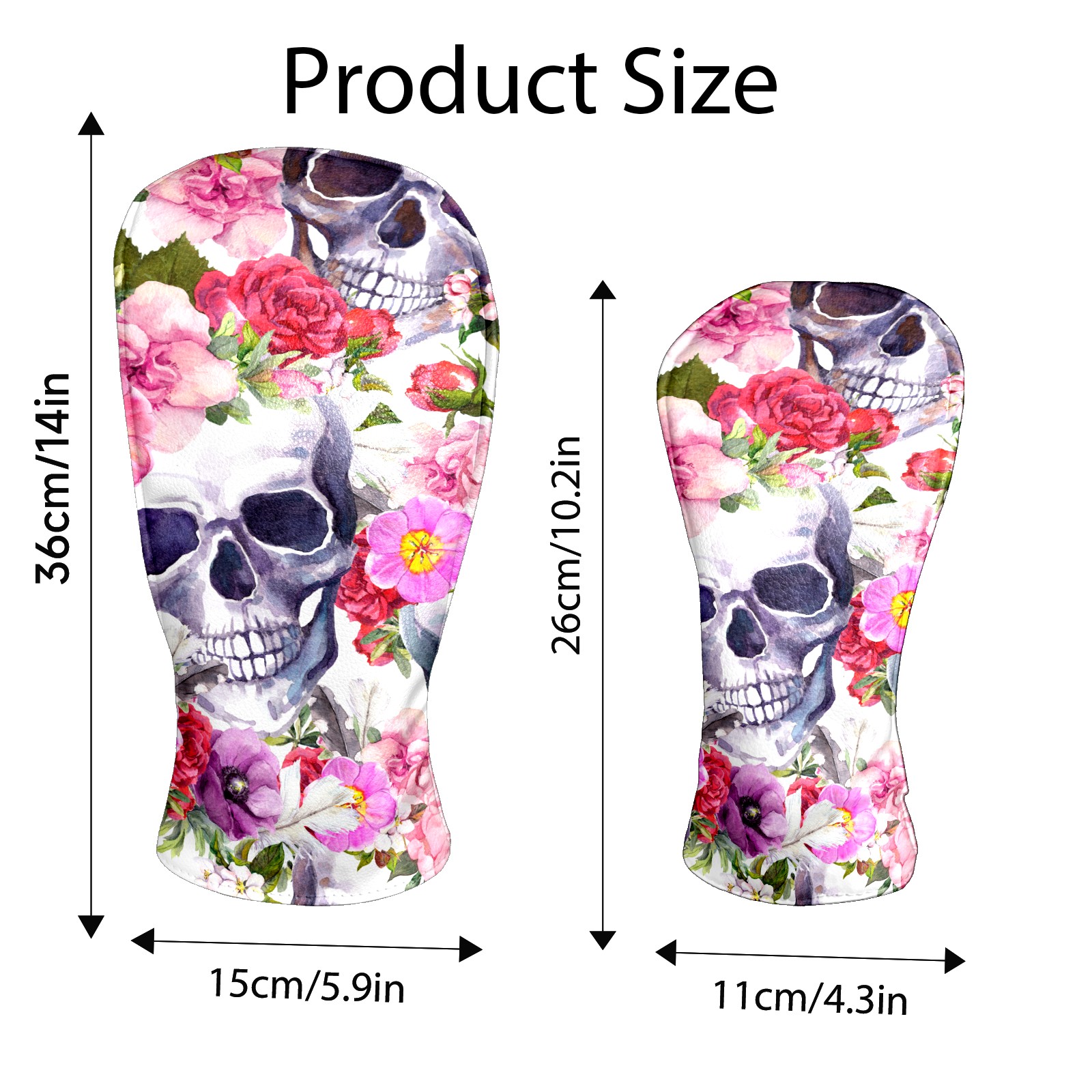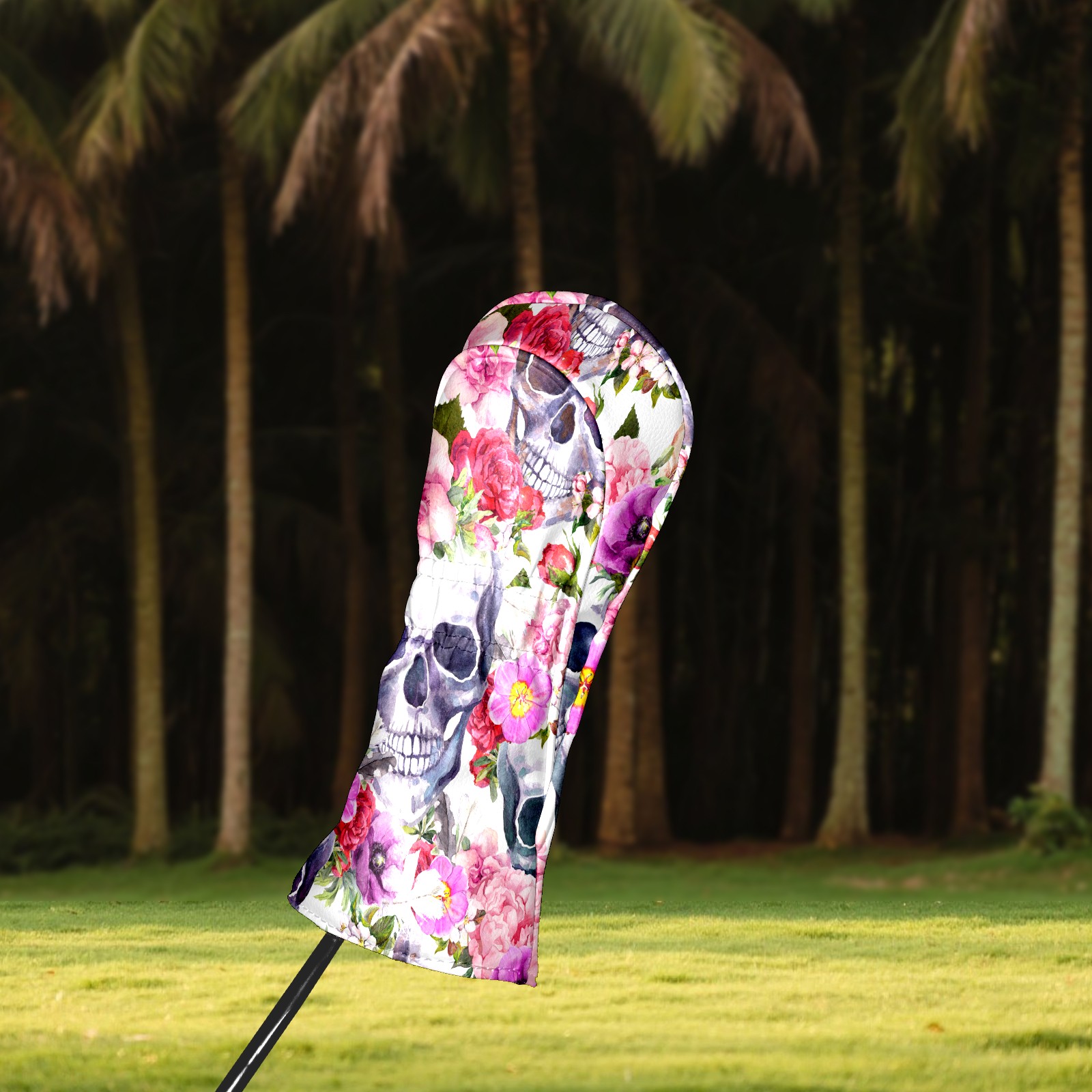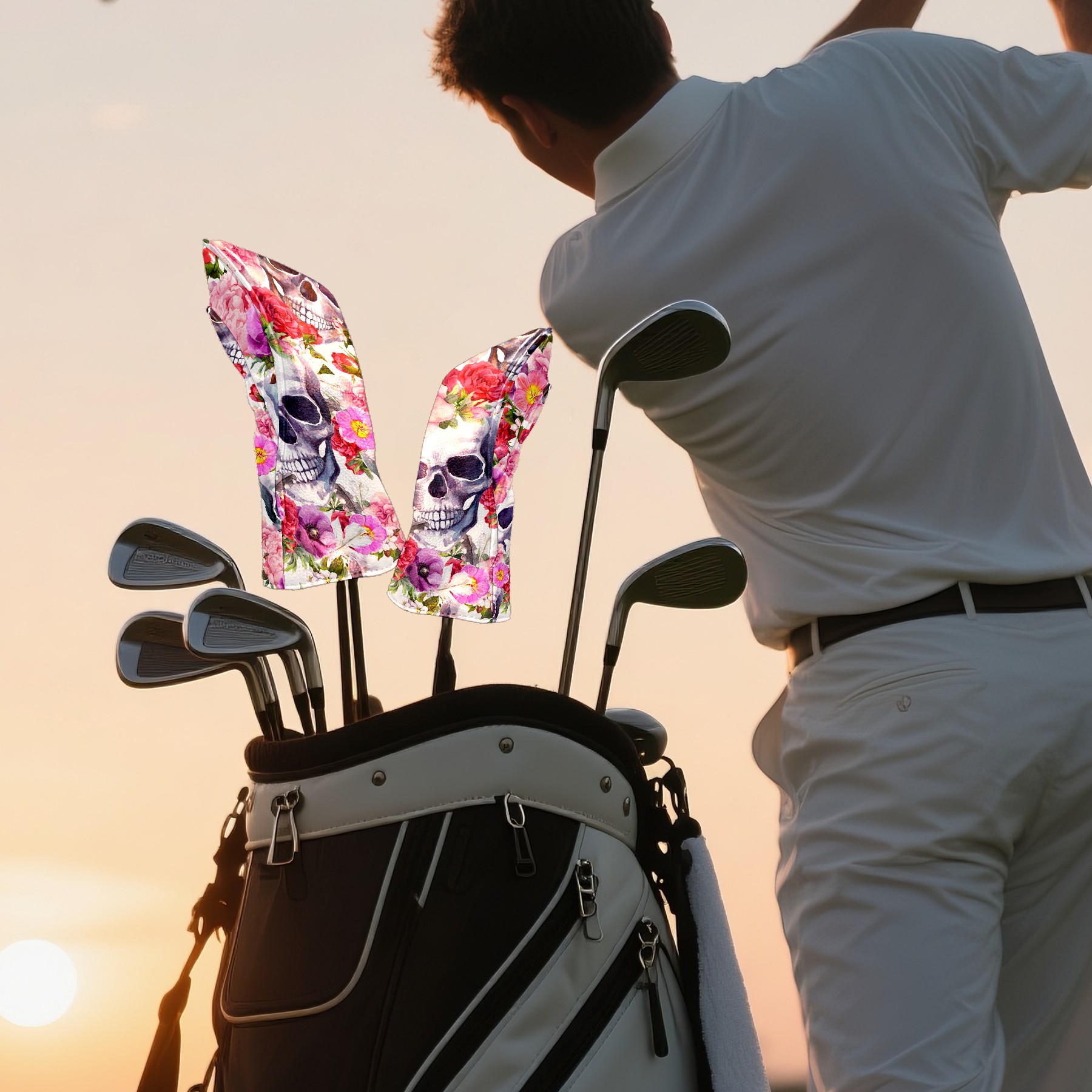 Black Golf Club Head Cover Golf Accessories Head Covers Set For Driver & Fairway Woods Skull With Pink Flower Pattern
