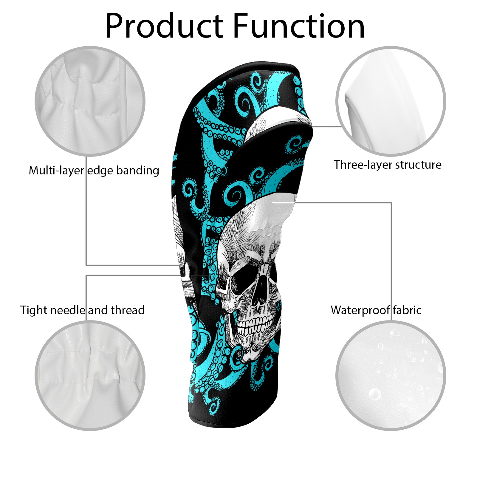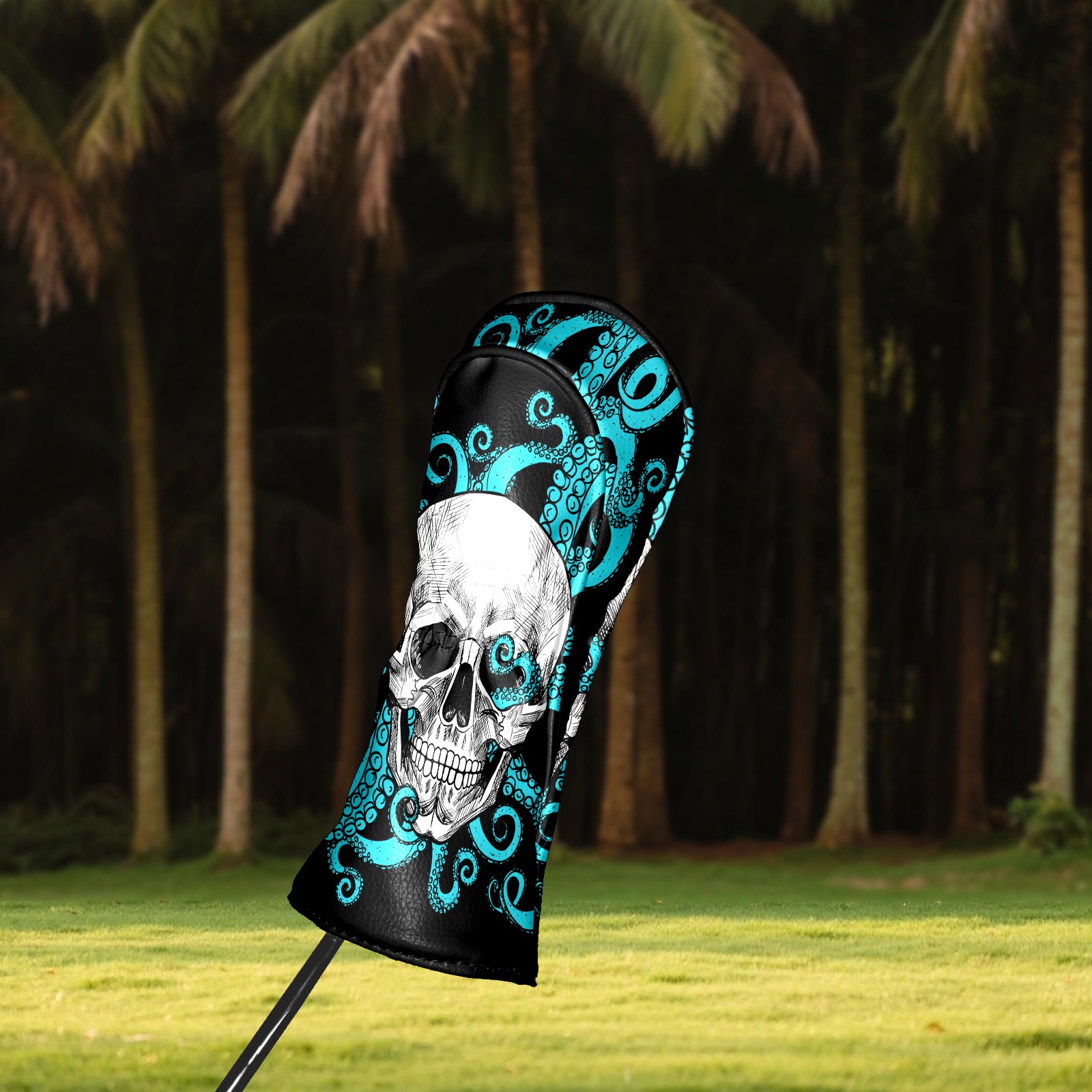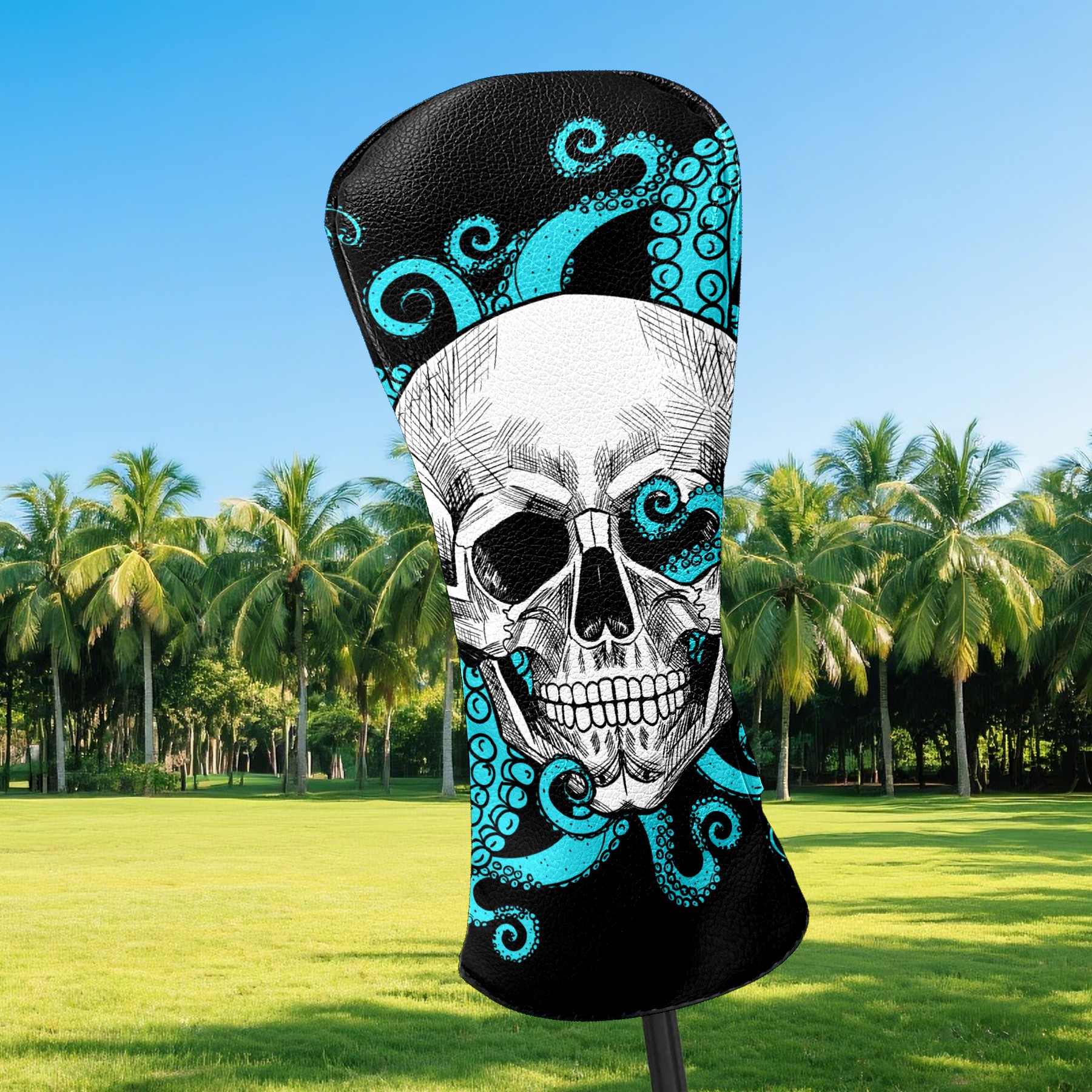 Black Golf Club Head Cover Golf Accessories Head Covers Set For Driver & Fairway Woods Skull With Octopus Black