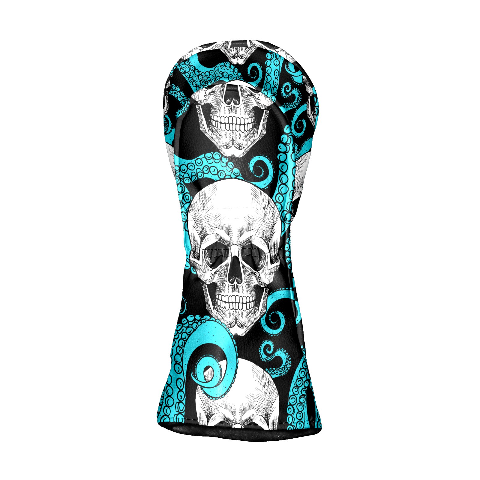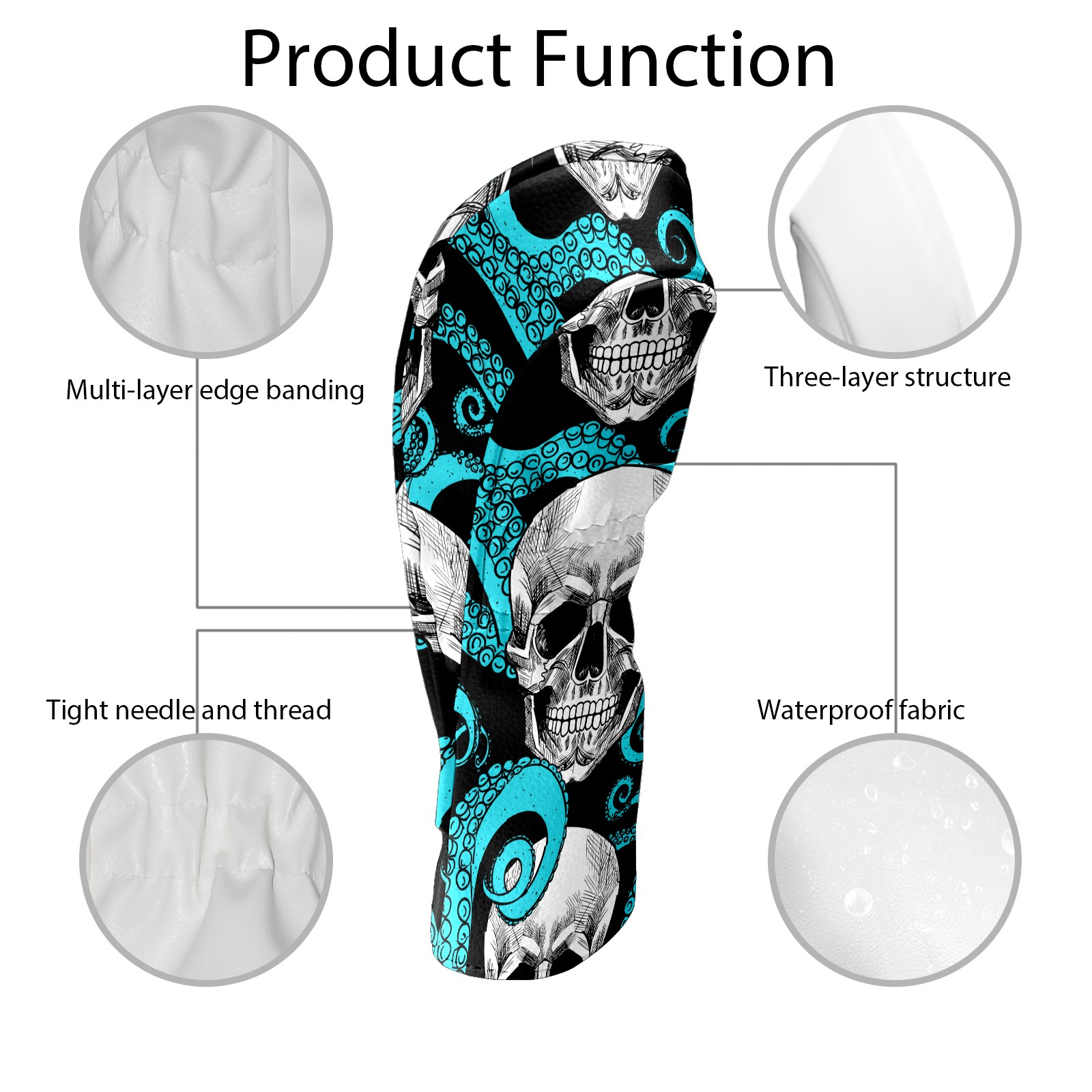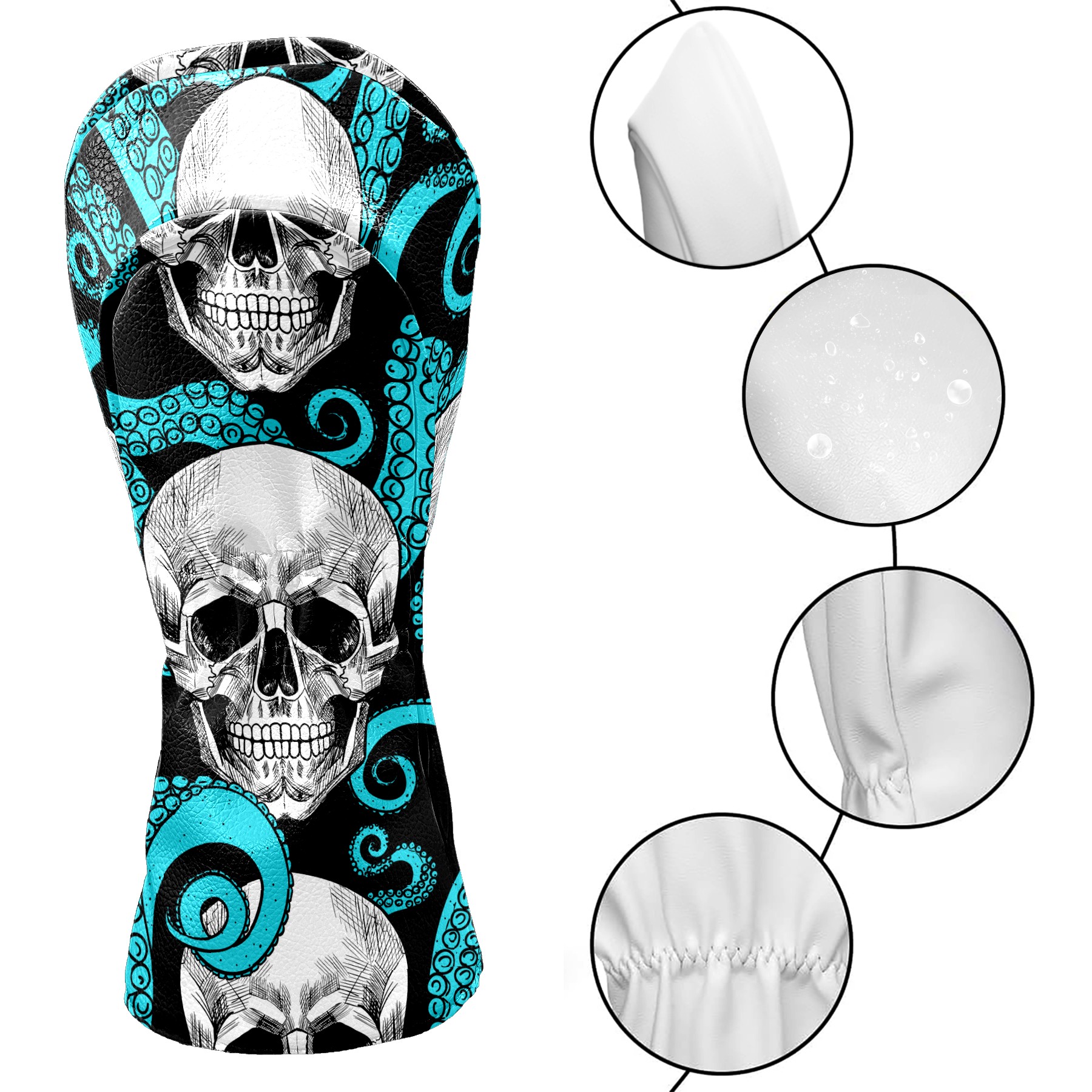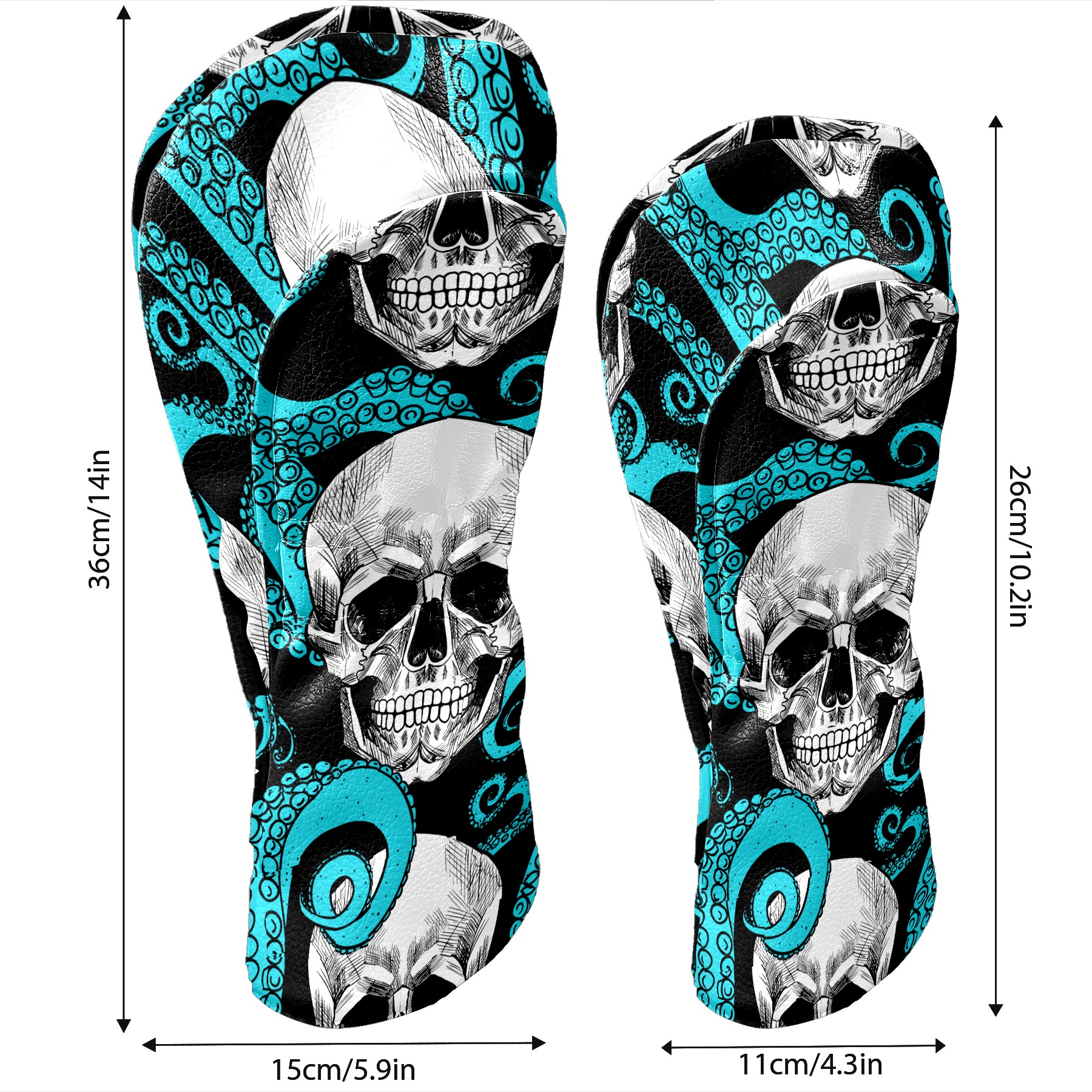 Black Golf Club Head Cover Golf Accessories Head Covers Set For Driver & Fairway Woods Skull Blue Octopus Pattern
