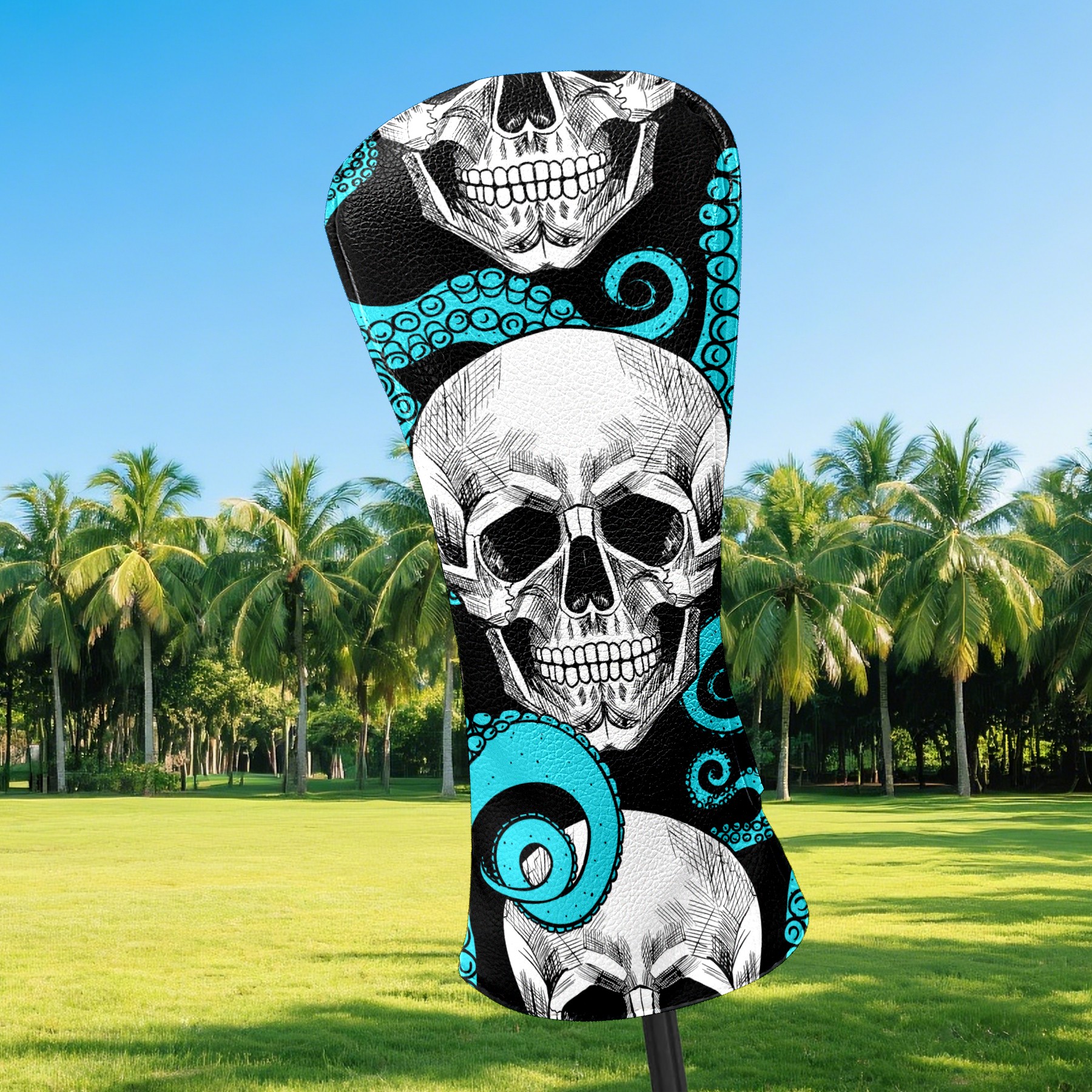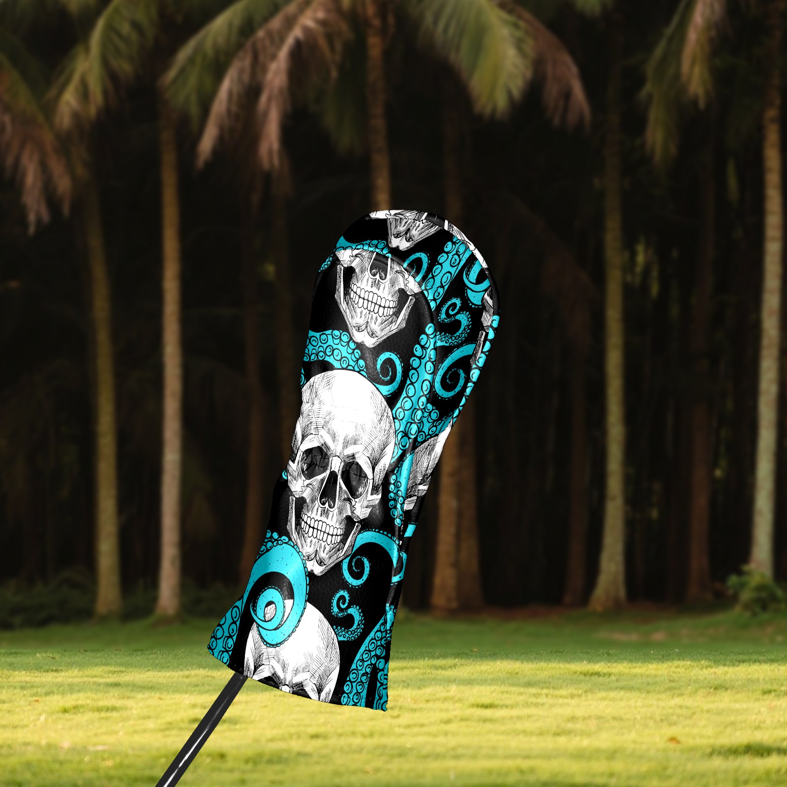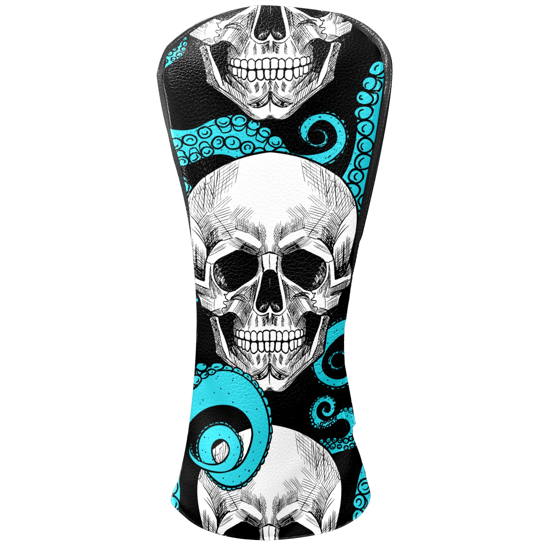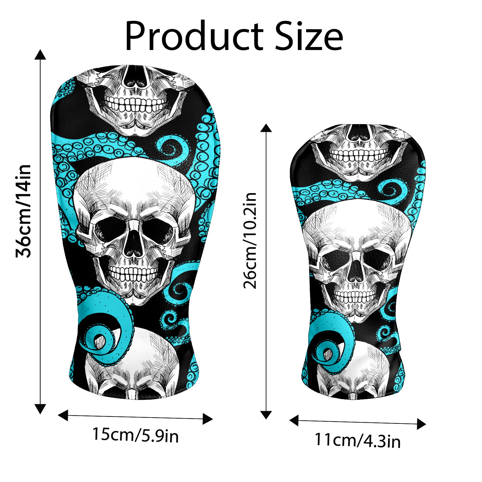 Black Golf Club Head Cover Golf Accessories Head Covers Set For Driver & Fairway Woods Skull Blue Octopus Pattern