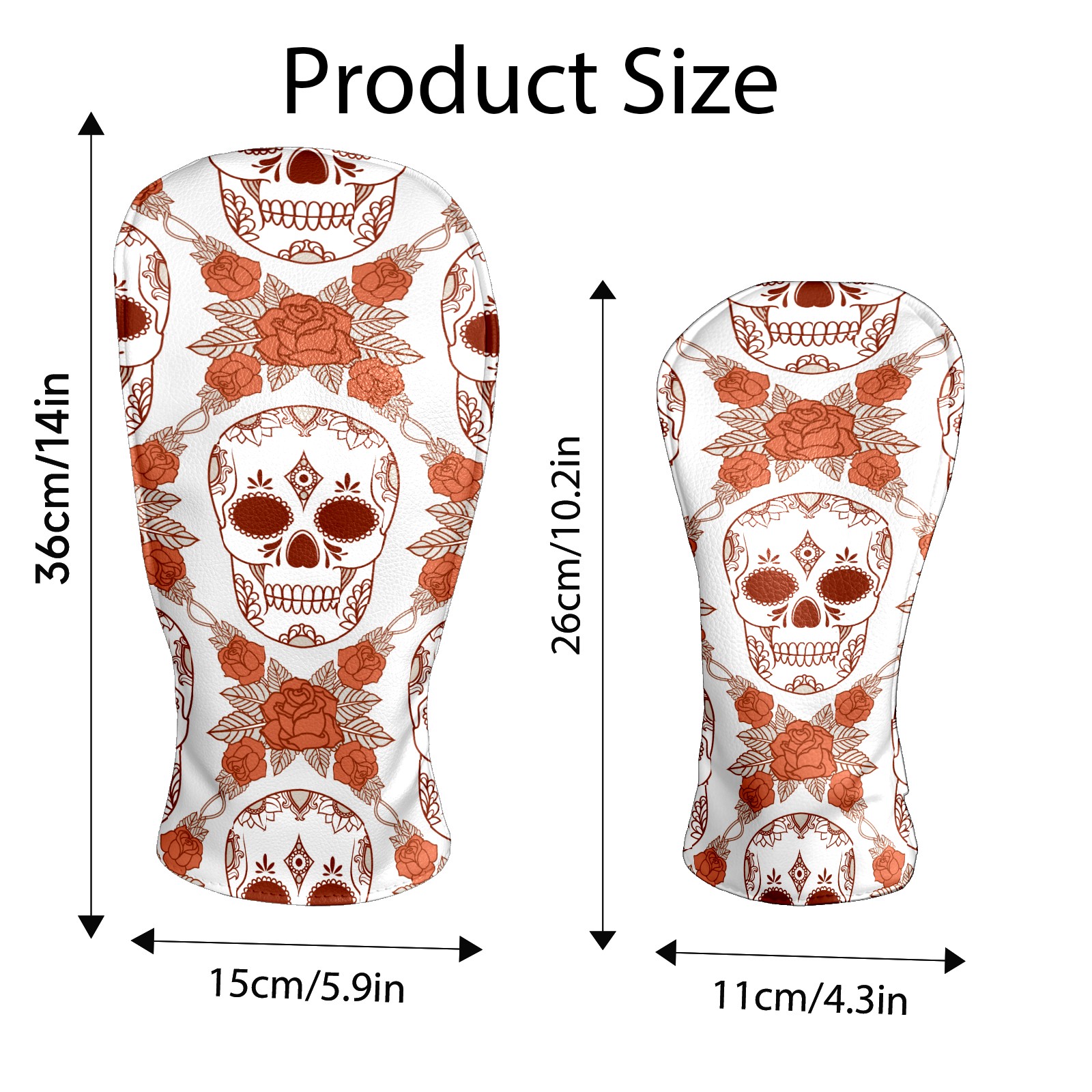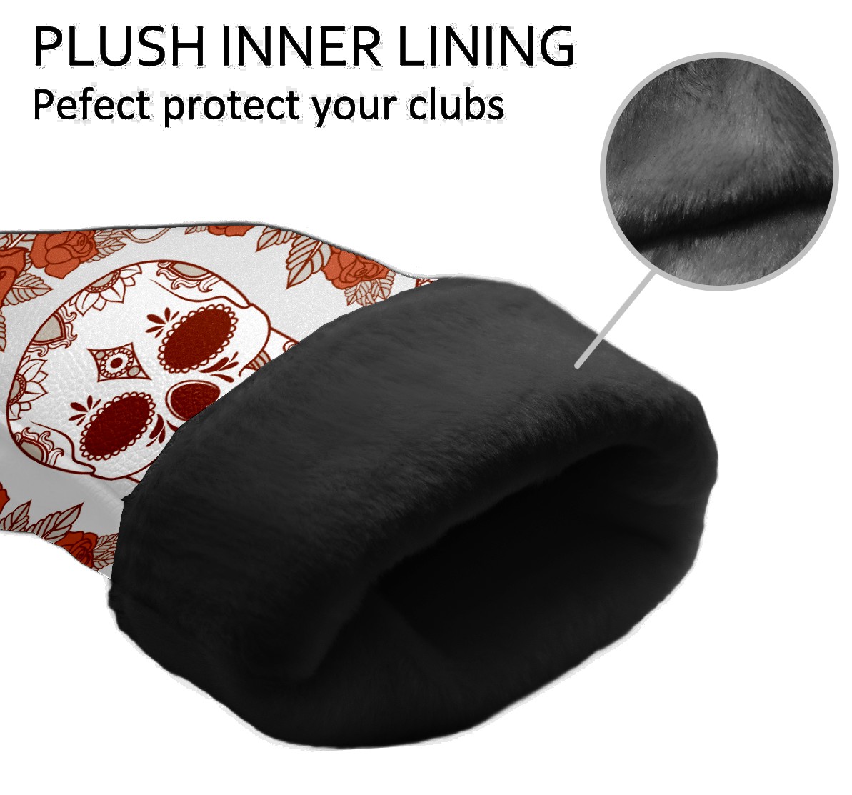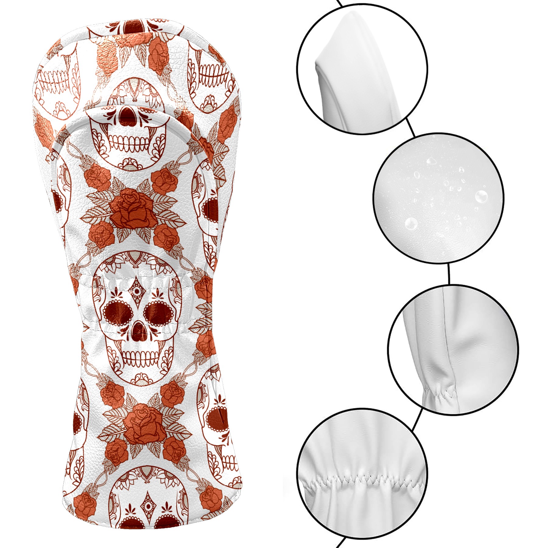 Black Golf Club Head Cover Golf Accessories Head Covers Set For Driver & Fairway Woods Retro Skull Florals Pattern