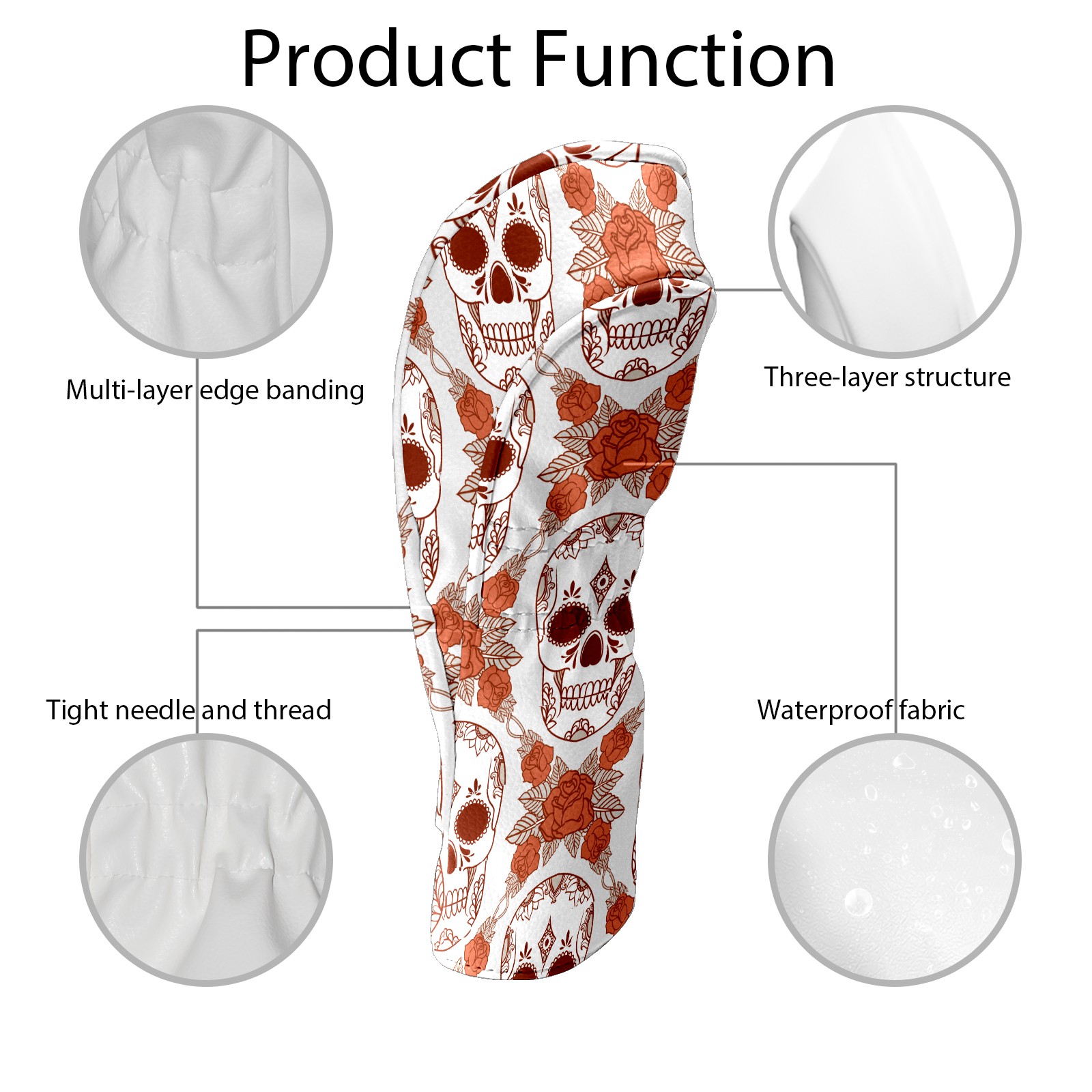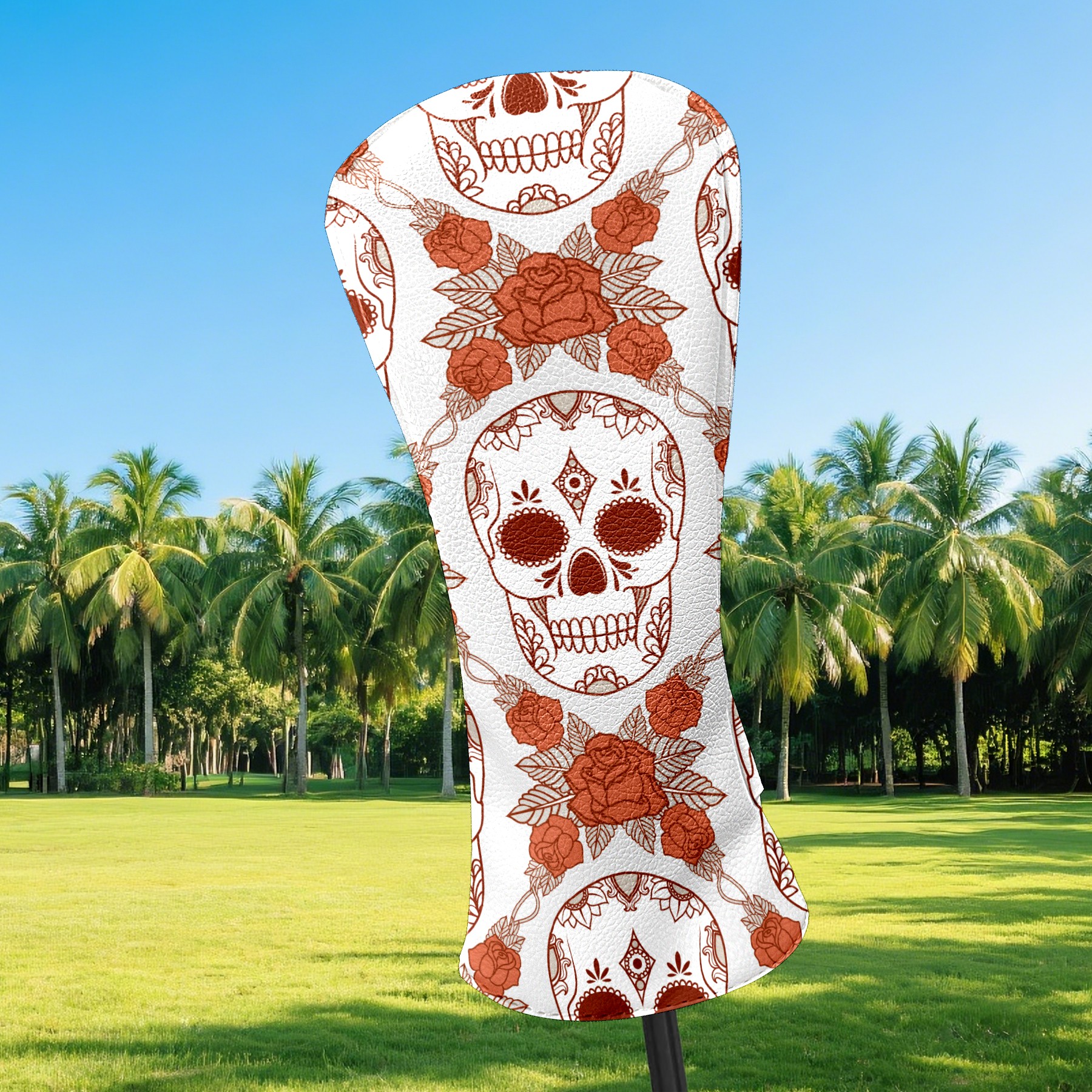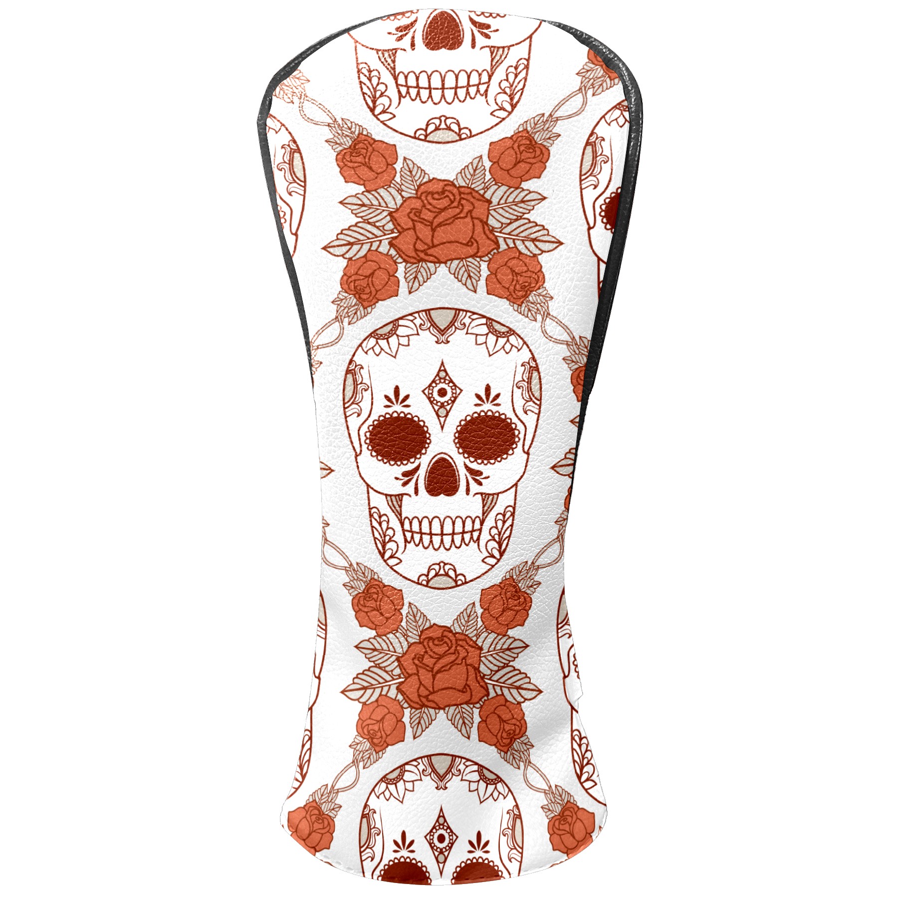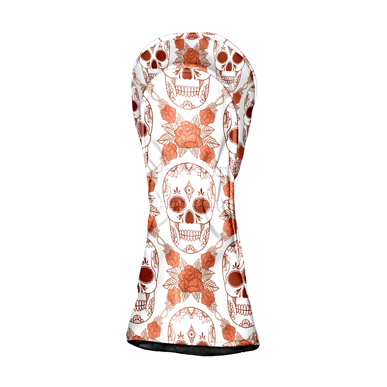 Black Golf Club Head Cover Golf Accessories Head Covers Set For Driver & Fairway Woods Retro Skull Florals Pattern