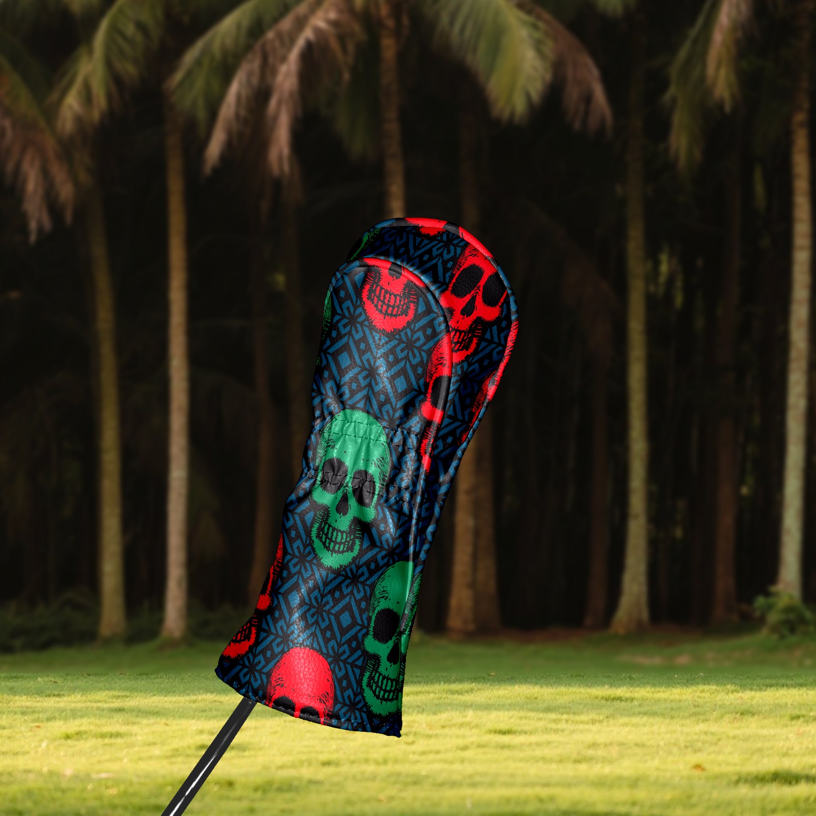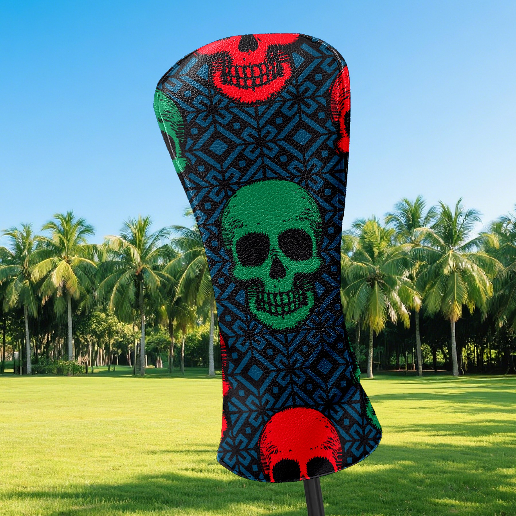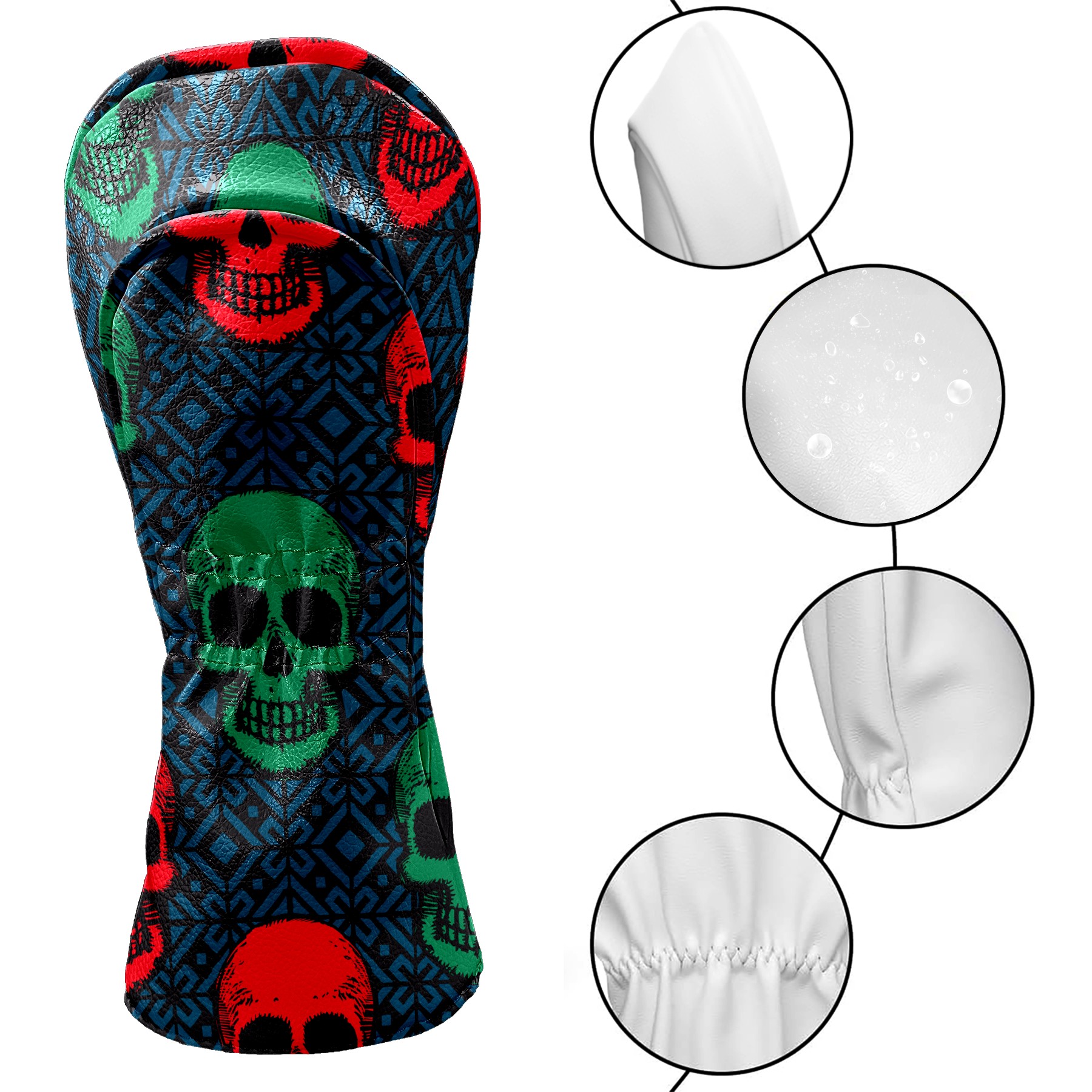 Black Golf Club Head Cover Golf Accessories Head Covers Set For Driver & Fairway Woods Green Red Retro Skull Pattern