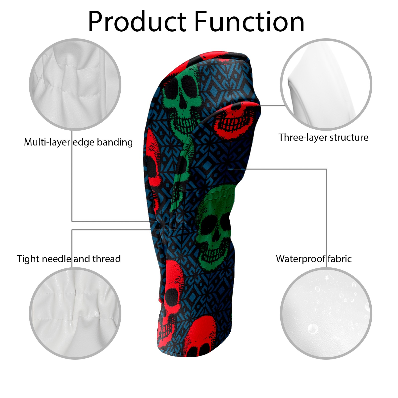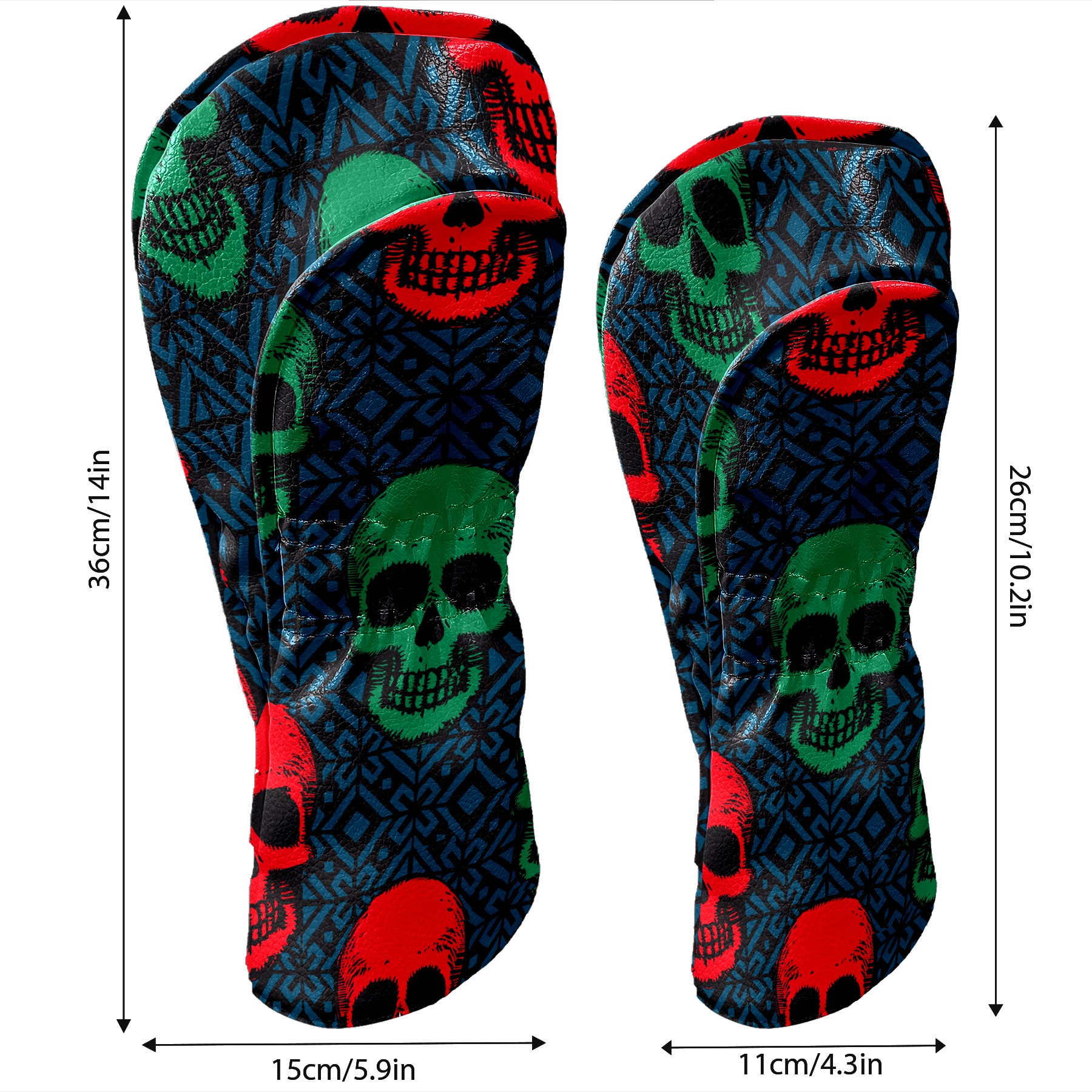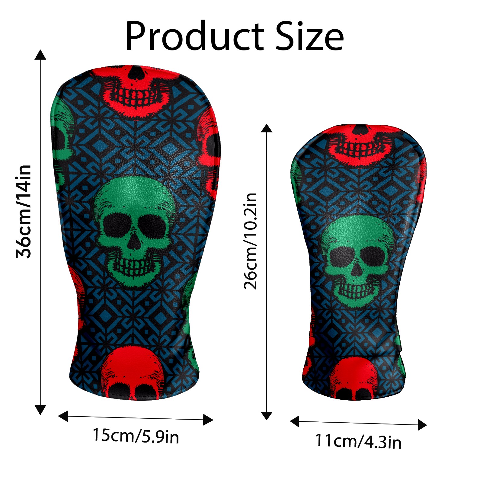 Black Golf Club Head Cover Golf Accessories Head Covers Set For Driver & Fairway Woods Green Red Retro Skull Pattern
