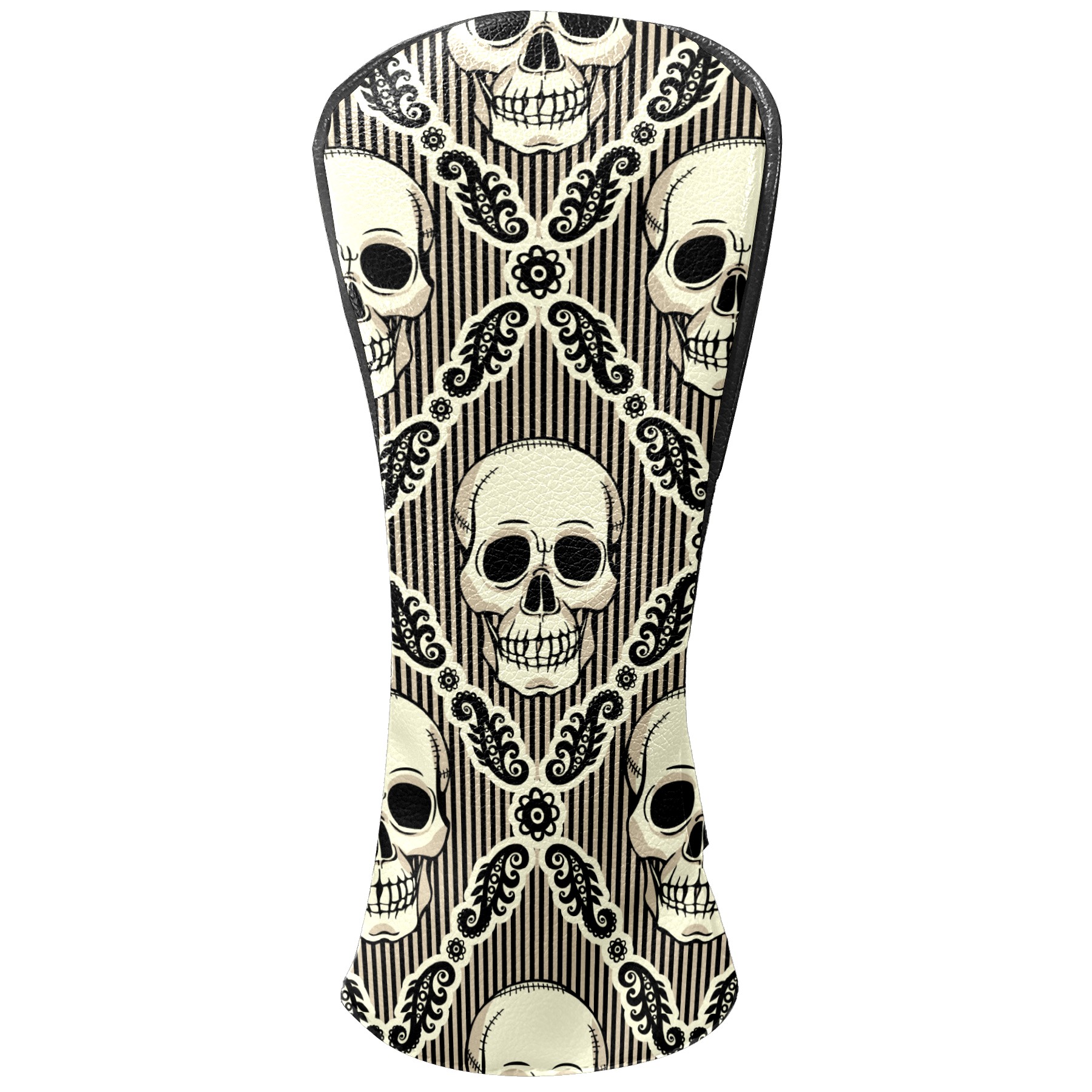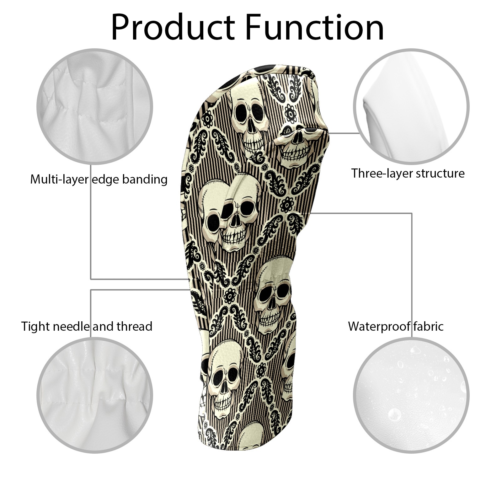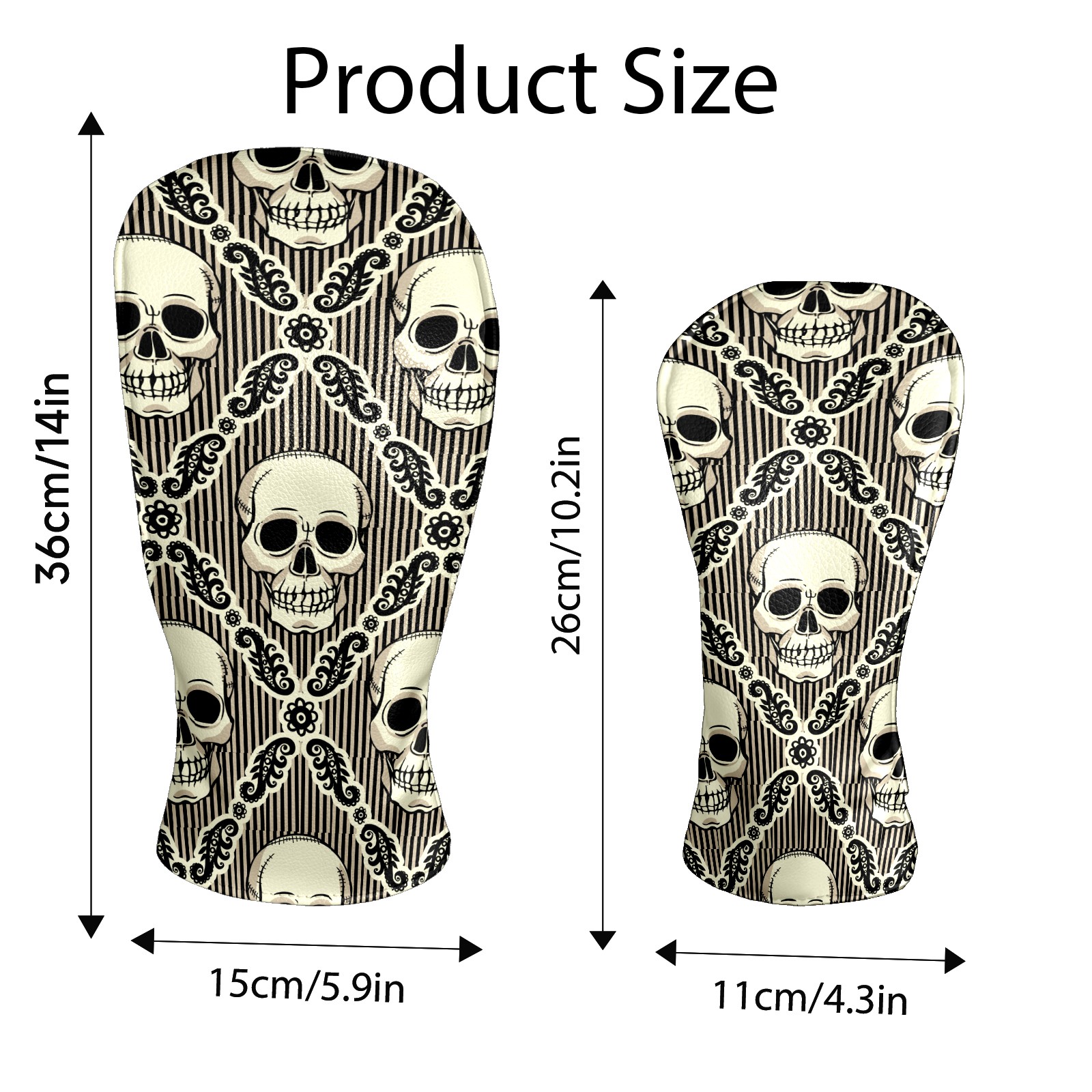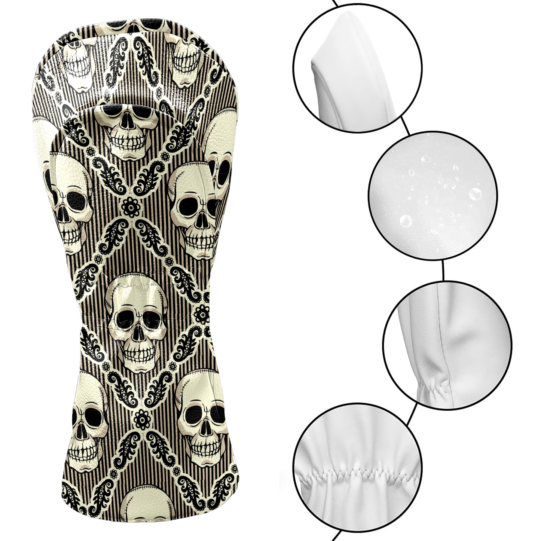 Black Golf Club Head Cover Golf Accessories Head Covers Set For Driver & Fairway Woods Funny Vintage Skull Pattern