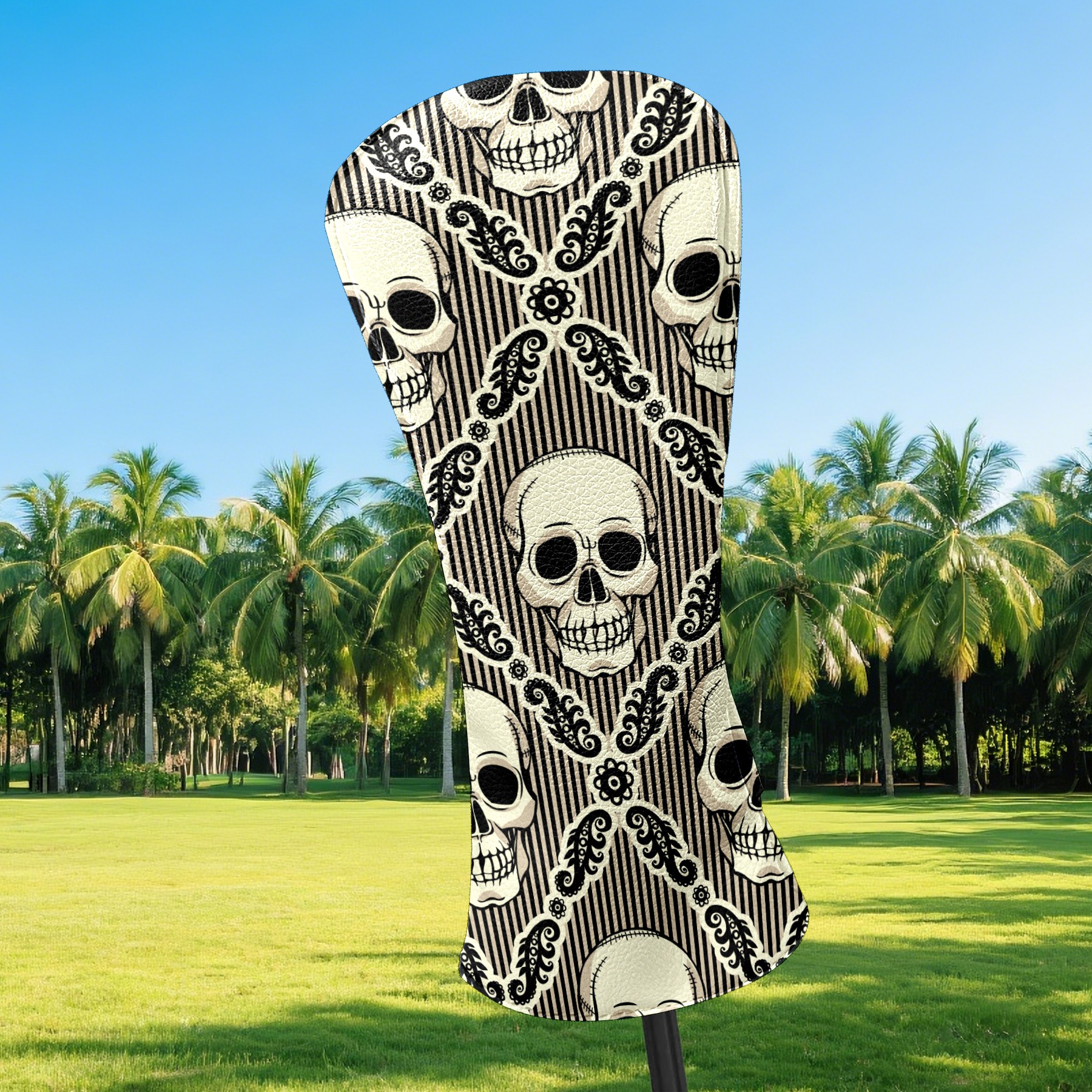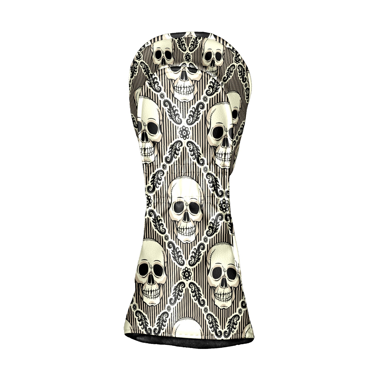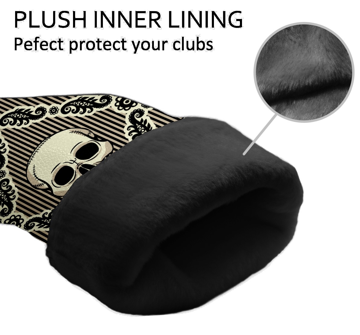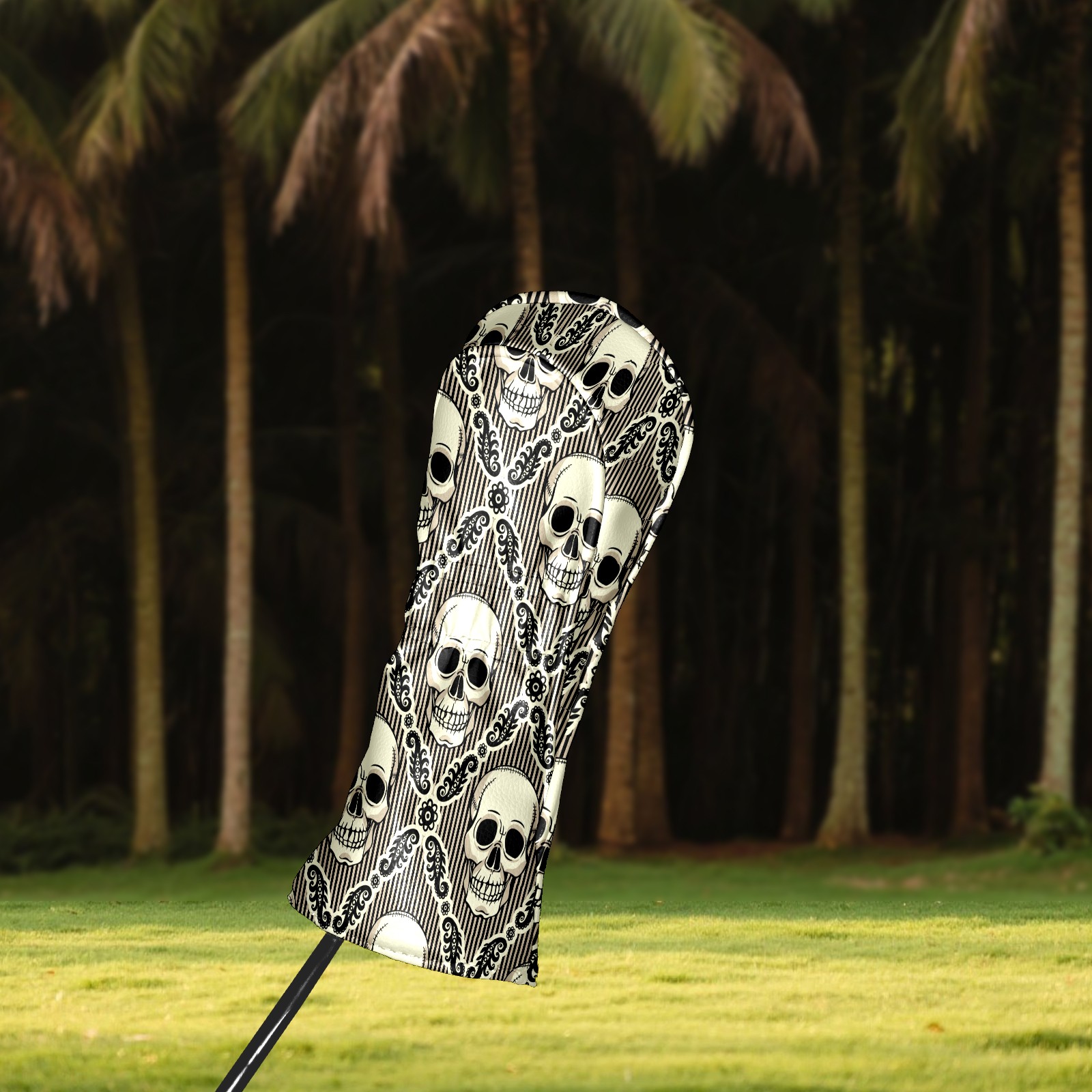 Black Golf Club Head Cover Golf Accessories Head Covers Set For Driver & Fairway Woods Funny Vintage Skull Pattern