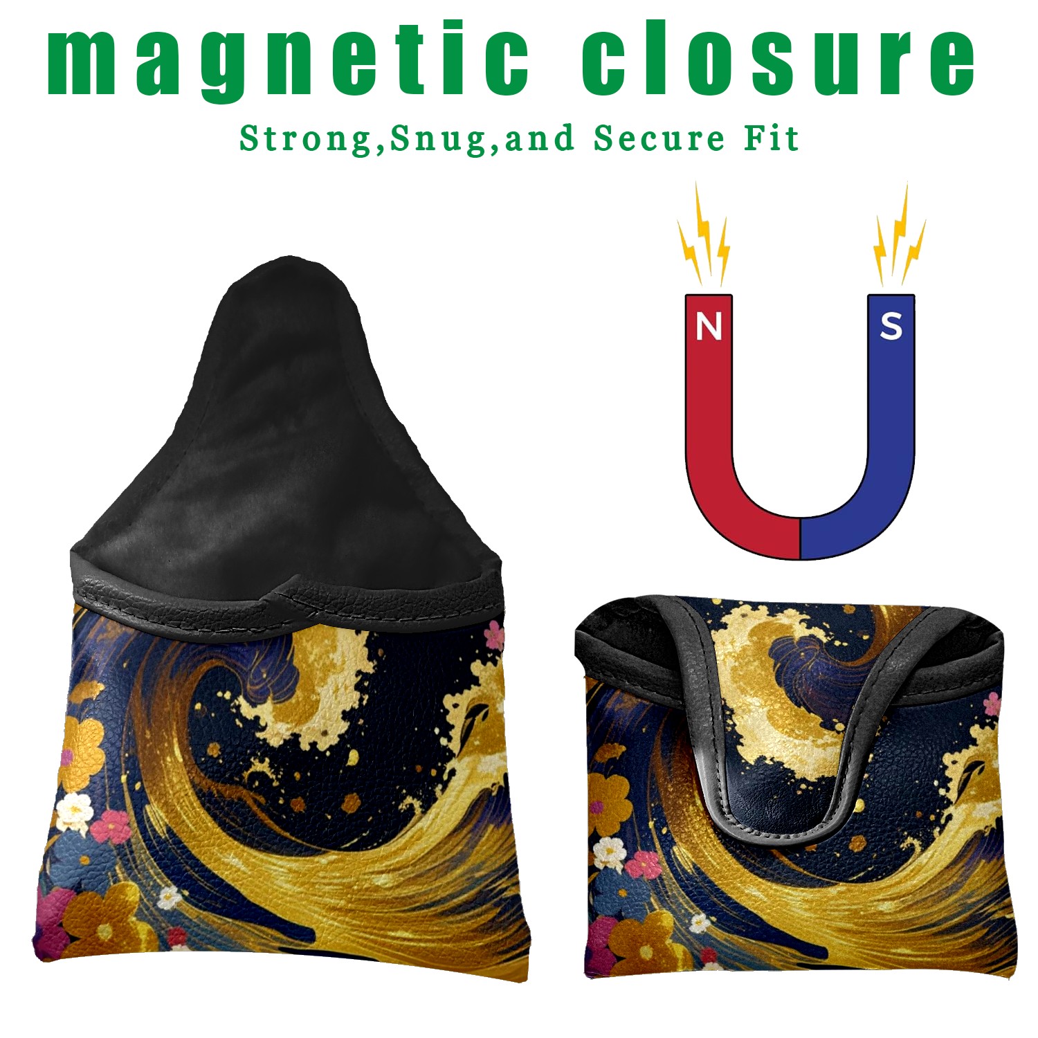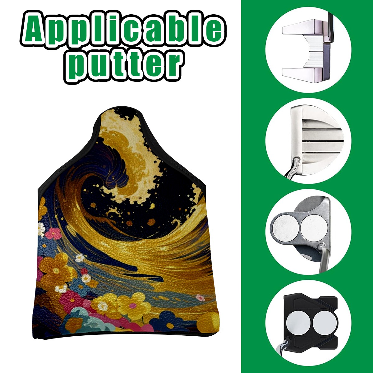 Protect your mallet putter with our durable, stylish cover made from waterproof PU leather that resists stains and wear. Each features a unique digital print design for personal flair.The soft velvet lining prevents scratches, while the elastic opening ensures a secure fit (13x14cm/5.1x5.5in). Easy to clean - just wipe with a damp cloth.Perfect as a golf gift or personal use, this cover combines protection and style for your prized putter.