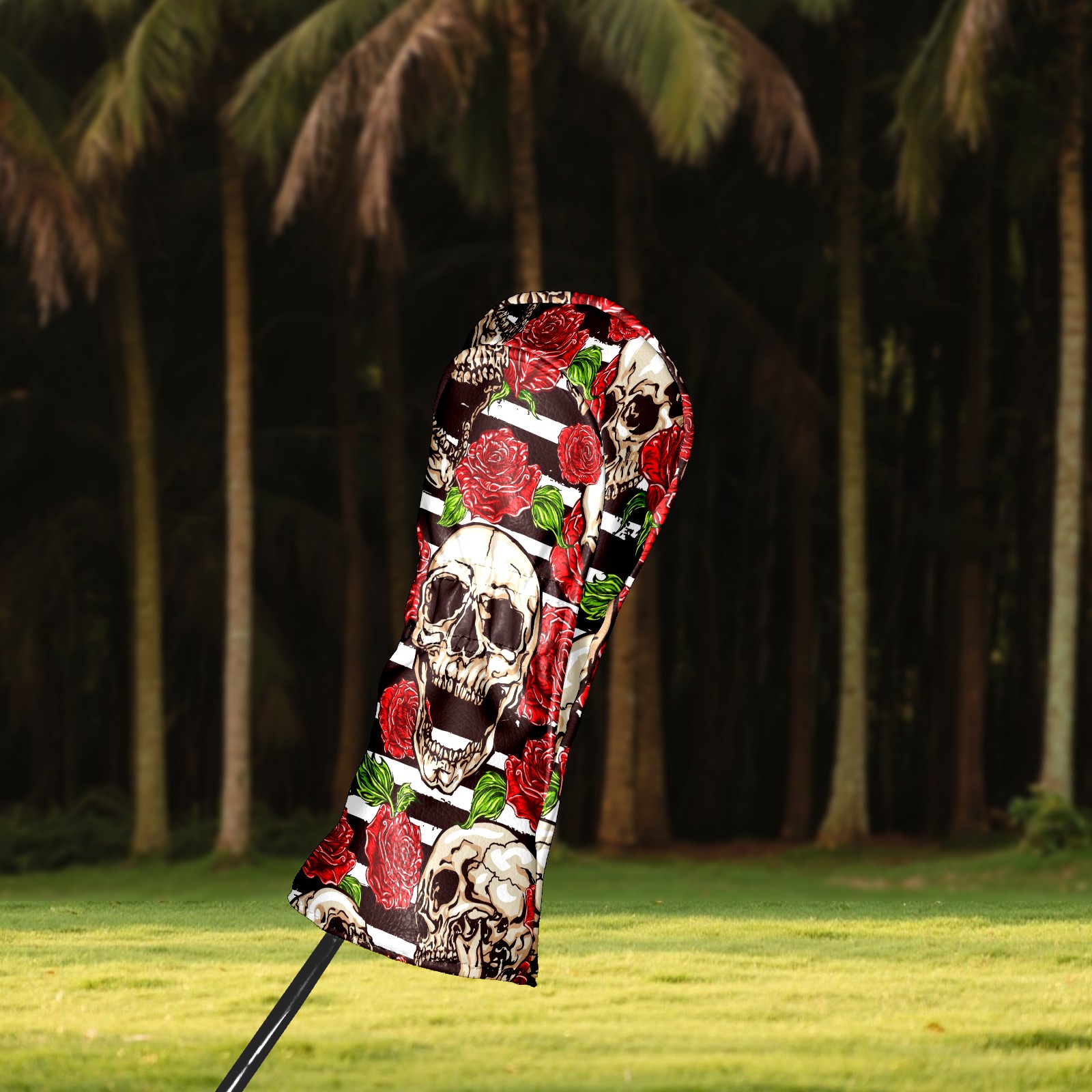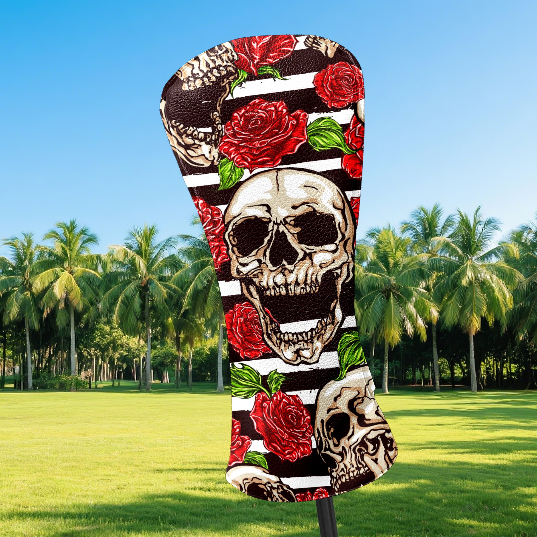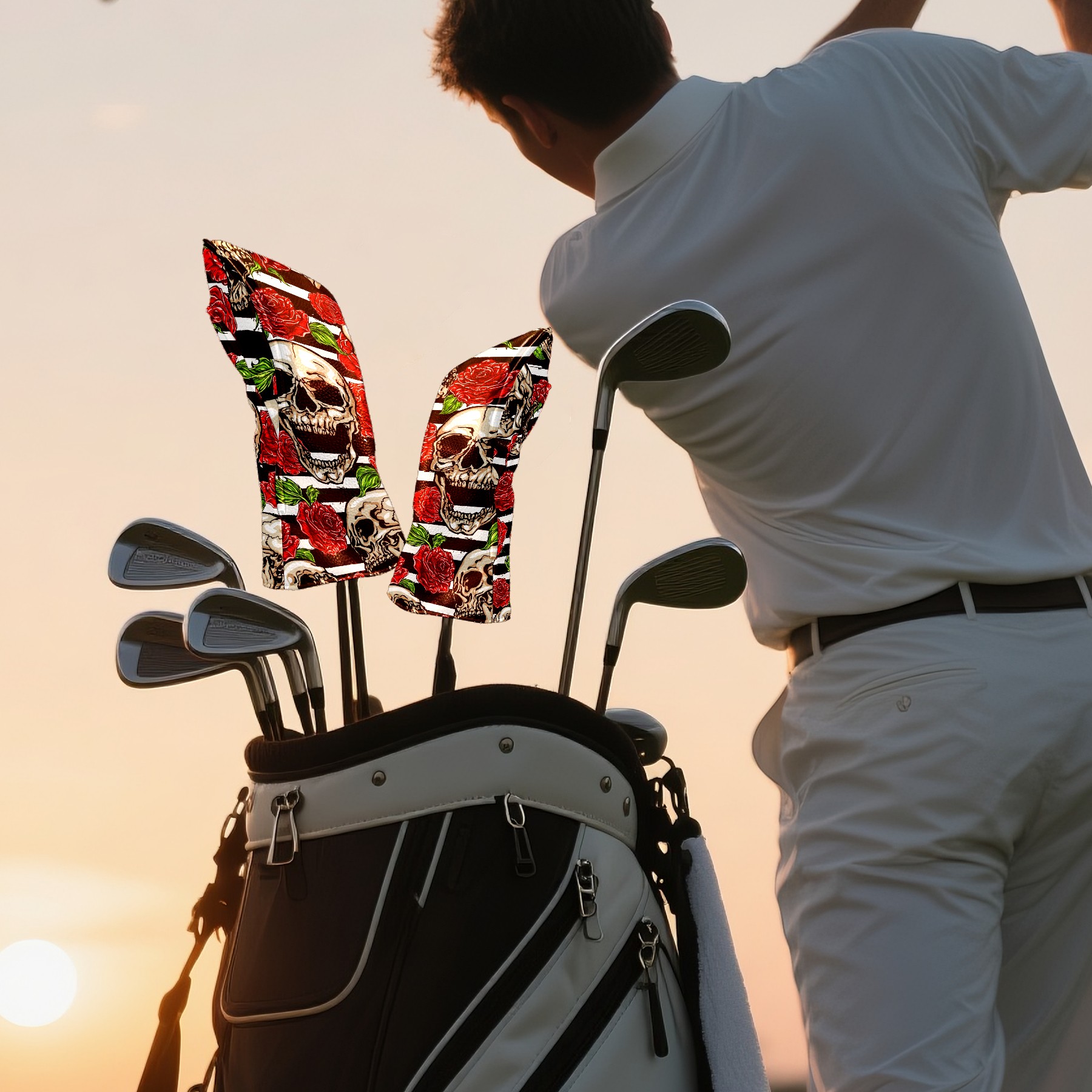 Black Golf Club Head Cover Golf Accessories Head Covers Set For Driver & Fairway Woods Funny Skull With Rose Pattern