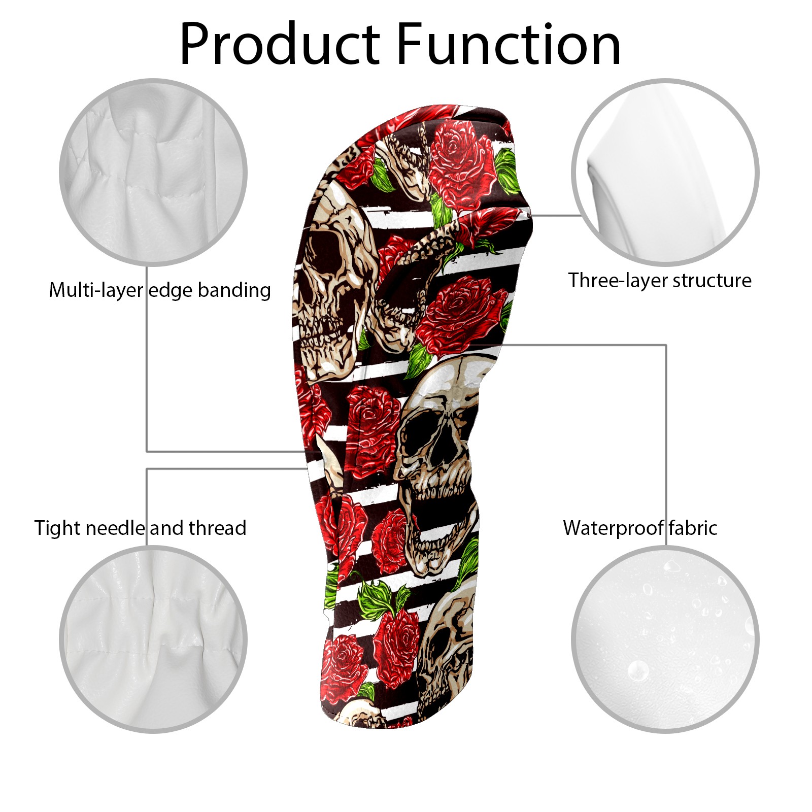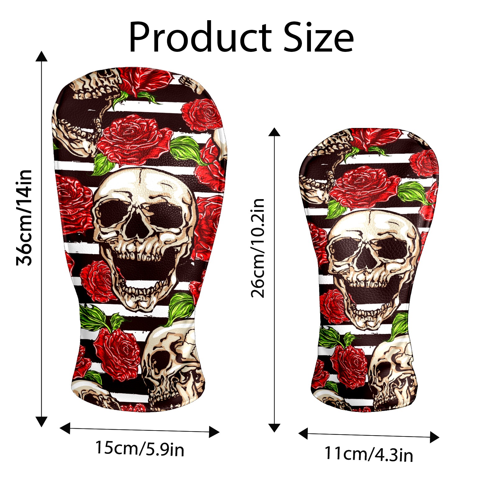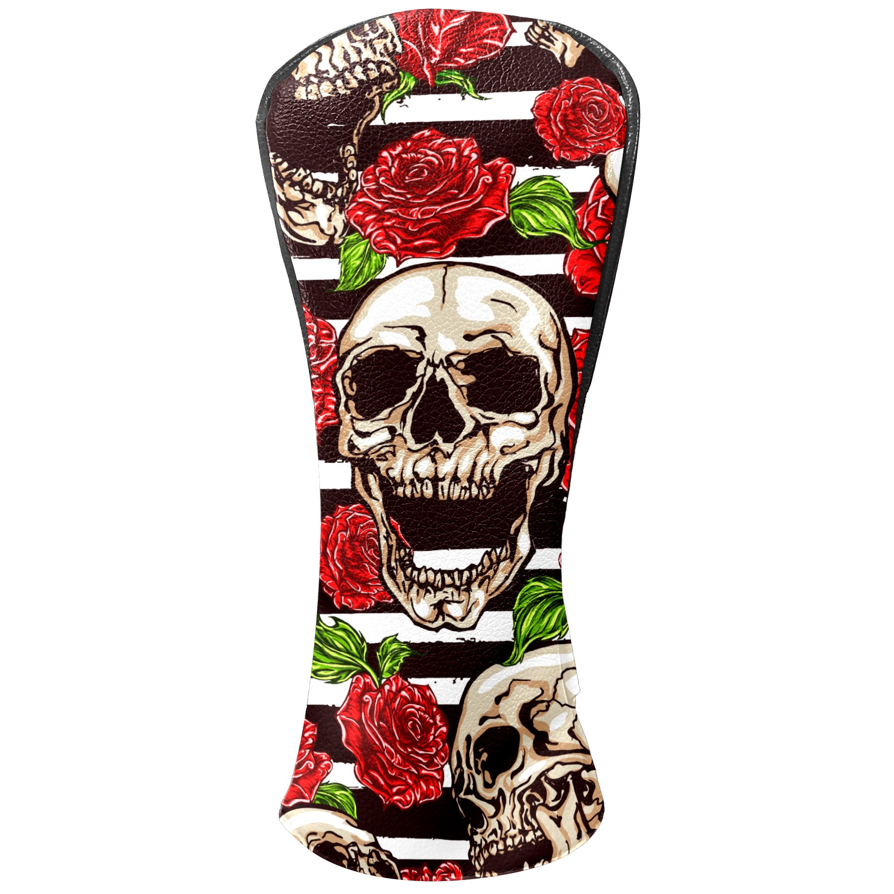Black Golf Club Head Cover Golf Accessories Head Covers Set For Driver & Fairway Woods Funny Skull With Rose Pattern
