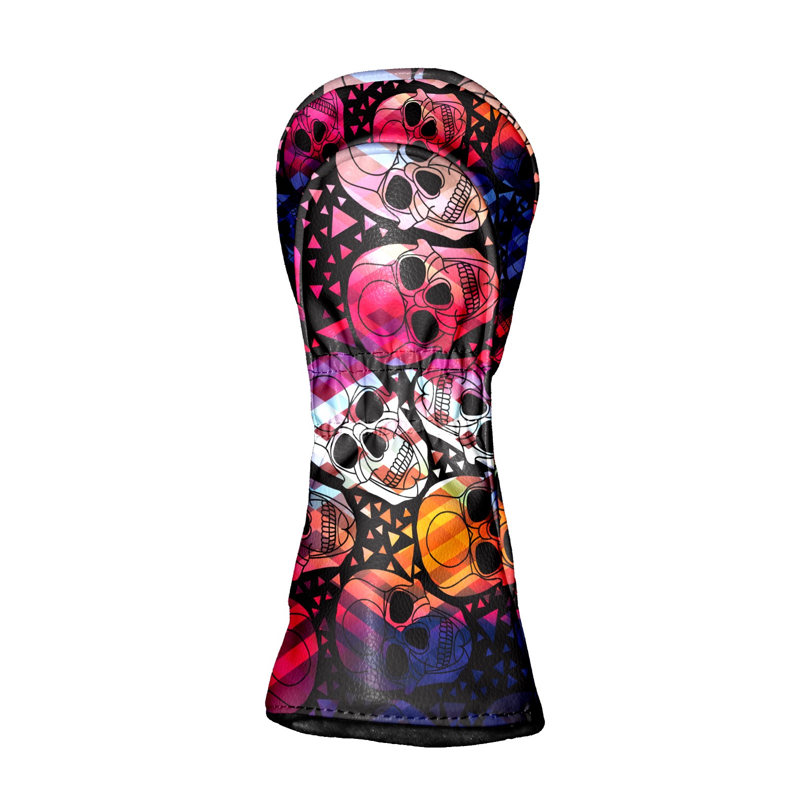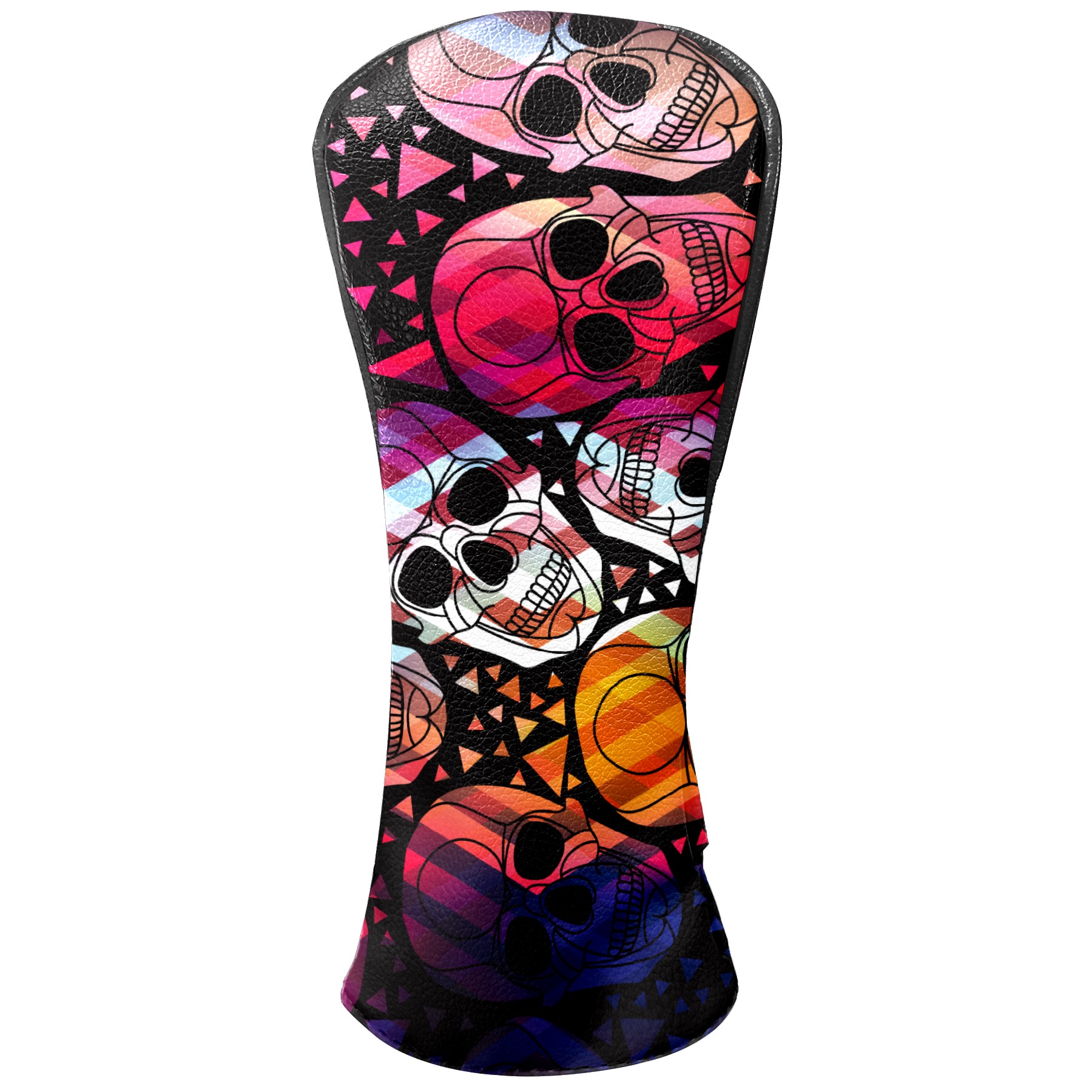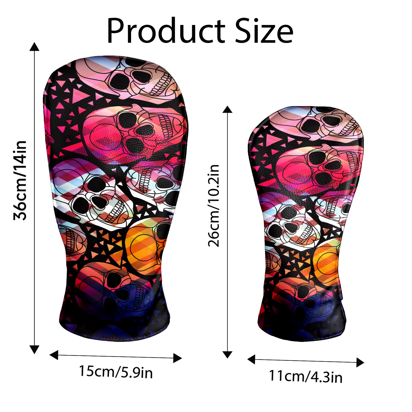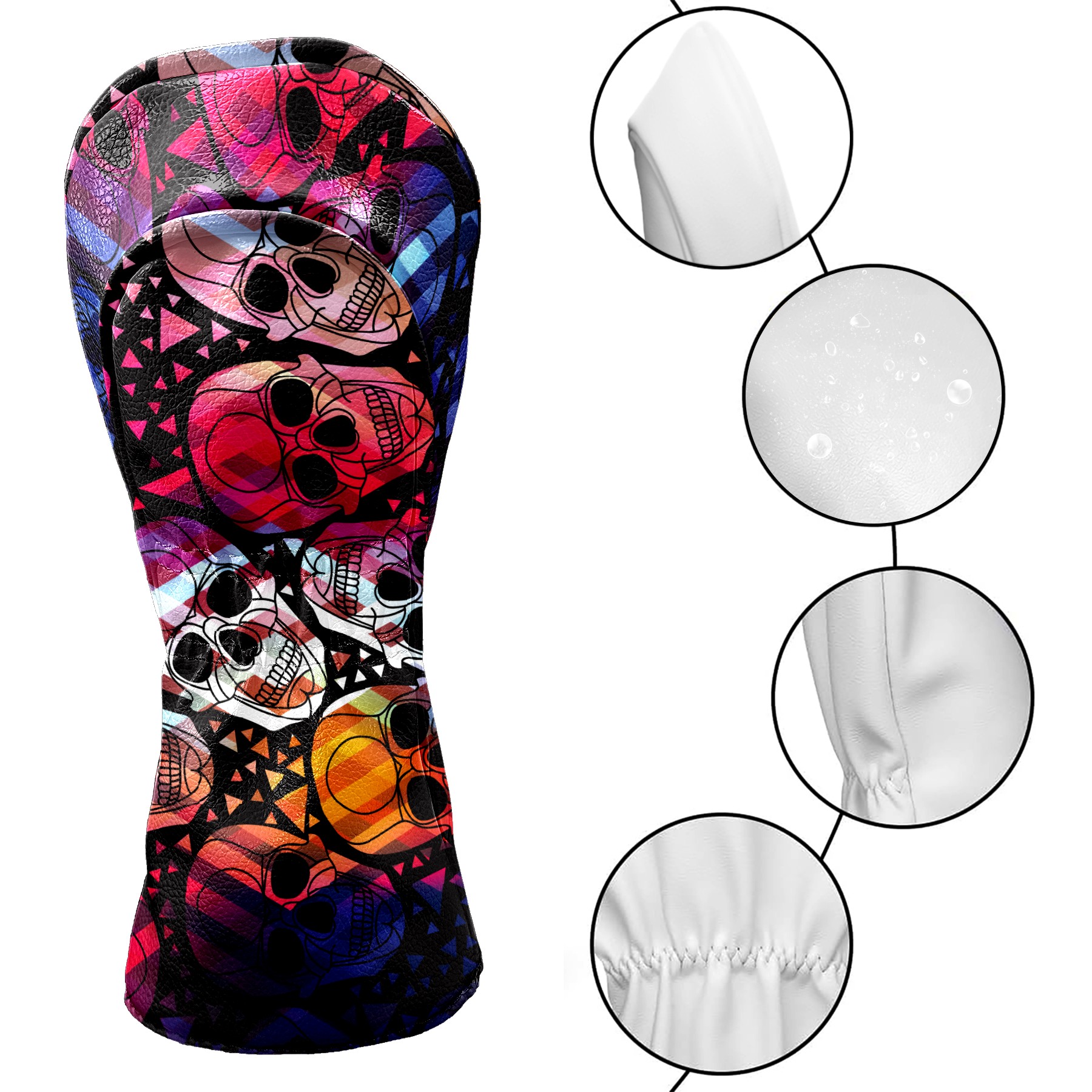Black Golf Club Head Cover Golf Accessories Head Covers Set For Driver & Fairway Woods Colorful Skull Pattern