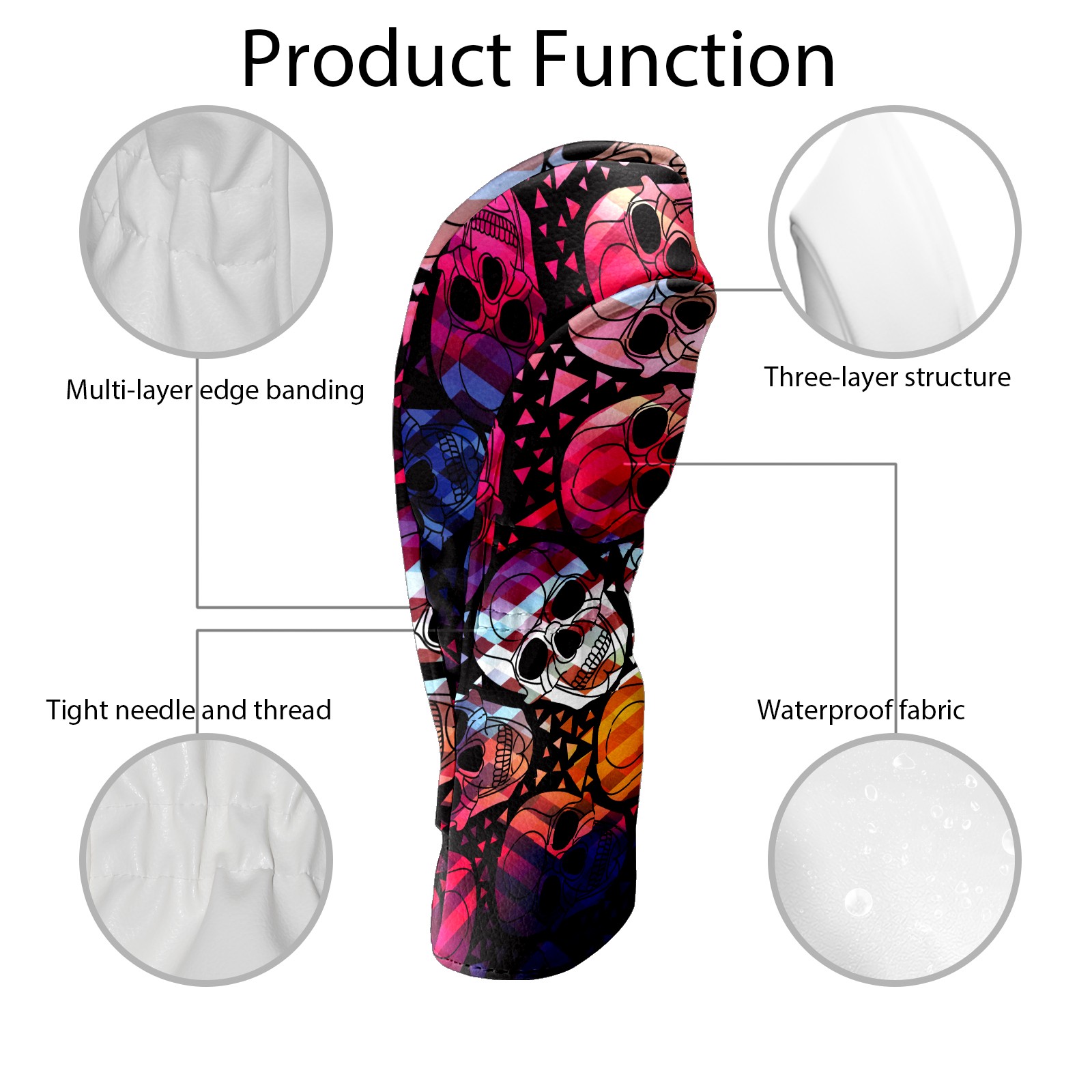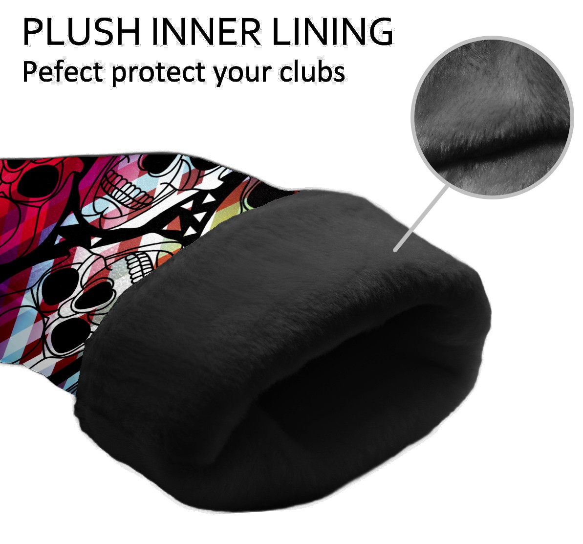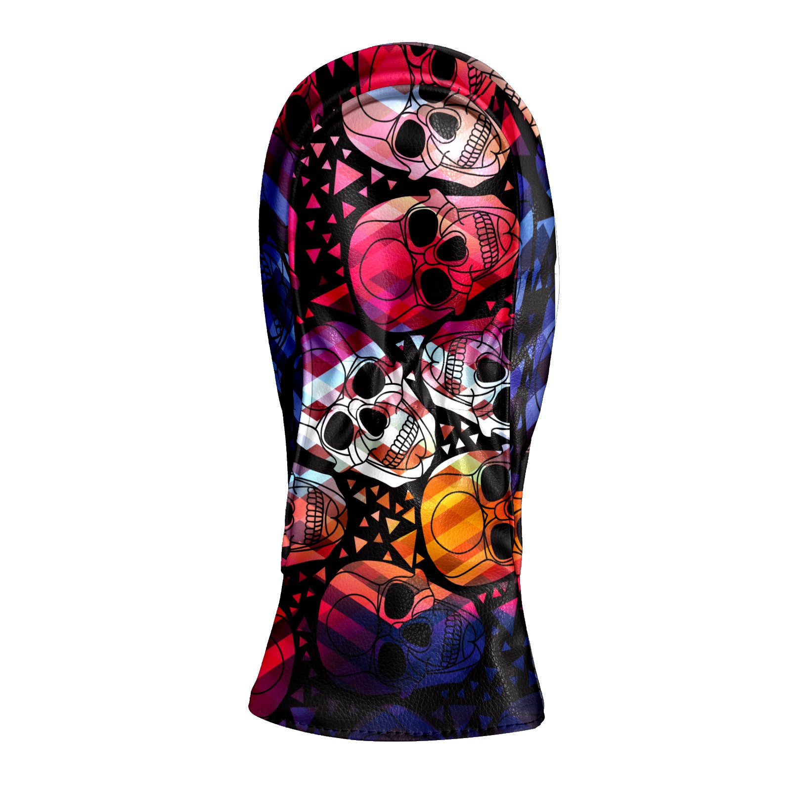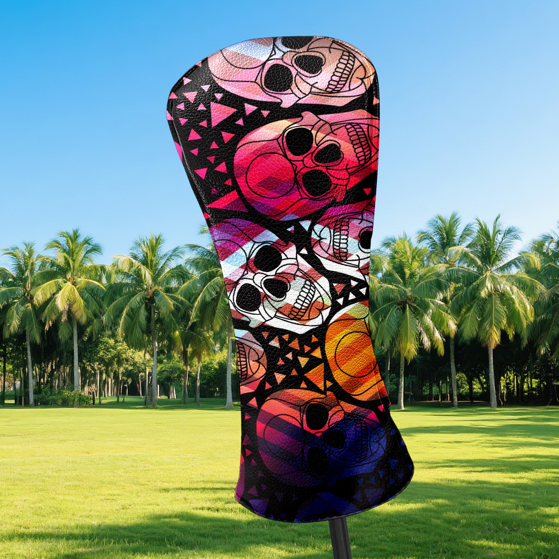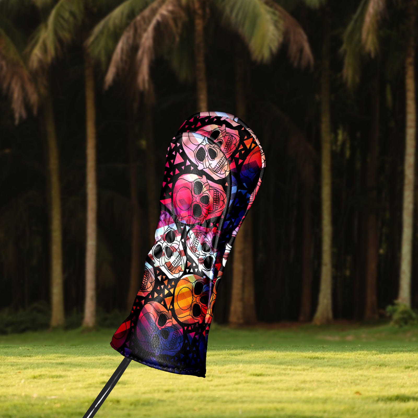 Black Golf Club Head Cover Golf Accessories Head Covers Set For Driver & Fairway Woods Colorful Skull Pattern