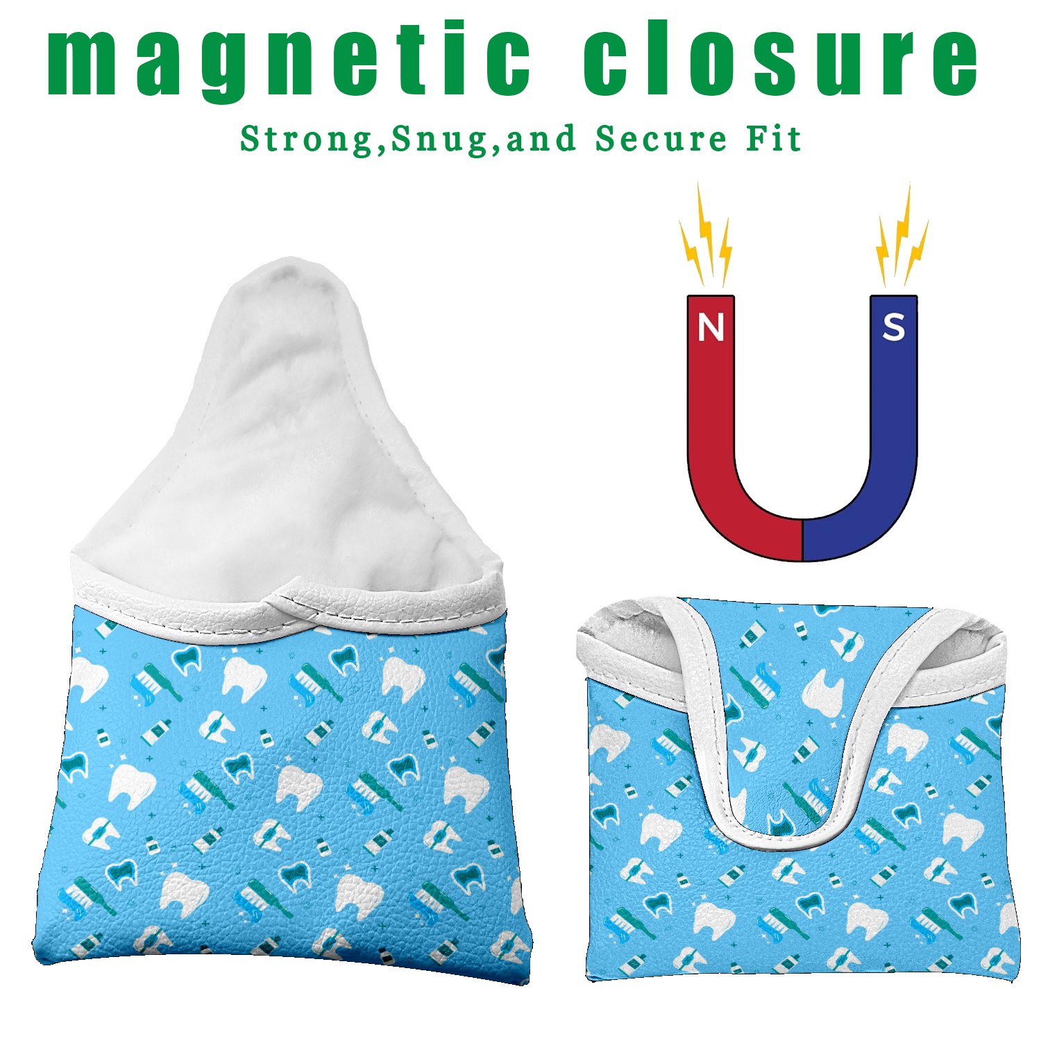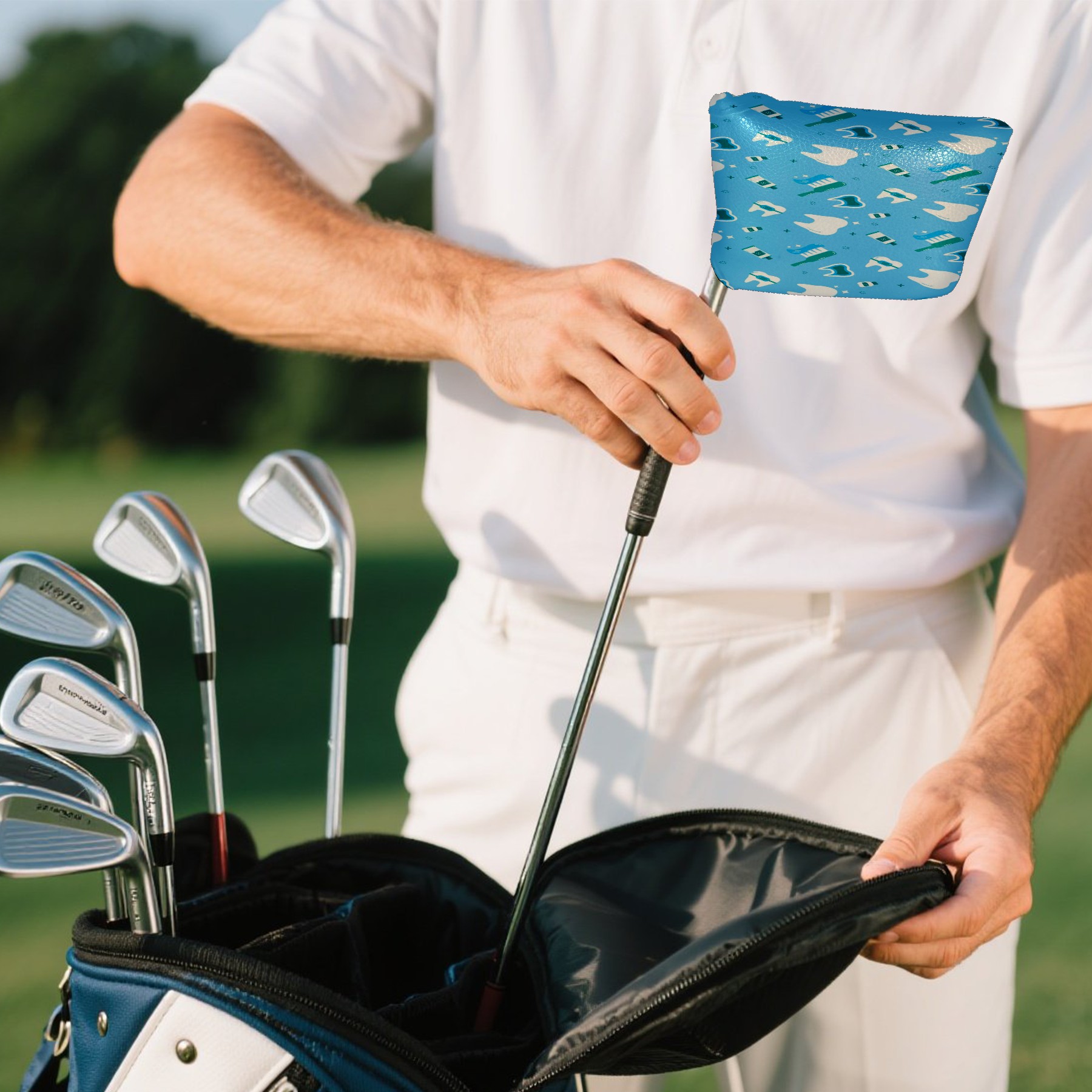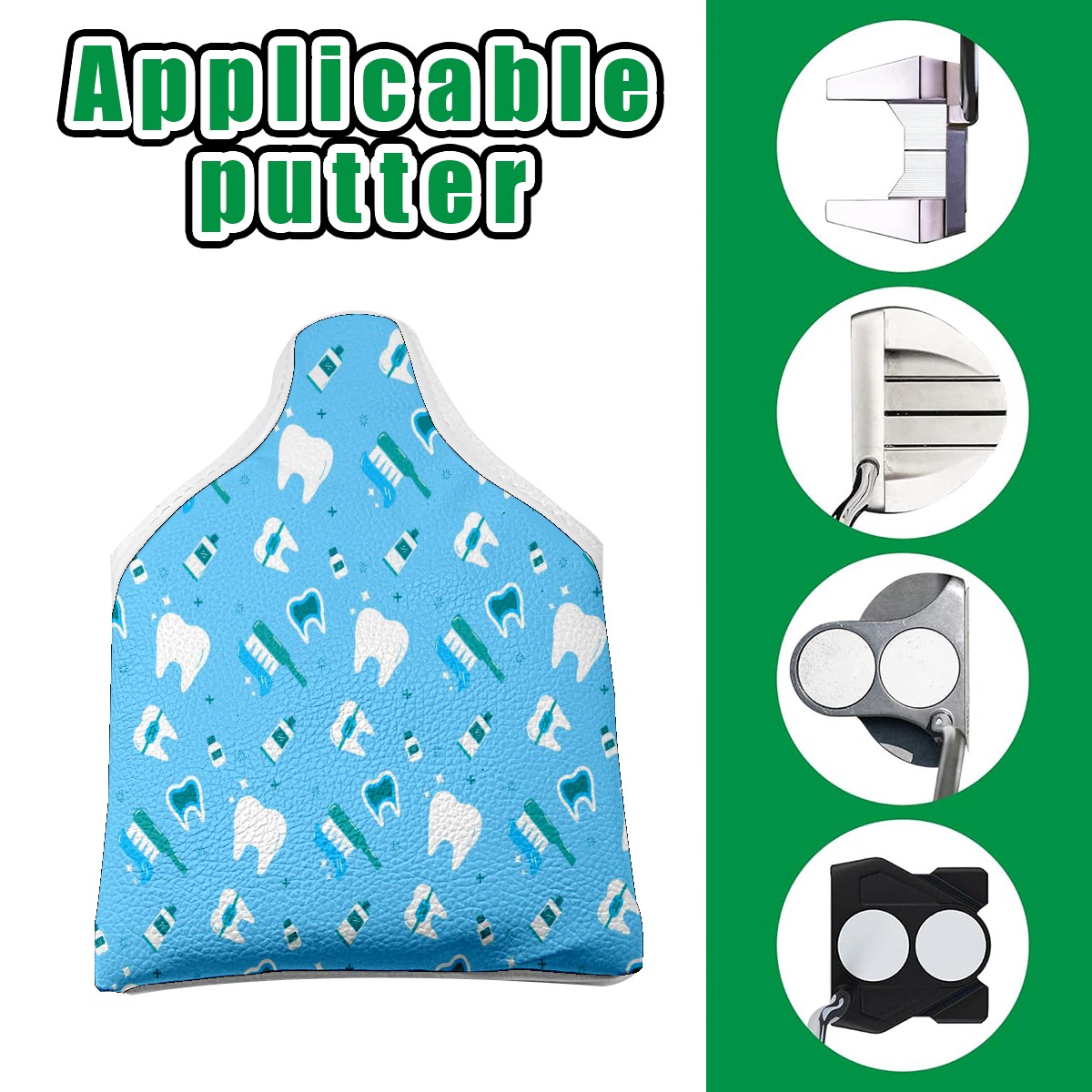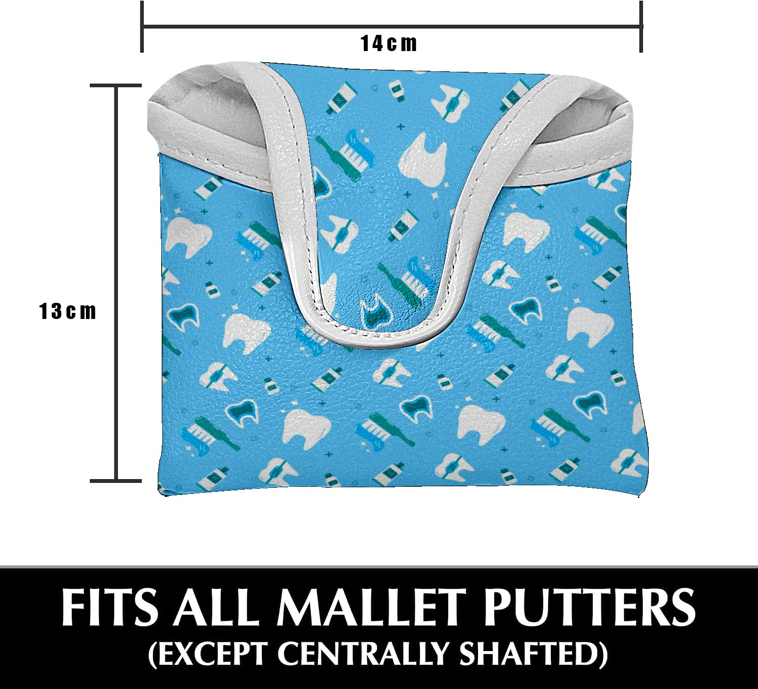 Small Mallet Putter Cover, PU Leather and Waterproof Mallet Putter Cover, Golf Club Protective Case Fits for All Brand Putter Golf Clubs for Men Women Cartoon Cute White Teeth