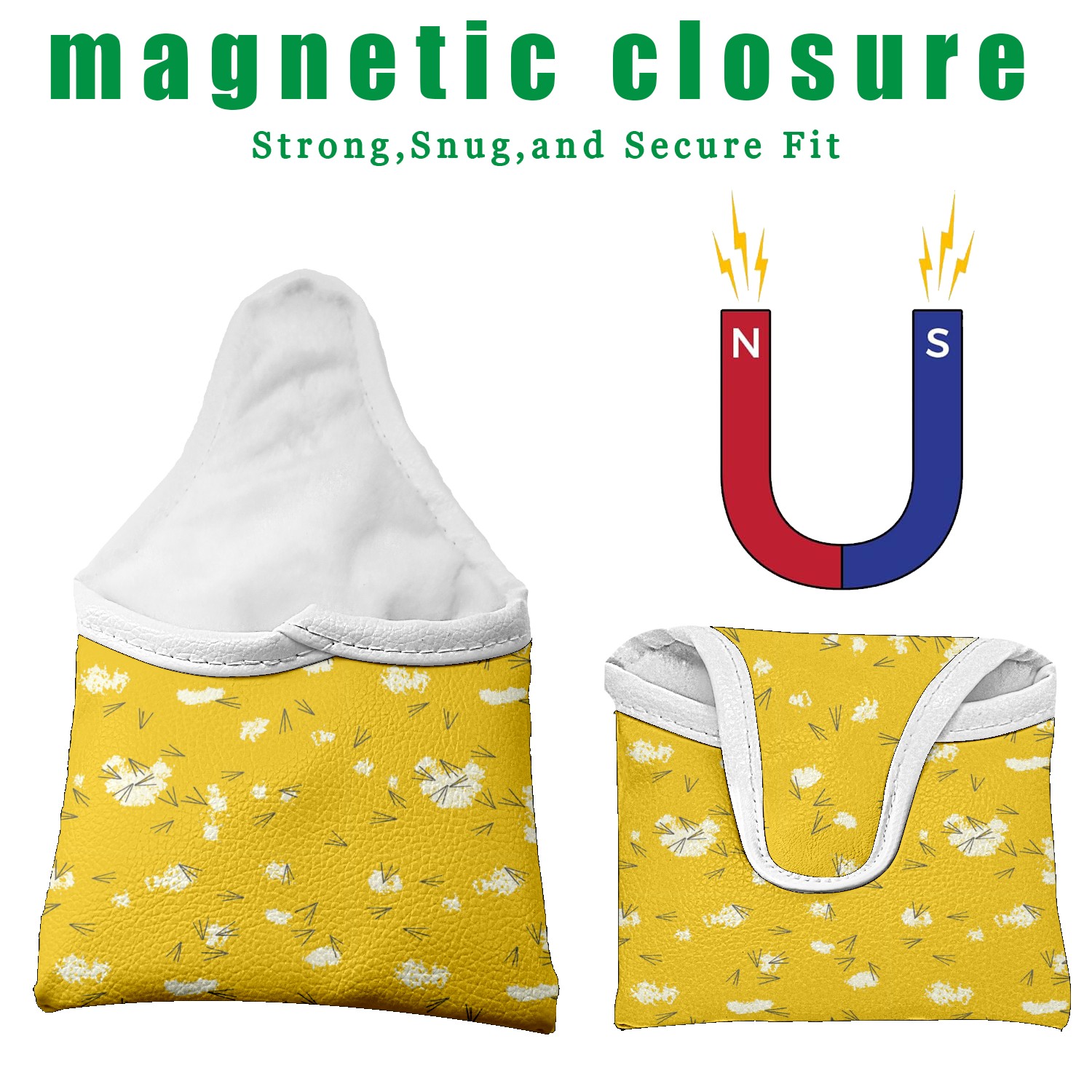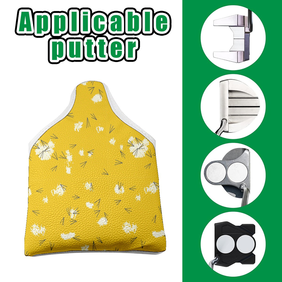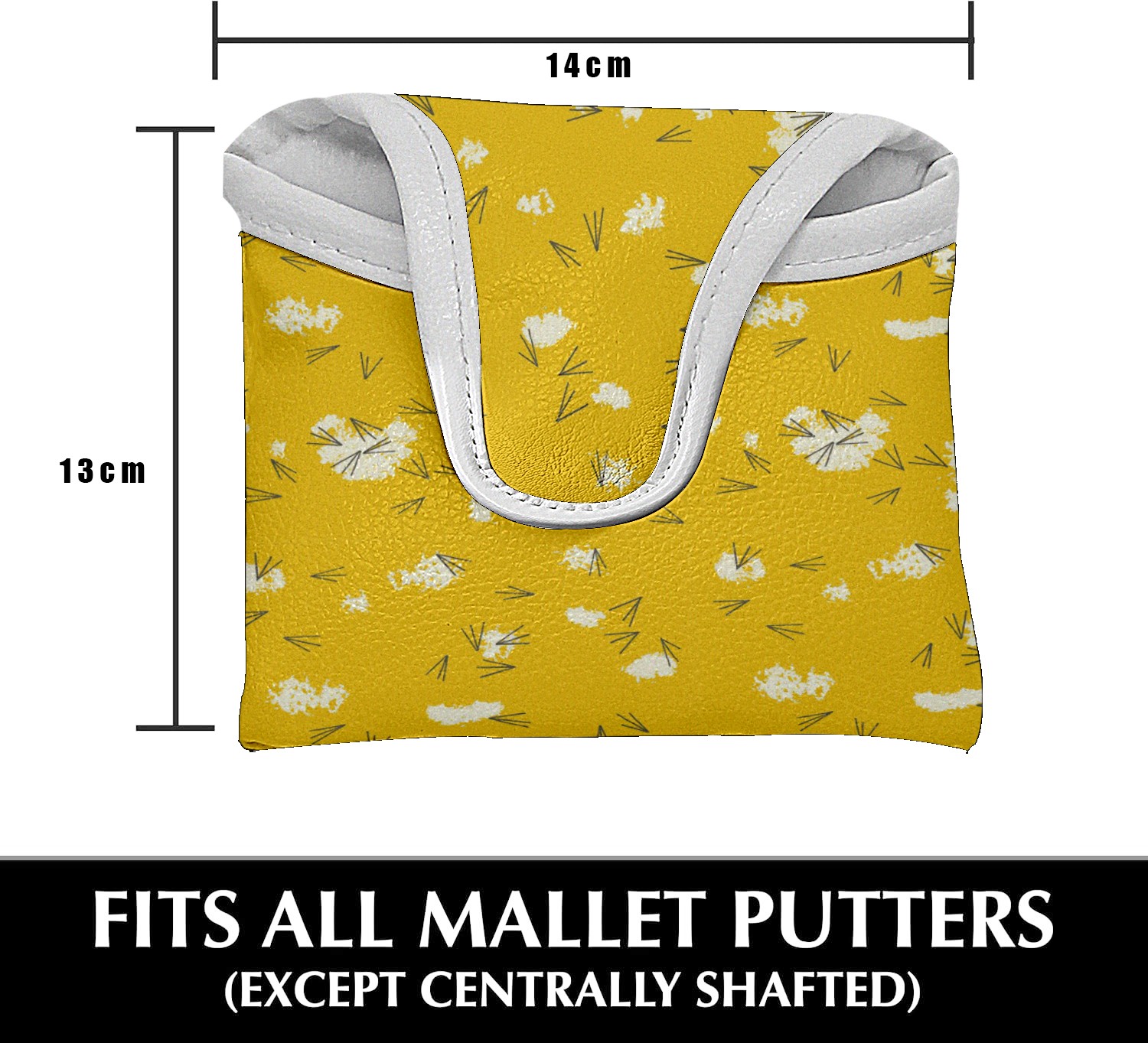 Small Mallet Putter Cover, PU Leather and Waterproof Mallet Putter Cover, Golf Club Protective Case Fits for All Brand Putter Golf Clubs for Men Women Yellow White Flowers