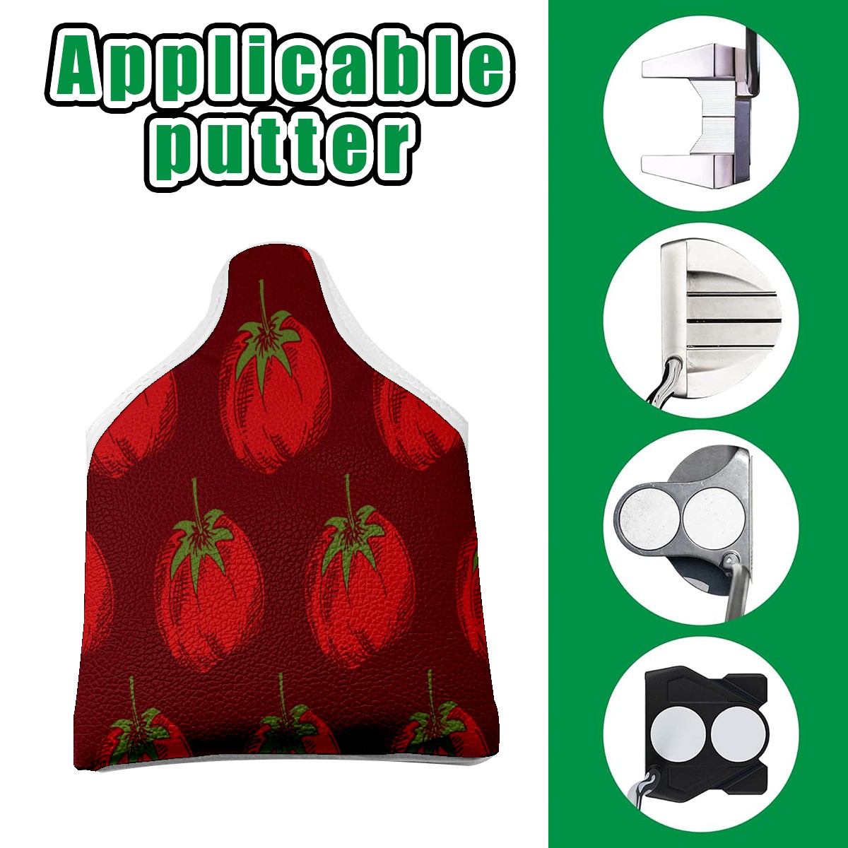 Small Mallet Putter Cover, PU Leather and Waterproof Mallet Putter Cover, Golf Club Protective Case Fits for All Brand Putter Golf Clubs for Men Women Vegetables Fruit Tomato Red Pattern