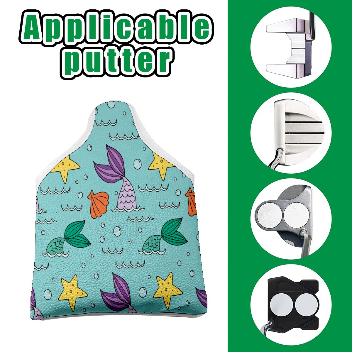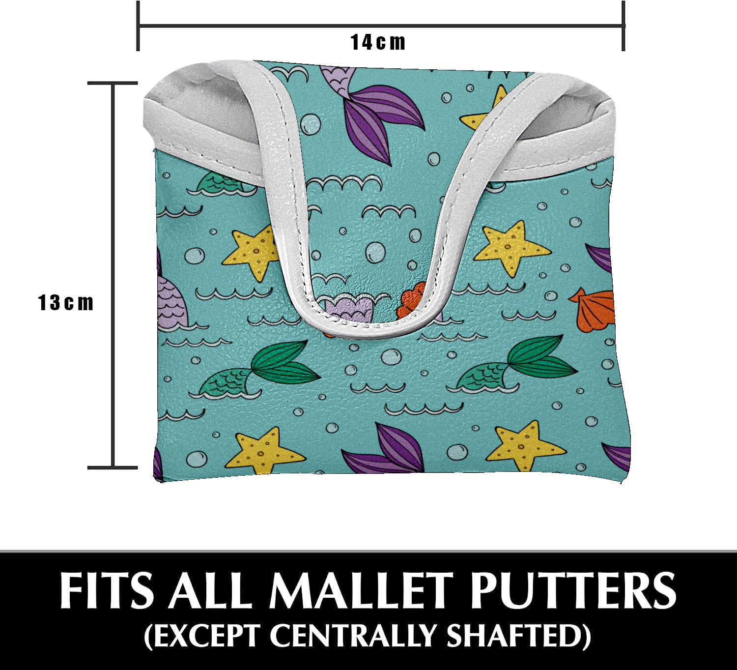 Small Mallet Putter Cover, PU Leather and Waterproof Mallet Putter Cover, Golf Club Protective Case Fits for All Brand Putter Golf Clubs for Men Women Mermaid Pattern Green Purple Yellow Starfish Blue