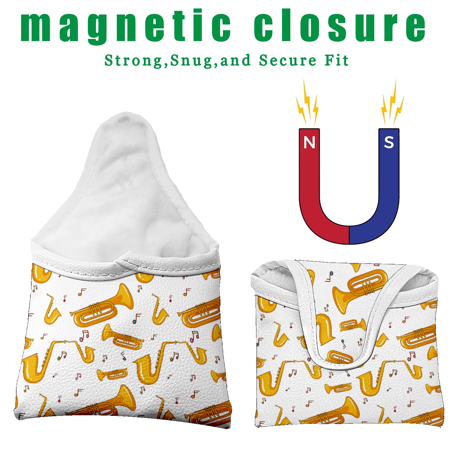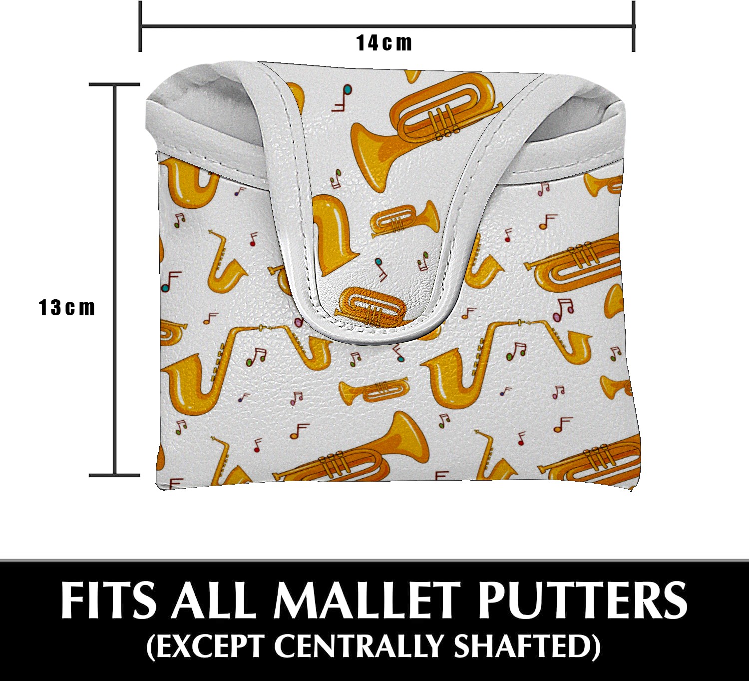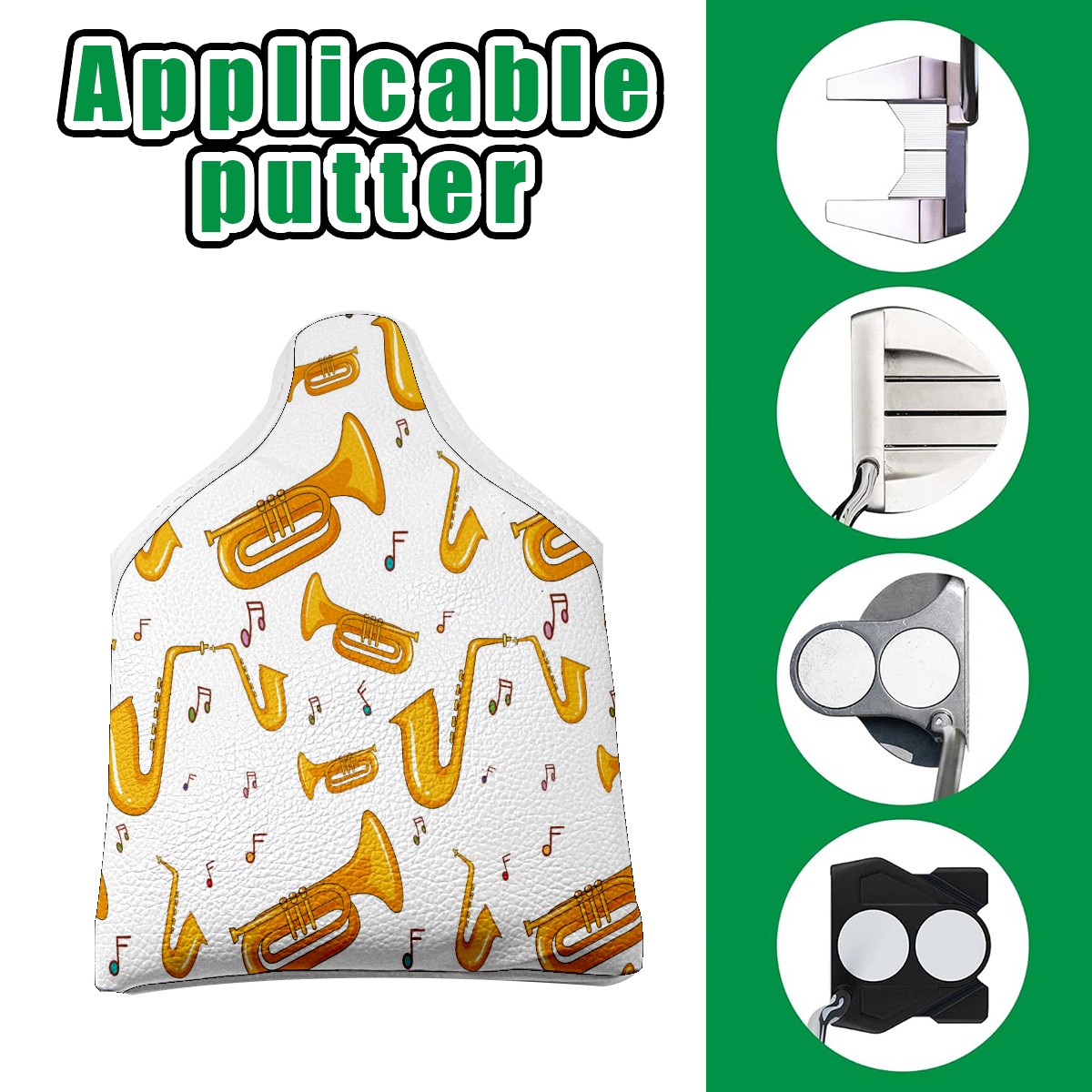 Small Mallet Putter Cover, PU Leather and Waterproof Mallet Putter Cover, Golf Club Protective Case Fits for All Brand Putter Golf Clubs for Men Women Saxophone Music Yellow Musical Note