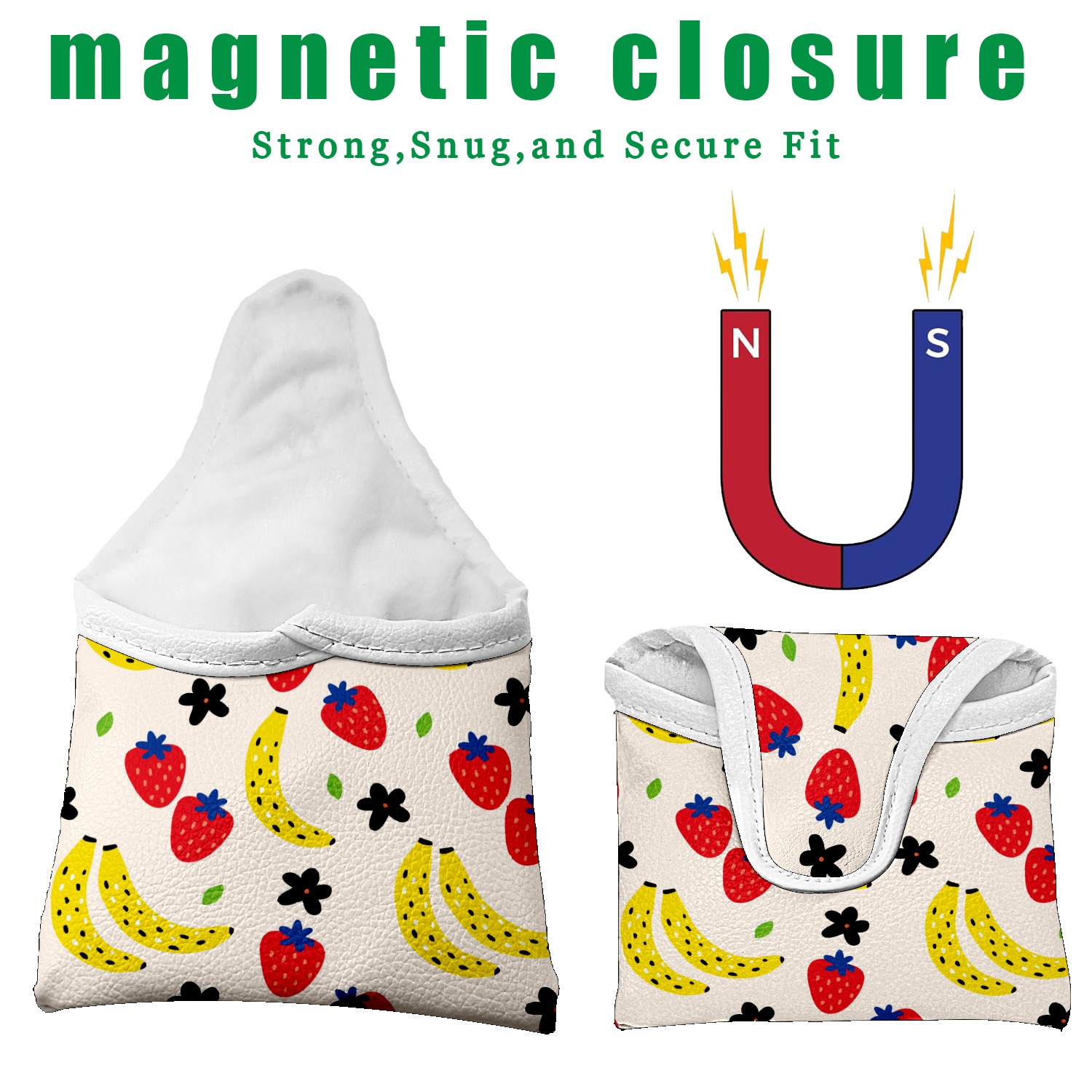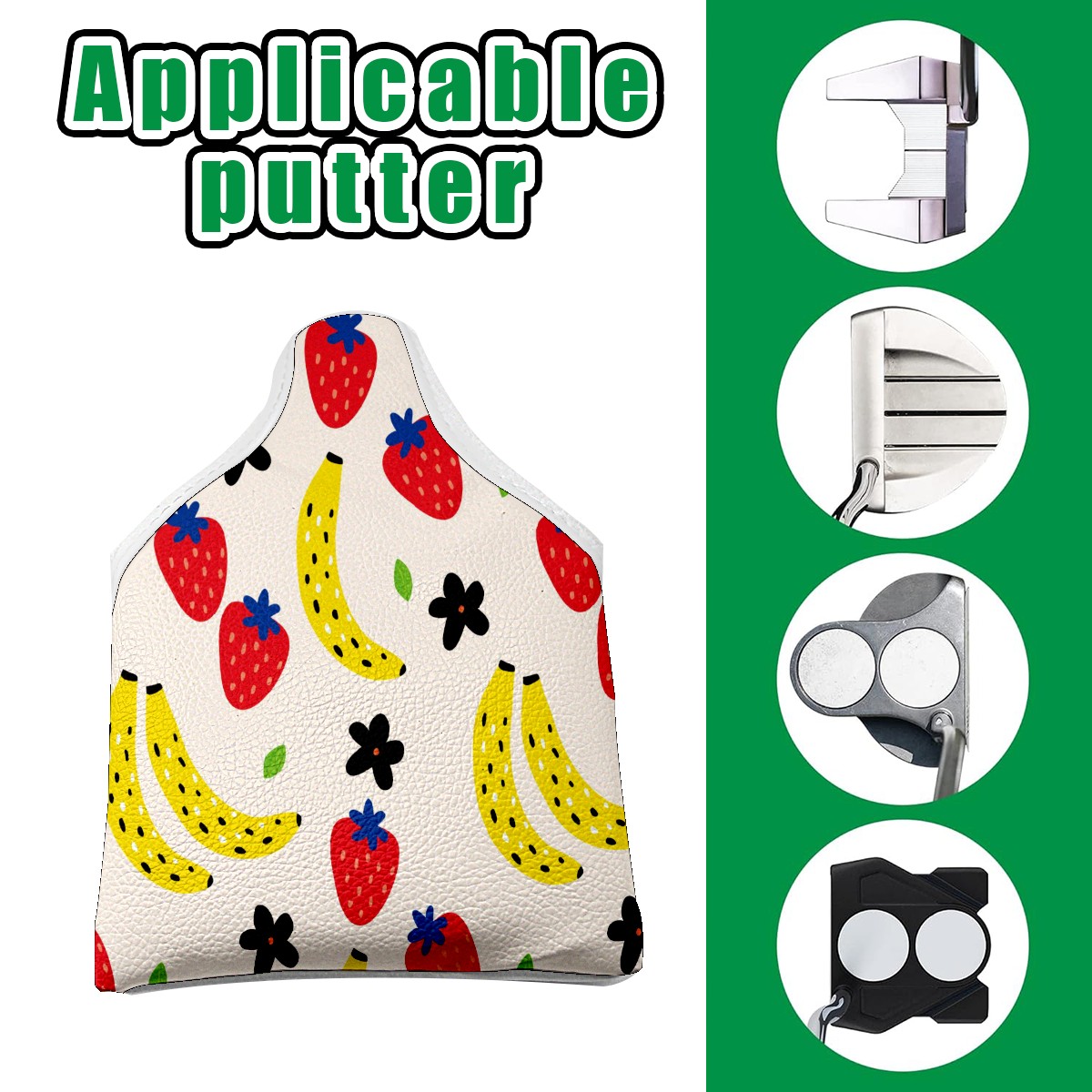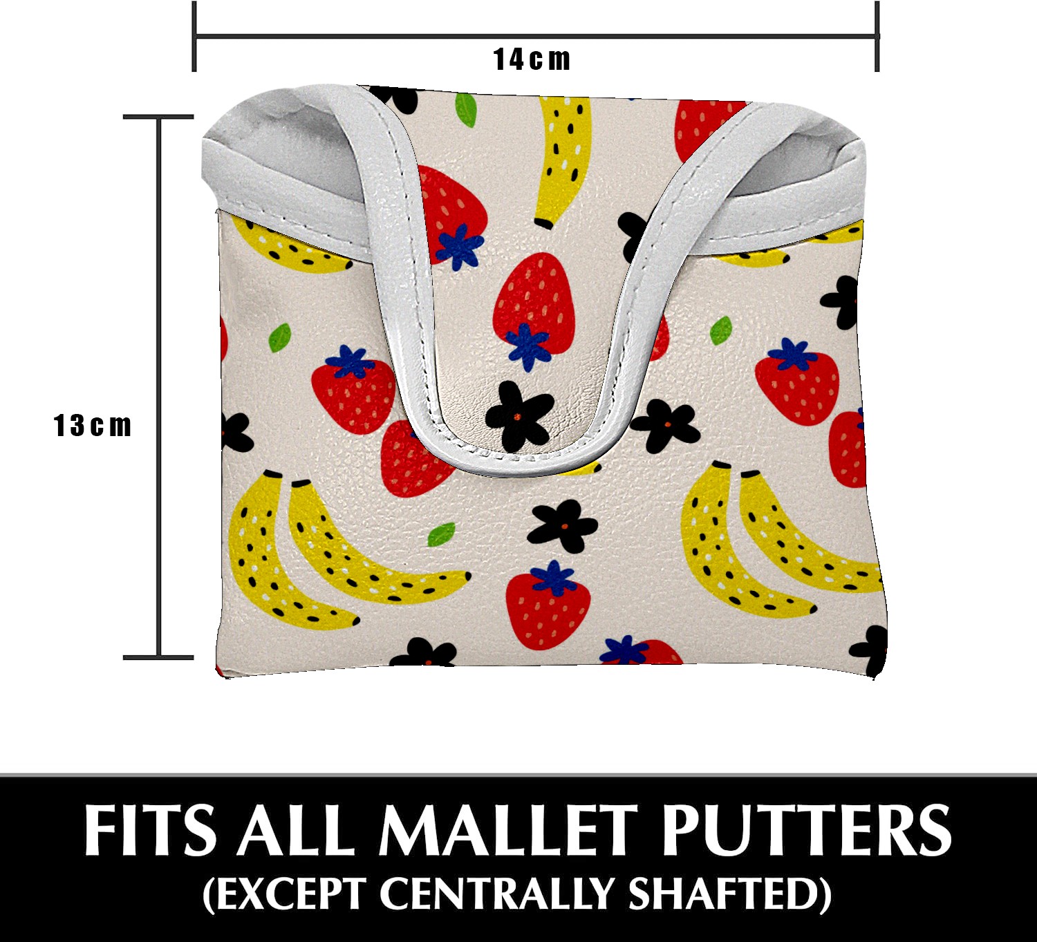 Small Mallet Putter Cover, PU Leather and Waterproof Mallet Putter Cover, Golf Club Protective Case Fits for All Brand Putter Golf Clubs for Men Women Summer Bananas Strawberries Black Flower
