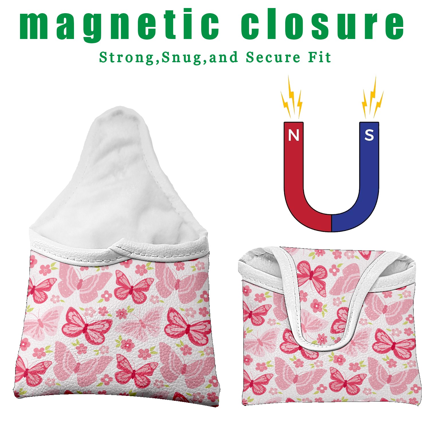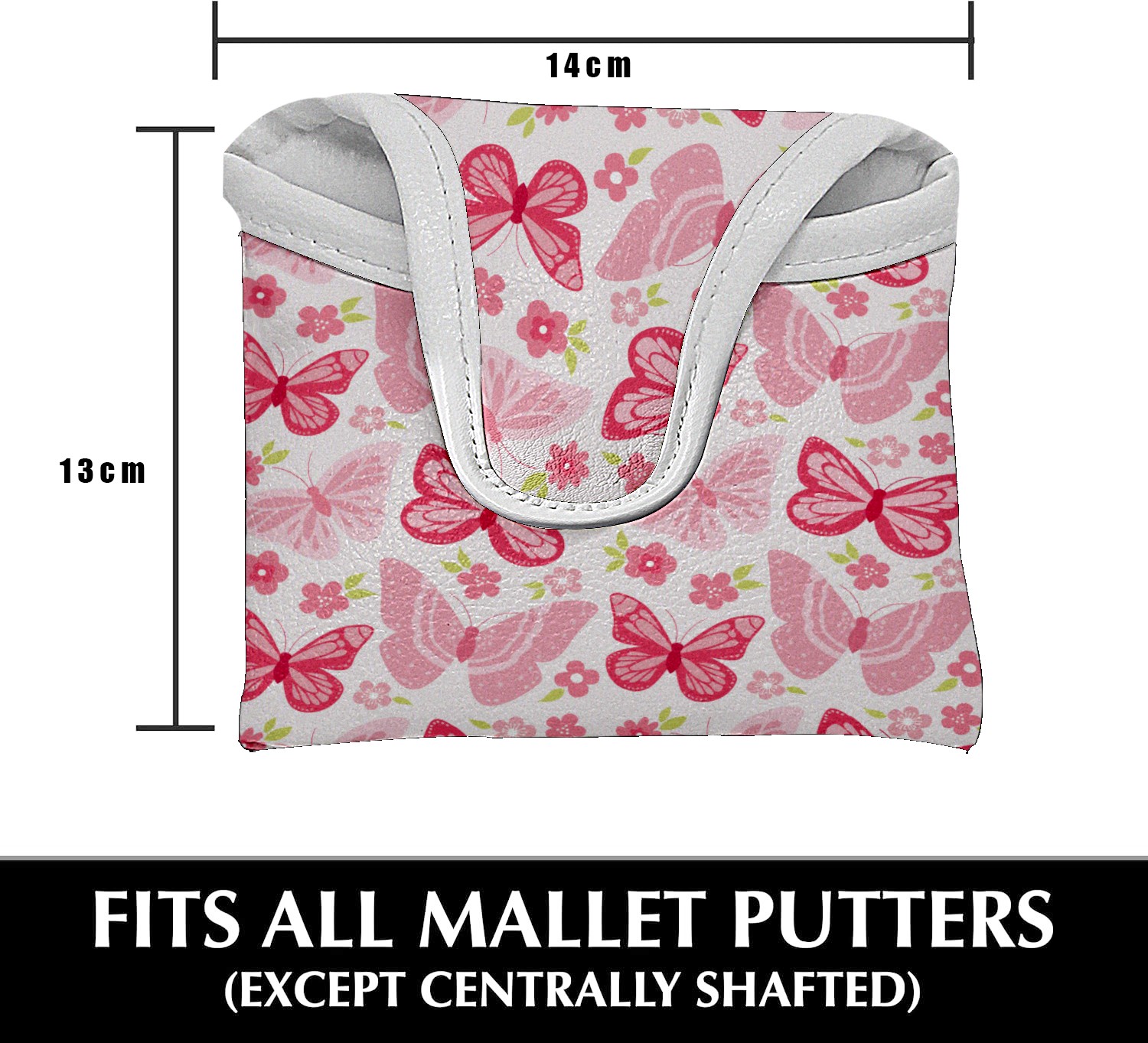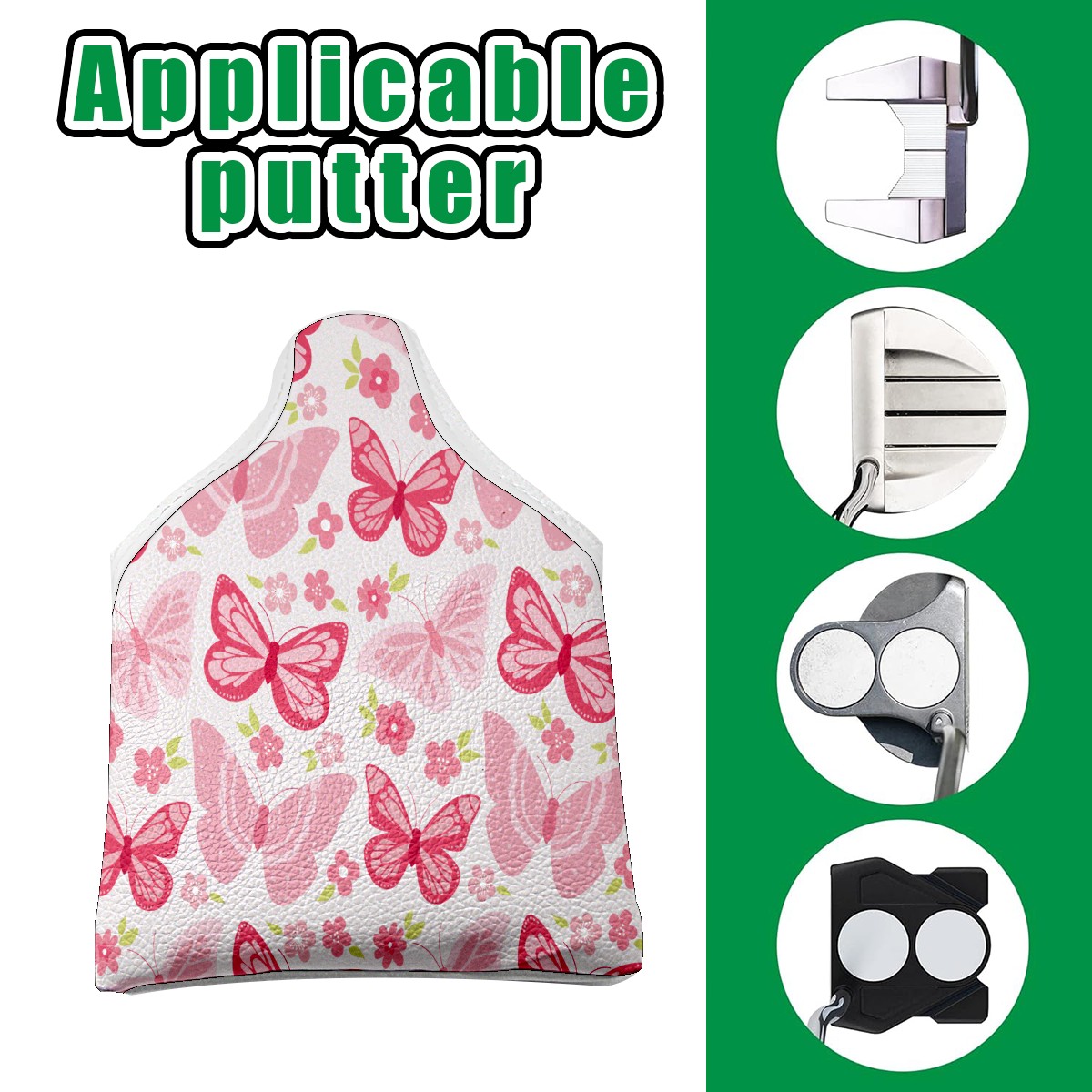 Small Mallet Putter Cover, PU Leather and Waterproof Mallet Putter Cover, Golf Club Protective Case Fits for All Brand Putter Golf Clubs for Men Women Pink Butterfly