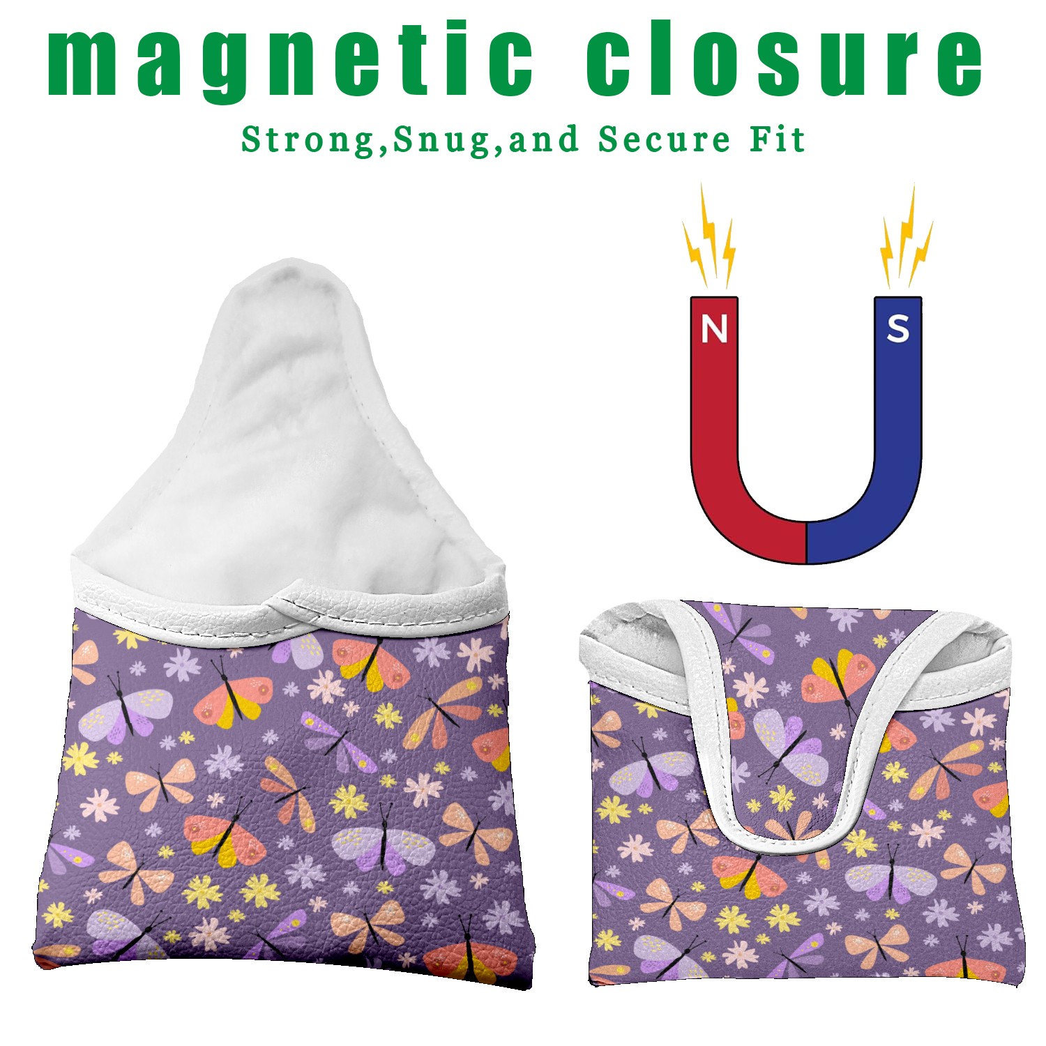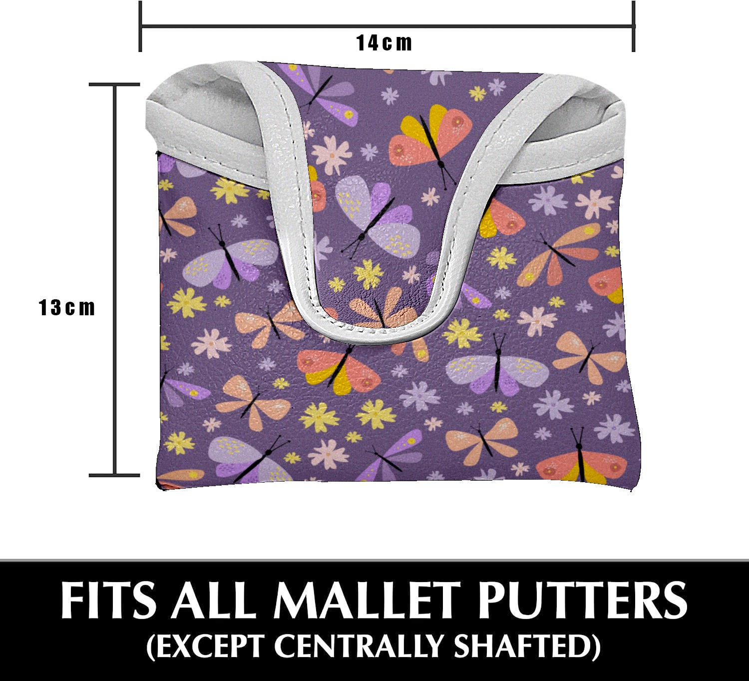 Small Mallet Putter Cover, PU Leather and Waterproof Mallet Putter Cover, Golf Club Protective Case Fits for All Brand Putter Golf Clubs for Men Women 蝶 花 かわいい