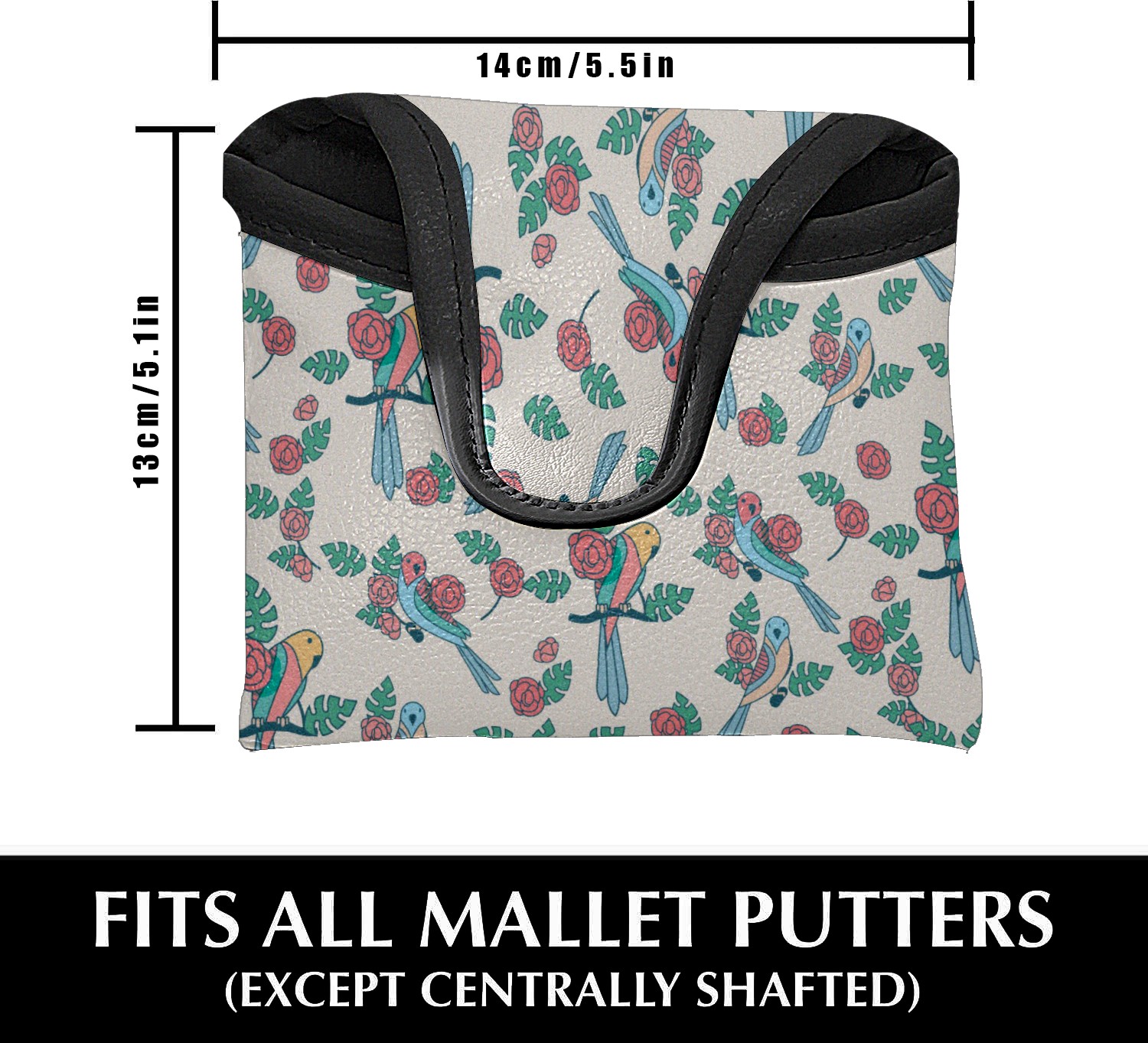 Small Mallet Putter Cover, PU Leather and Waterproof Mallet Putter Cover, Golf Club Protective Case Fits for All Brand Putter Golf Clubs for Men Women Budgie Tropical Leaves Floral Pattern