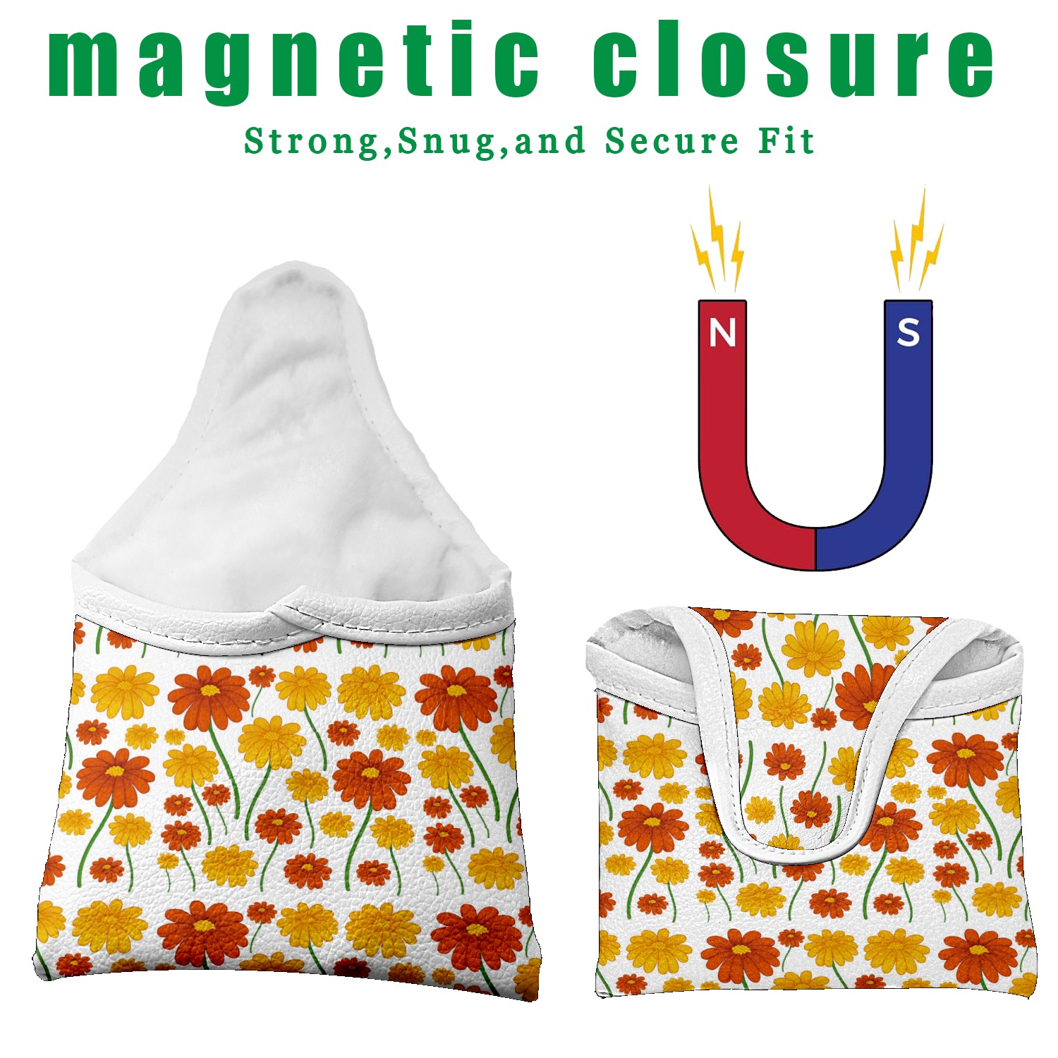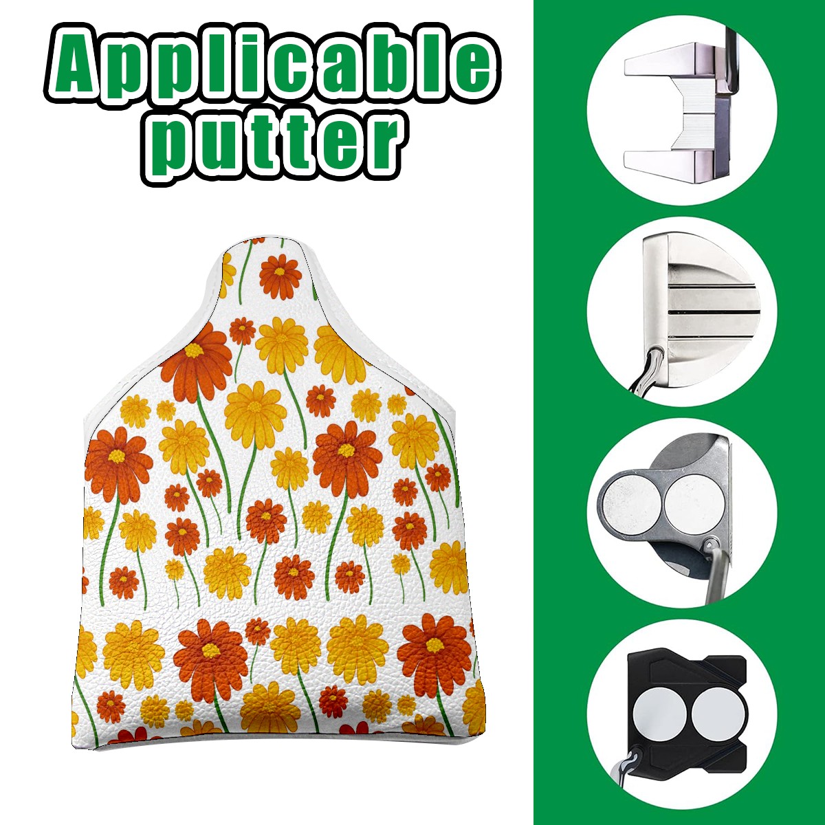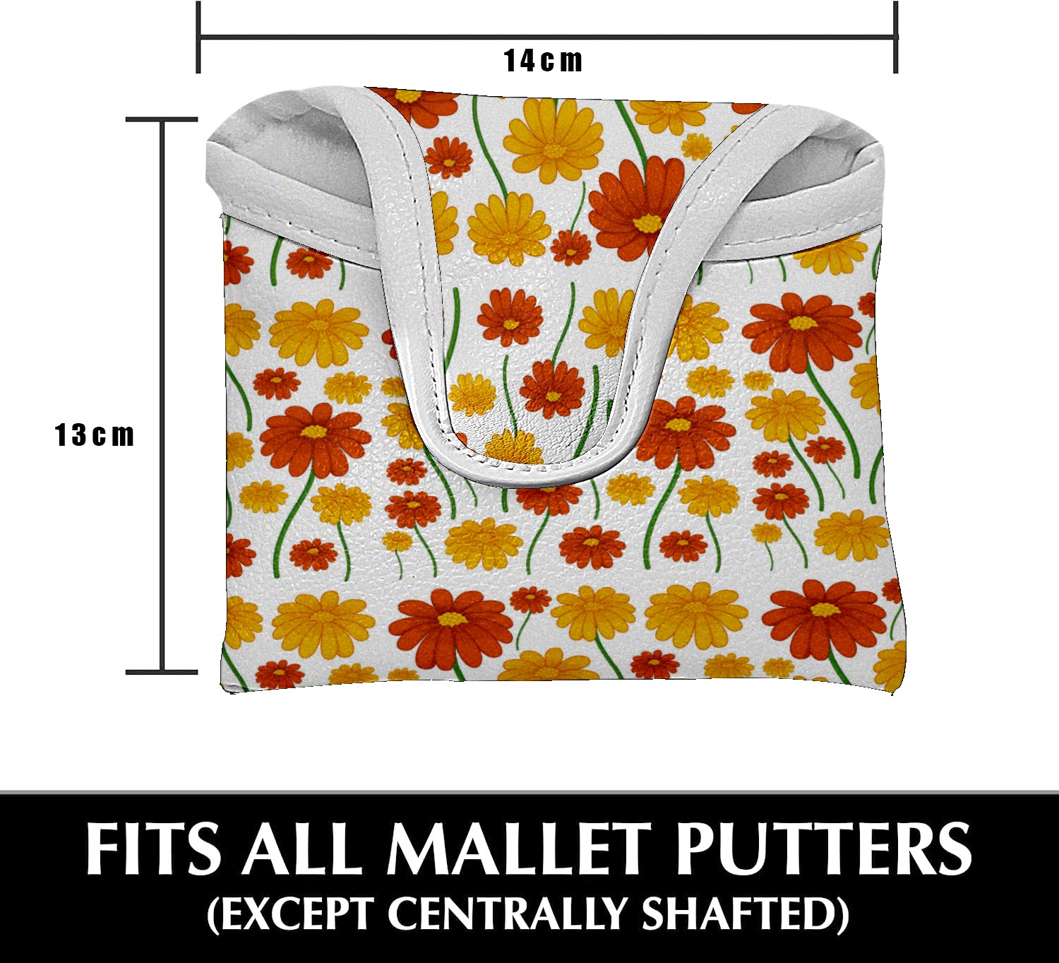 Small Mallet Putter Cover, PU Leather and Waterproof Mallet Putter Cover, Golf Club Protective Case Fits for All Brand Putter Golf Clubs for Men Women Daisy Flower Yellow Orange Pattern