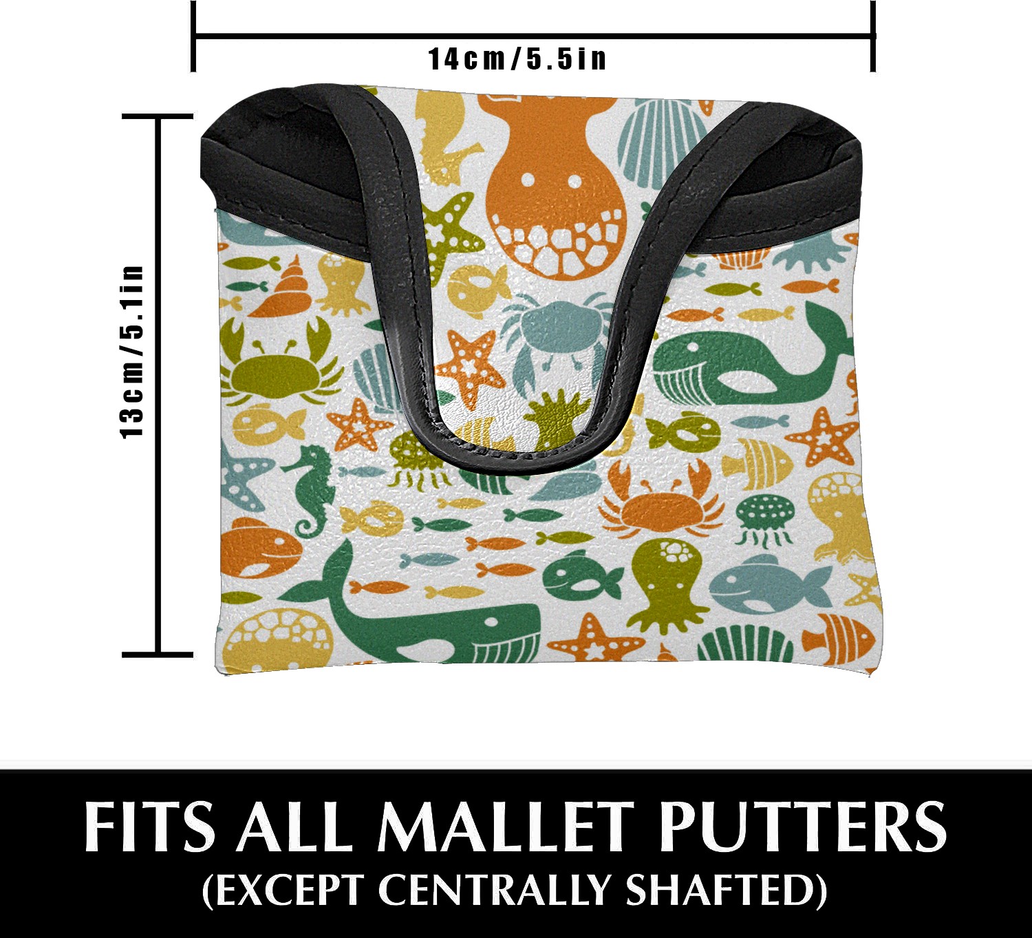 Small Mallet Putter Cover, PU Leather and Waterproof Mallet Putter Cover, Golf Club Protective Case Fits for All Brand Putter Golf Clubs for Men Women Sealife Whale Octopus Starfish