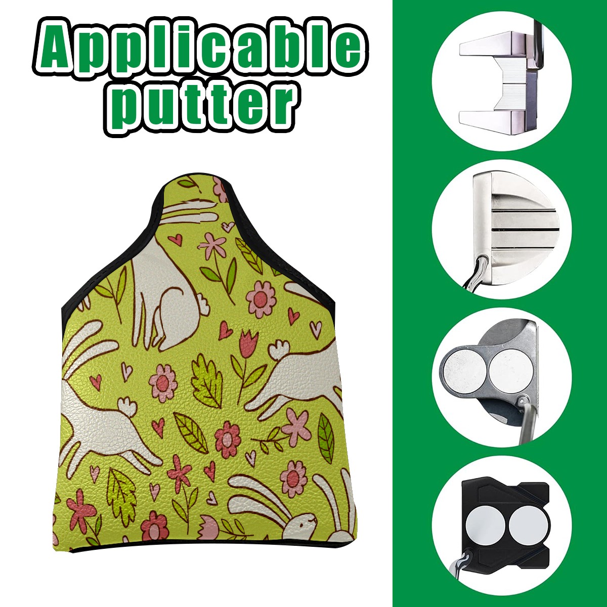 Small Mallet Putter Cover, PU Leather and Waterproof Mallet Putter Cover, Golf Club Protective Case Fits for All Brand Putter Golf Clubs for Men Women Animal Rabbit Pattern